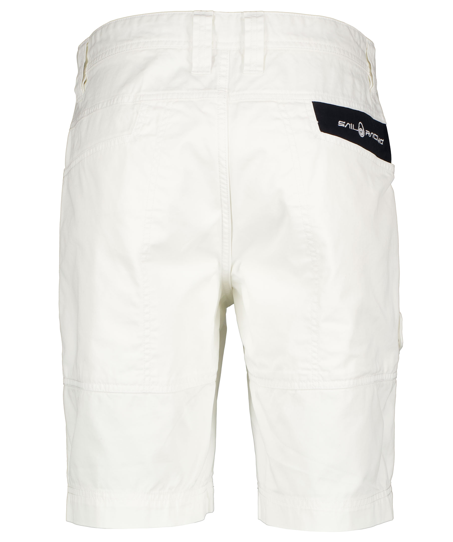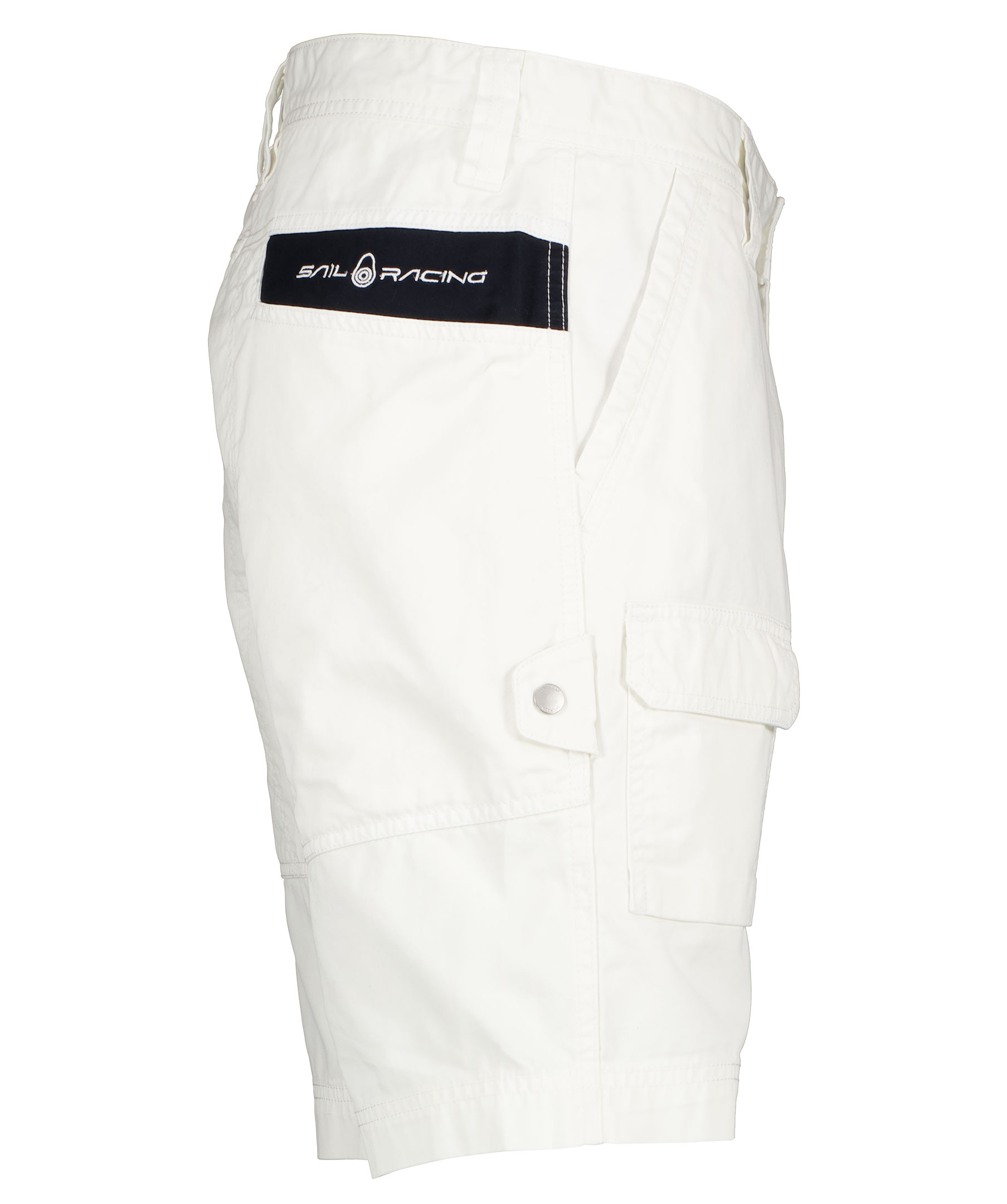Vita chinoshorts från Sail Racing i kraftig bomullskvalité. Shortsen är i en halvlång modell, har hylsor i midjan samt dold gylf med dragkedja och knapp. Två snedställda fickor fram och två bak samt en ficka med lock på låret. Broderad logotyp ovanför den högra bakfickan på en svart applikation. Gjorda i 100% bomull.
