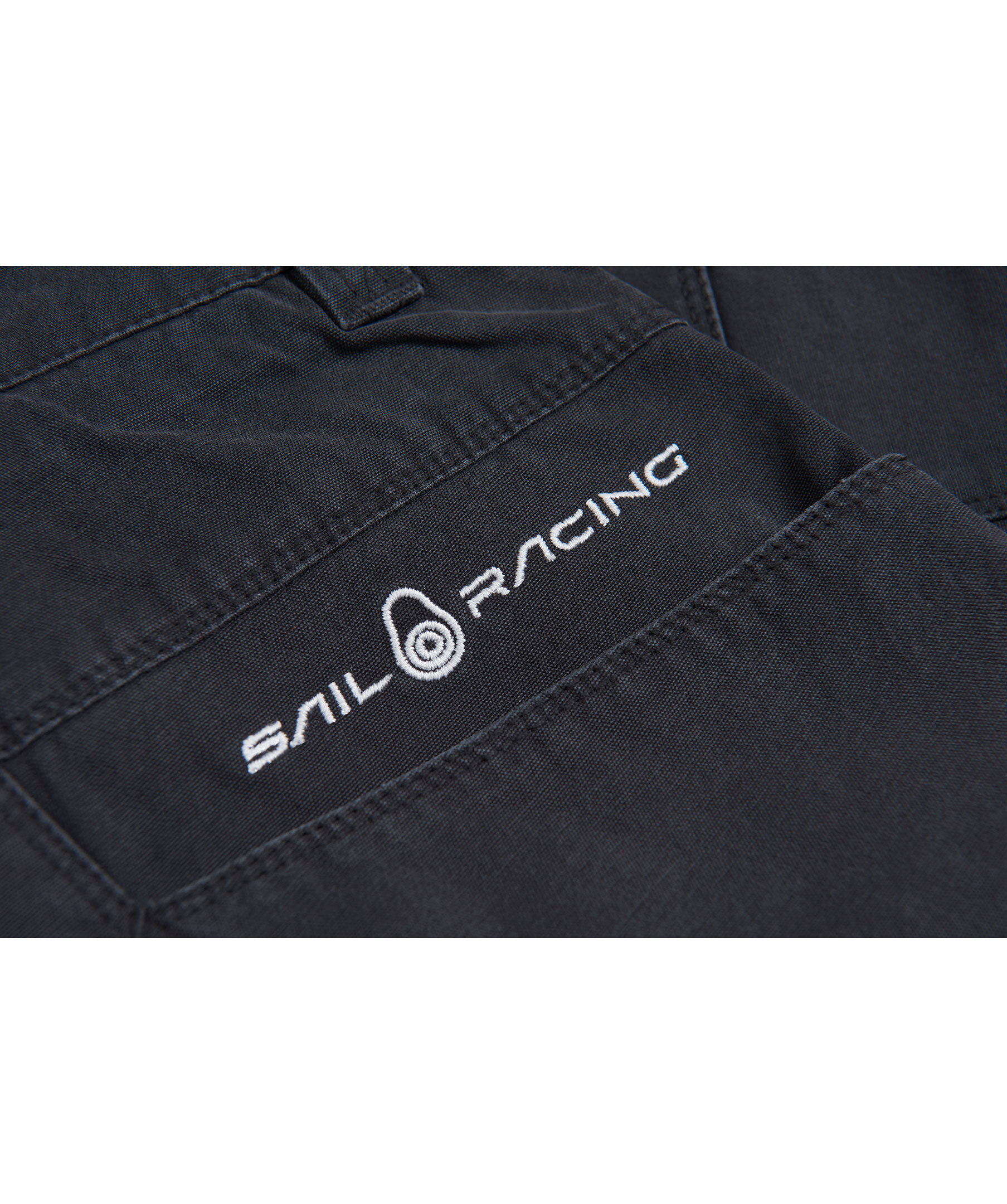 Svarta cargoshorts från Sail Racing. Tillverkade i bomullstyg, rymliga midjefickor och bakfickor. Mindre benfickor fram med kardborrestängning. Bälteshällor i midjan och Sail Racing broderi på bakfickan.