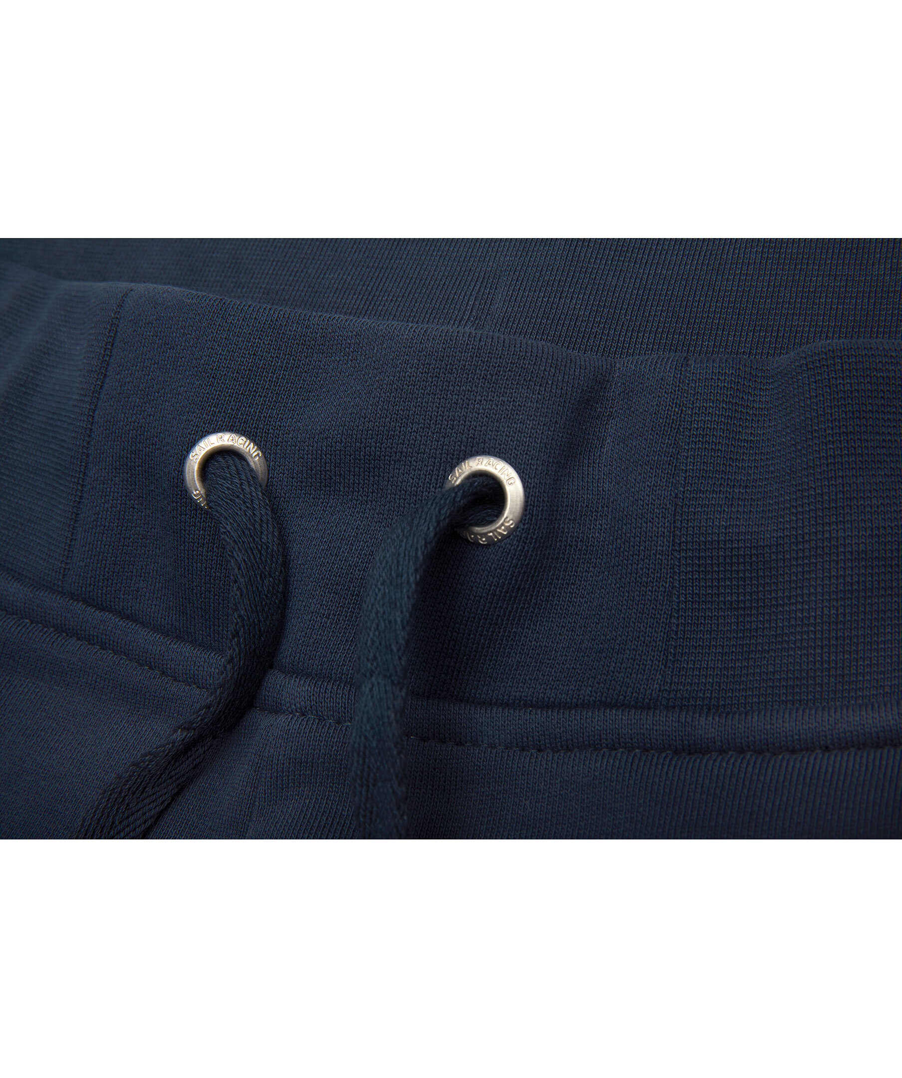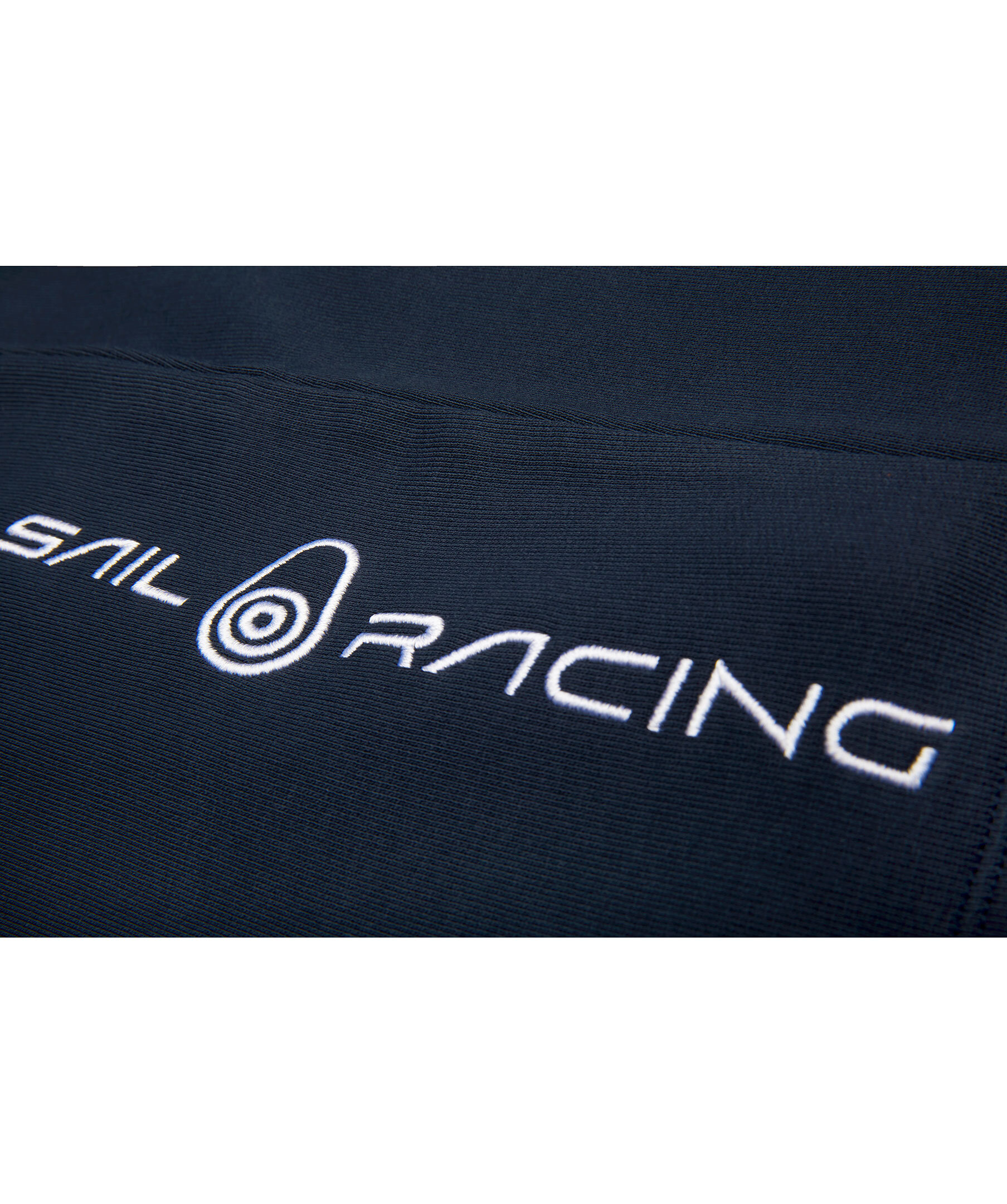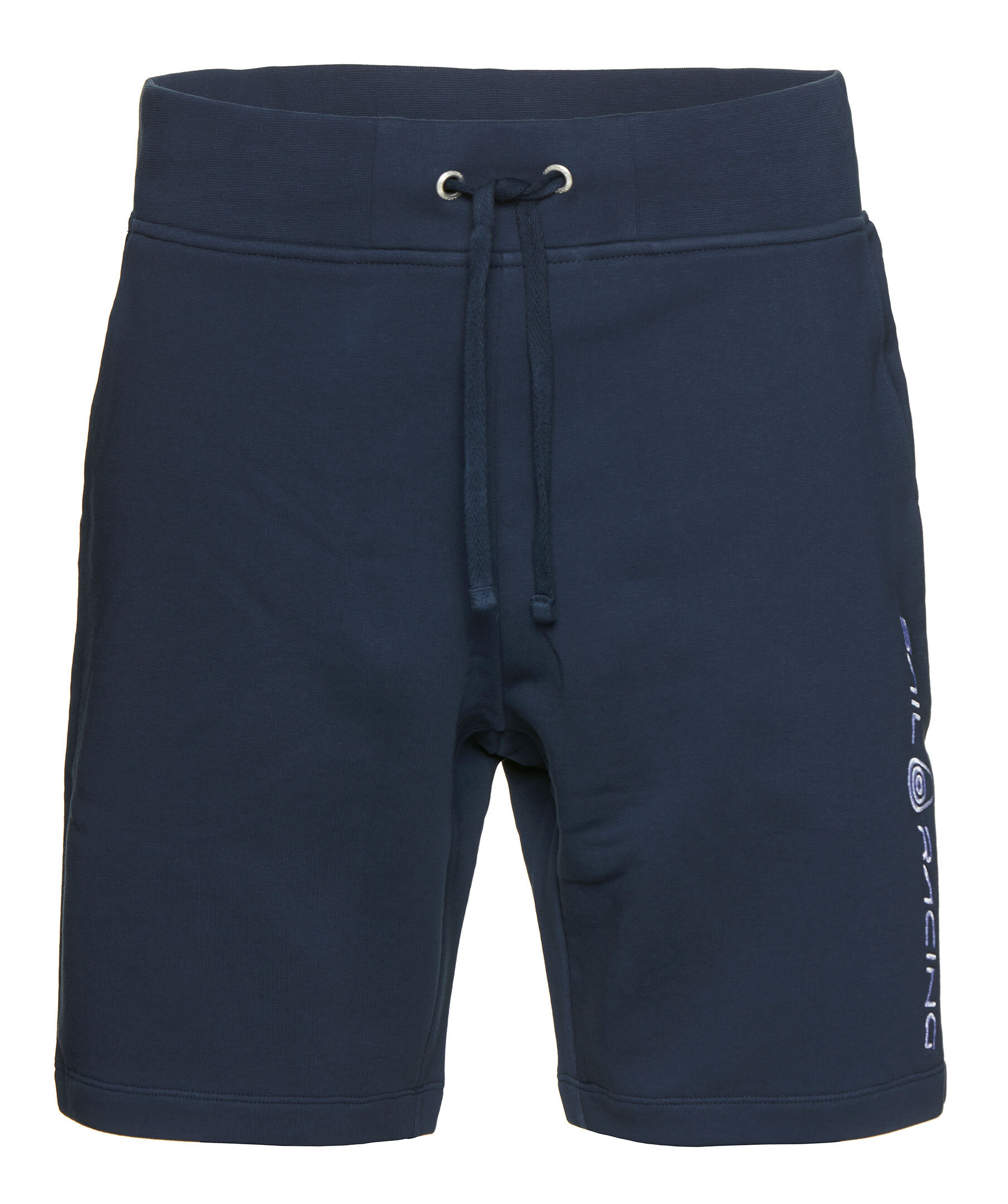 Mörkblå mjukisshorts från Sailracing. Dragsko med snörning i midjan, två framfickor och broderad, vit logotyp på vänster ben. Tillverkad i bomullsblandning.