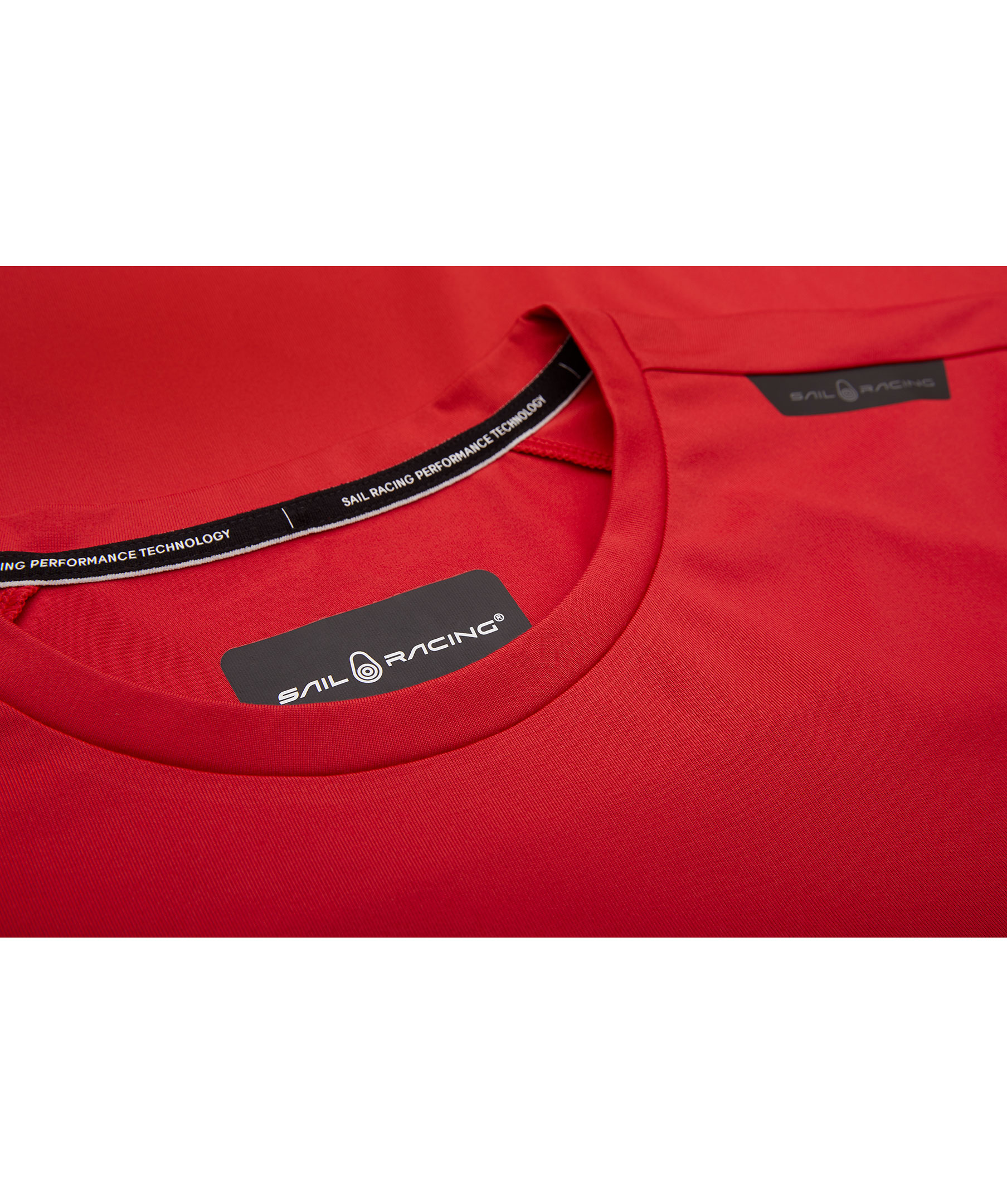 Röd T-shirt från Sail Racing, gjord i en E-DYED polyester. Rundad halsringning och korta ärmar. Tryckt logga på vänster axel och bak i nacken.