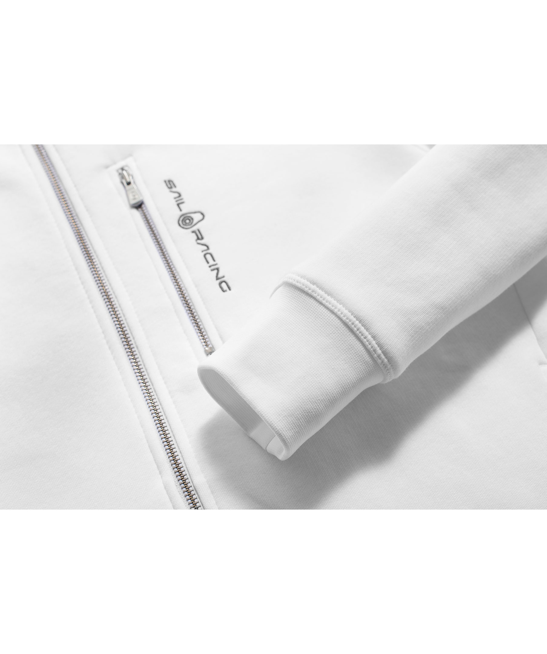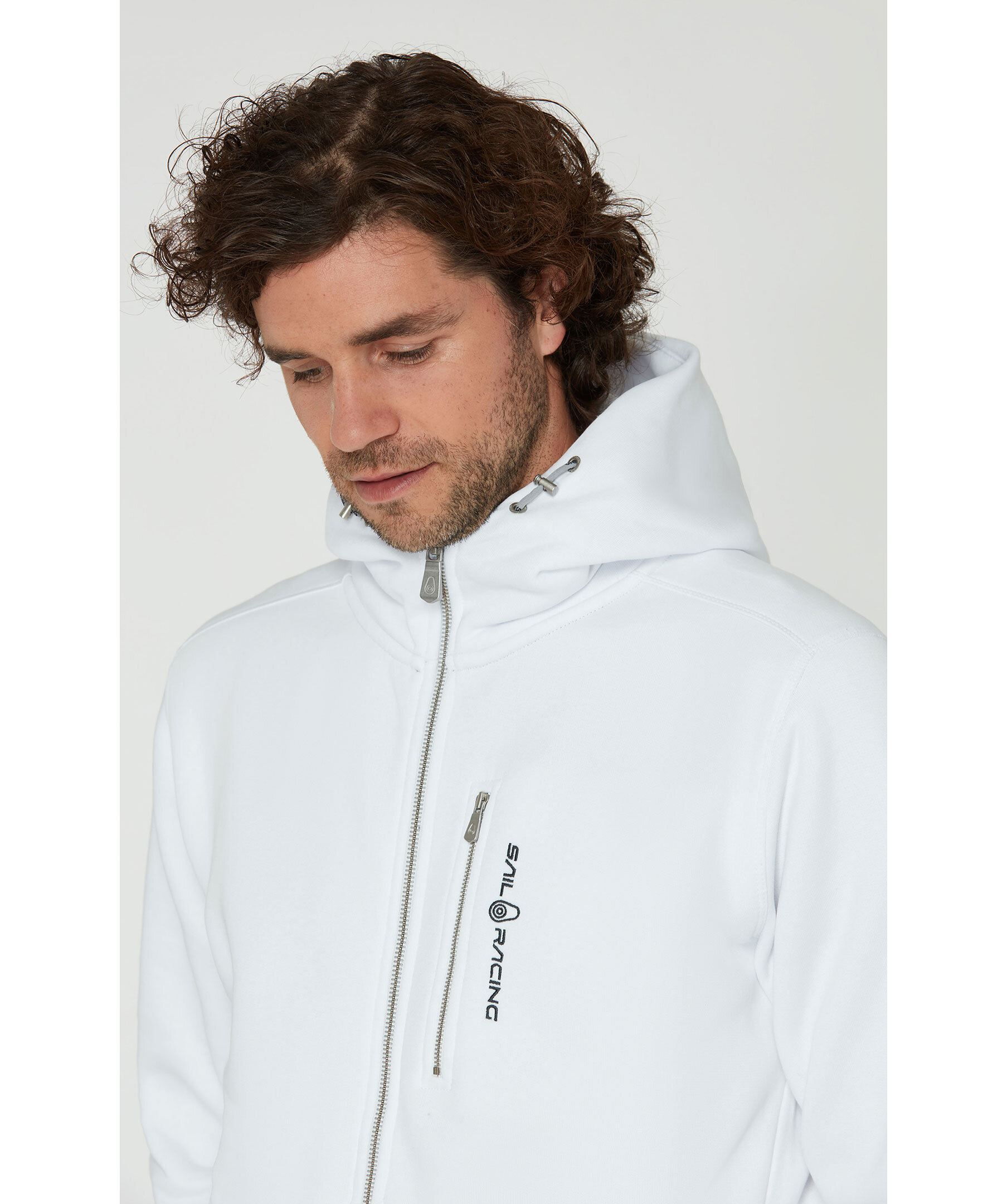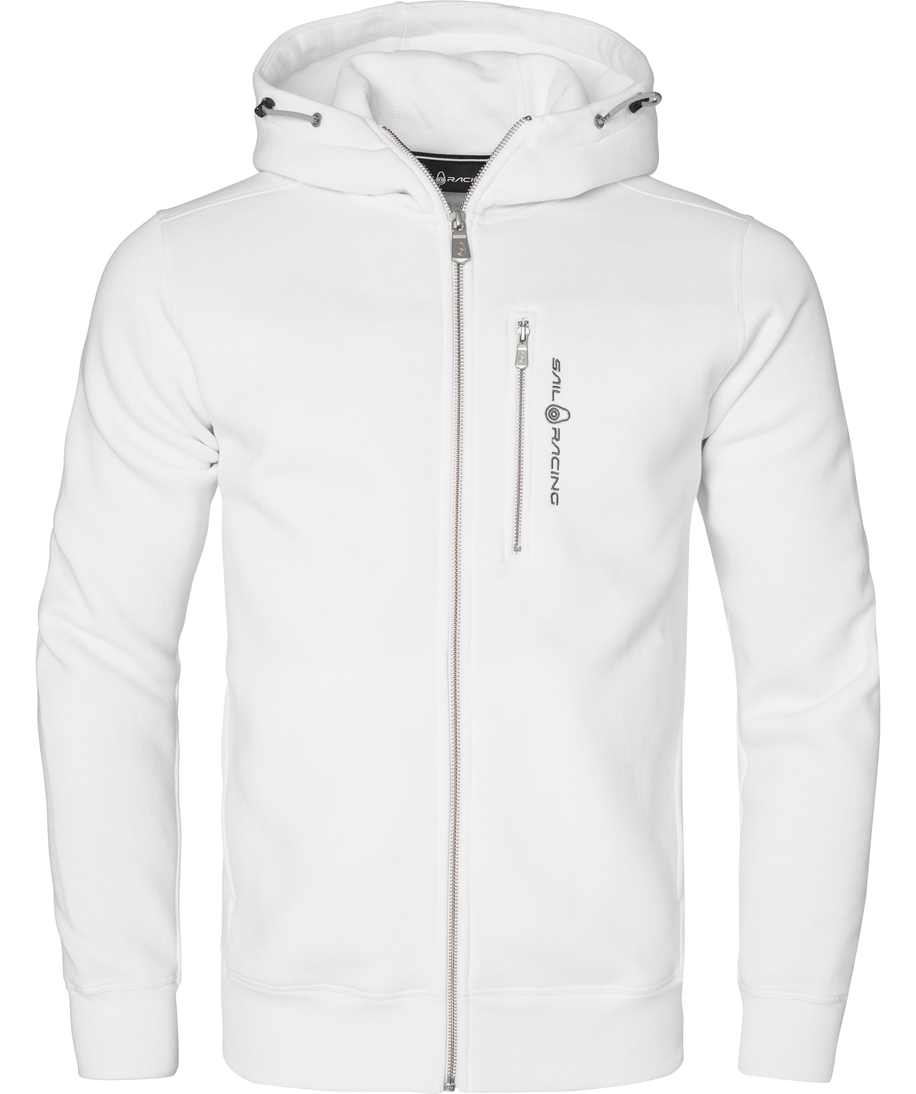 Vit hoodie med dragkedja hela vägen fram från Sail Racing. Ficka med dragkedja och logotyp på bröstet ovanpå fickan och på luvan, fickor i sidorna och muddar i ärmslut och plaggslut. Dragsko i luvan och fickor i sidorna.