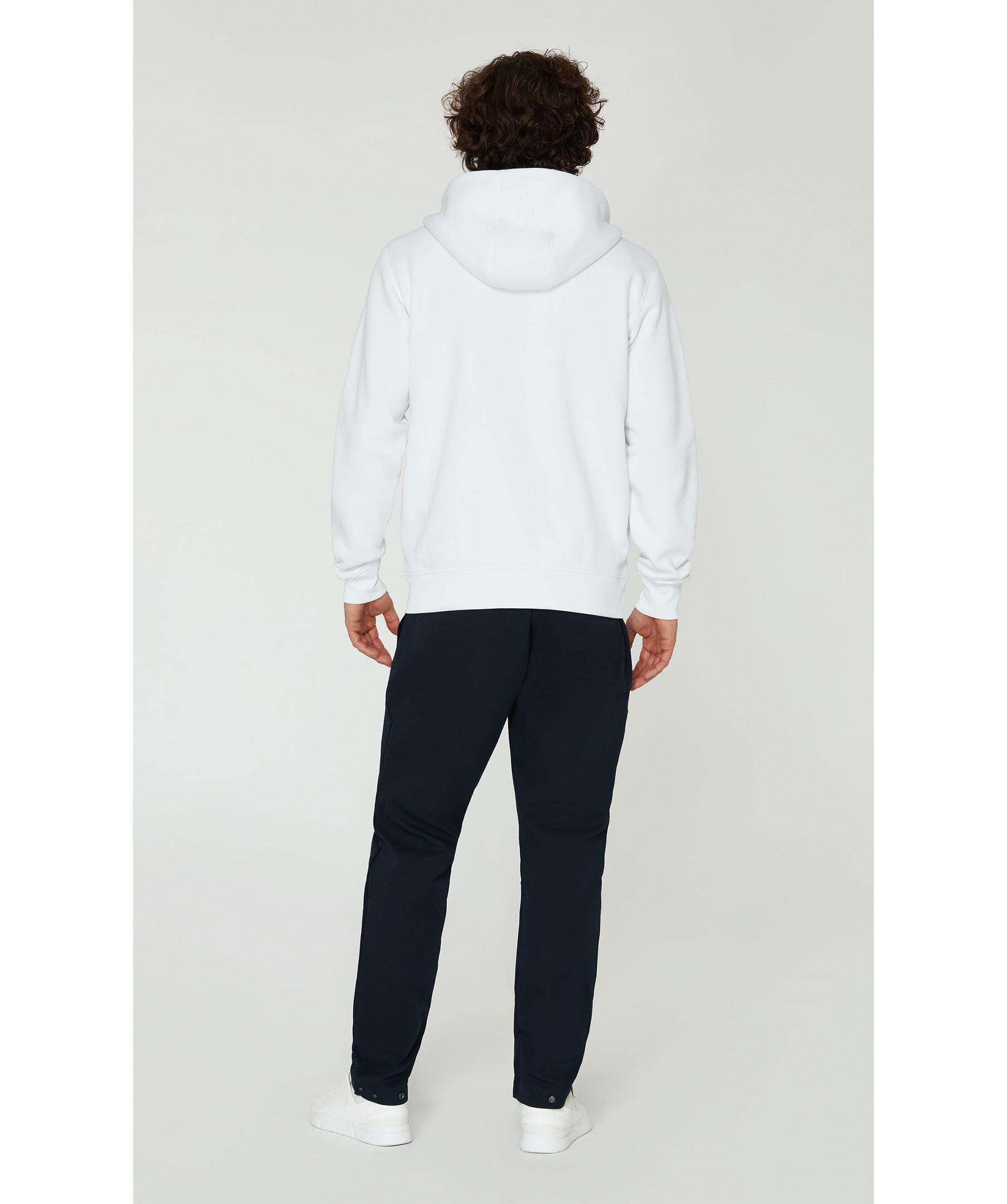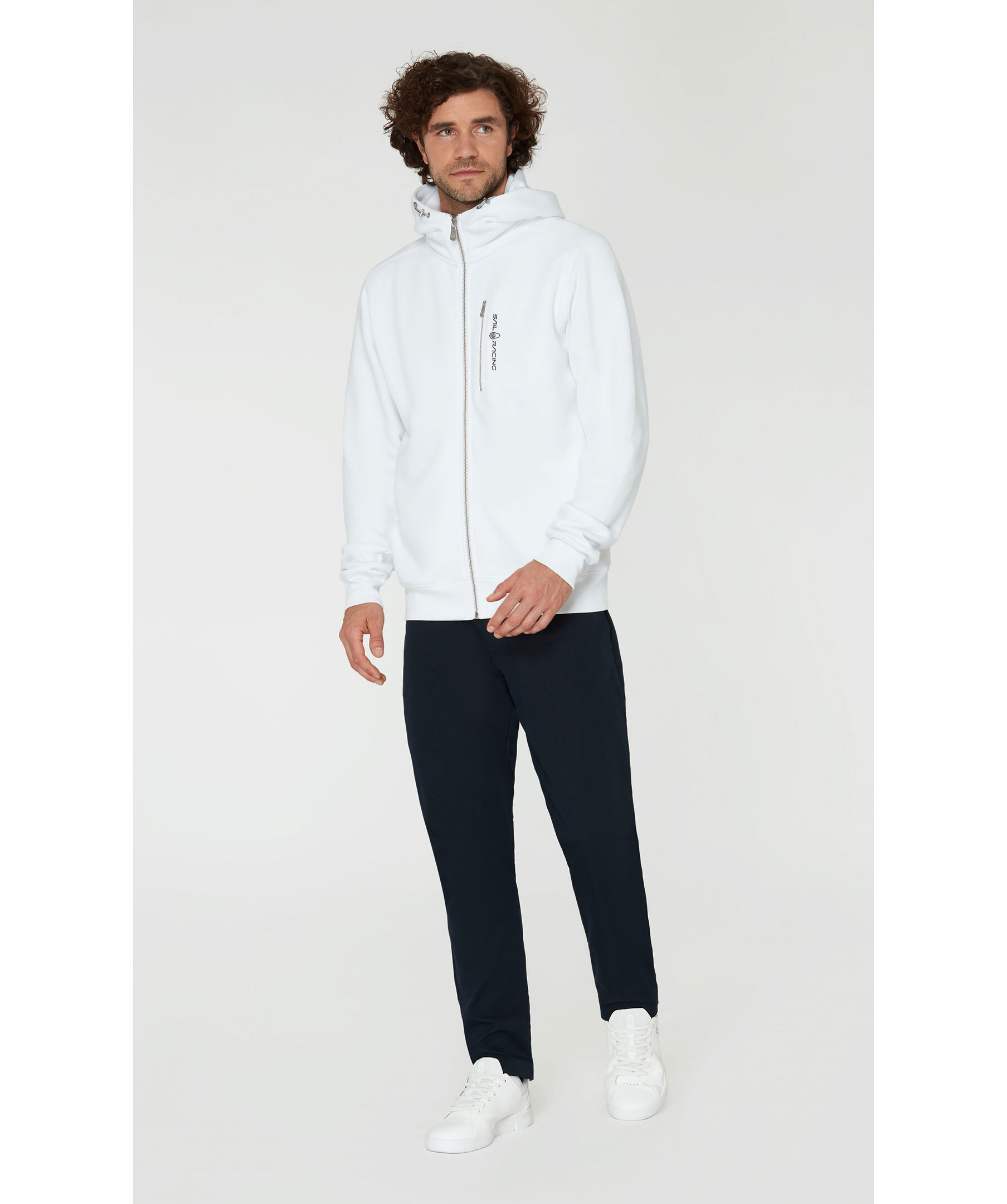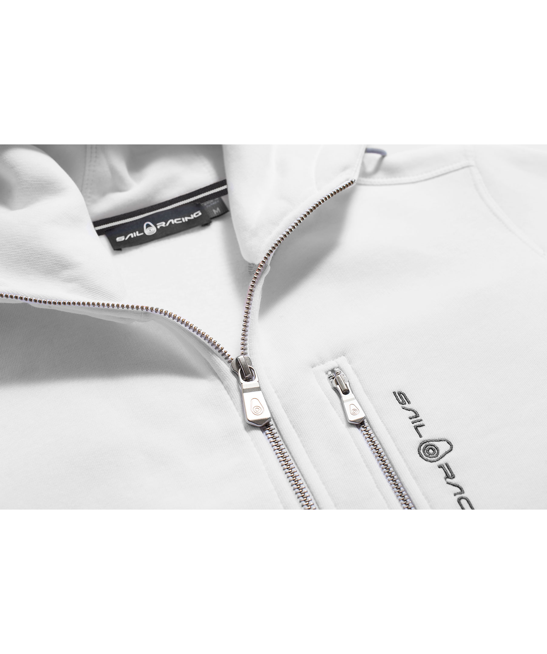 Vit hoodie med dragkedja hela vägen fram från Sail Racing. Ficka med dragkedja och logotyp på bröstet ovanpå fickan och på luvan, fickor i sidorna och muddar i ärmslut och plaggslut. Dragsko i luvan och fickor i sidorna.