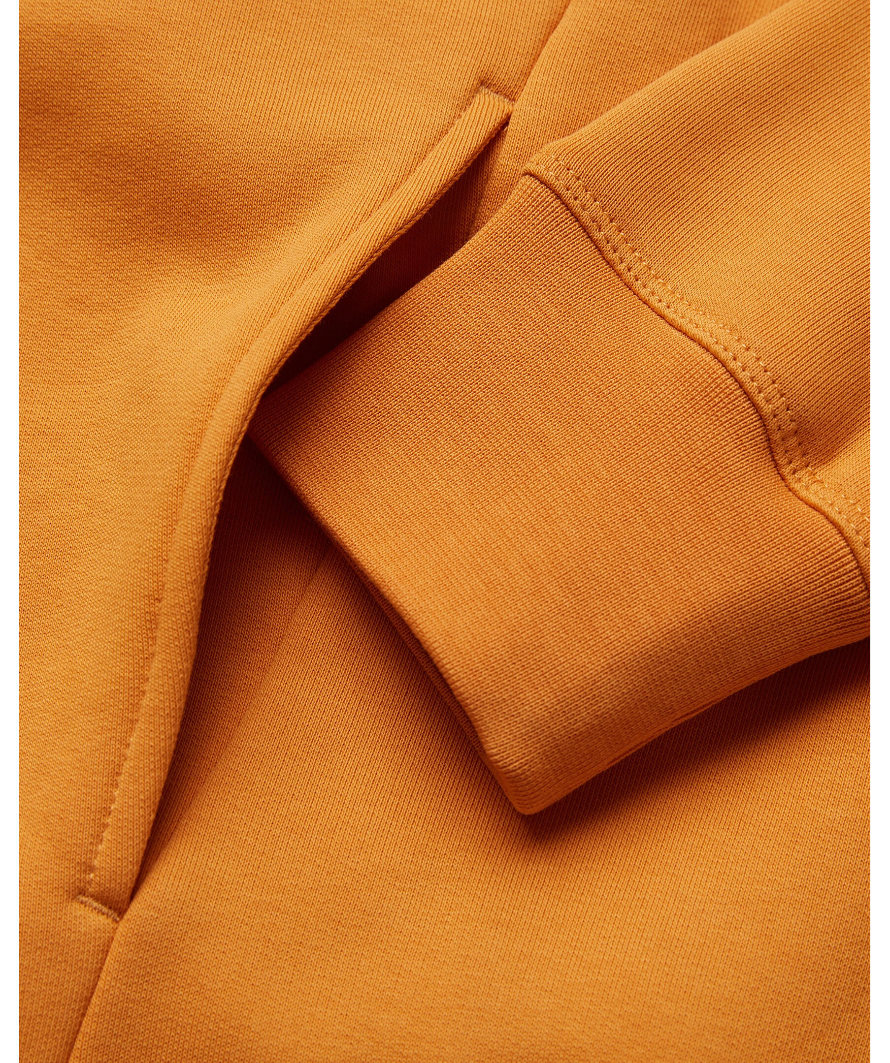Orange hoodie med dragkedja hela vägen fram från Sail Racing. Ficka med dragkedja och logotyp på bröstet ovanpå fickan och på luvan, fickor i sidorna och muddar i ärmslut och plaggslut. Dragsko i luvan och fickor i sidorna.