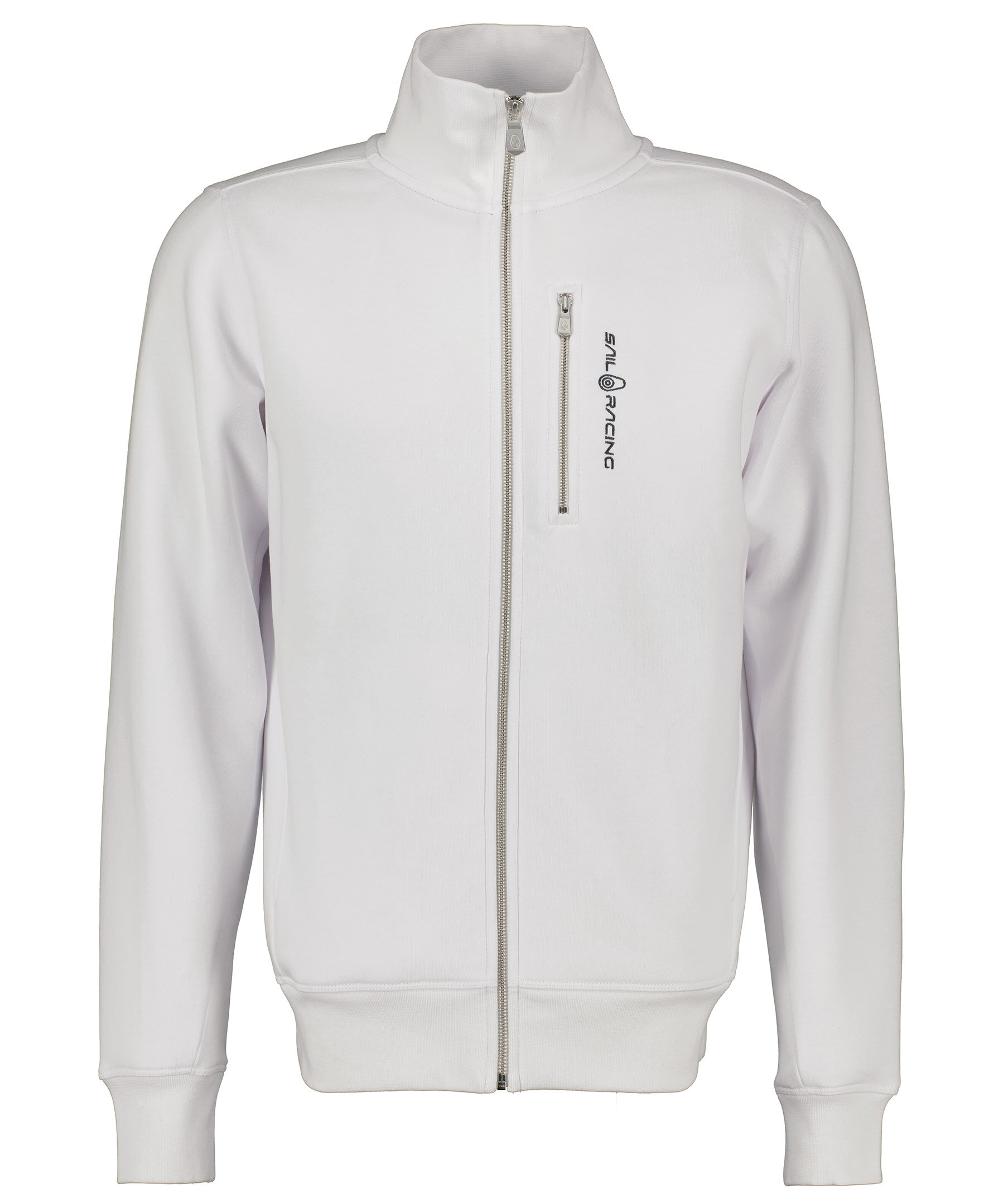 Vit tröja med krage och dragkedja från Sail Racing. Ficka och logotyp på bröstet som stängs med dragkedja samt fickor i sidorna och muddar i ärmslut och plaggslut.