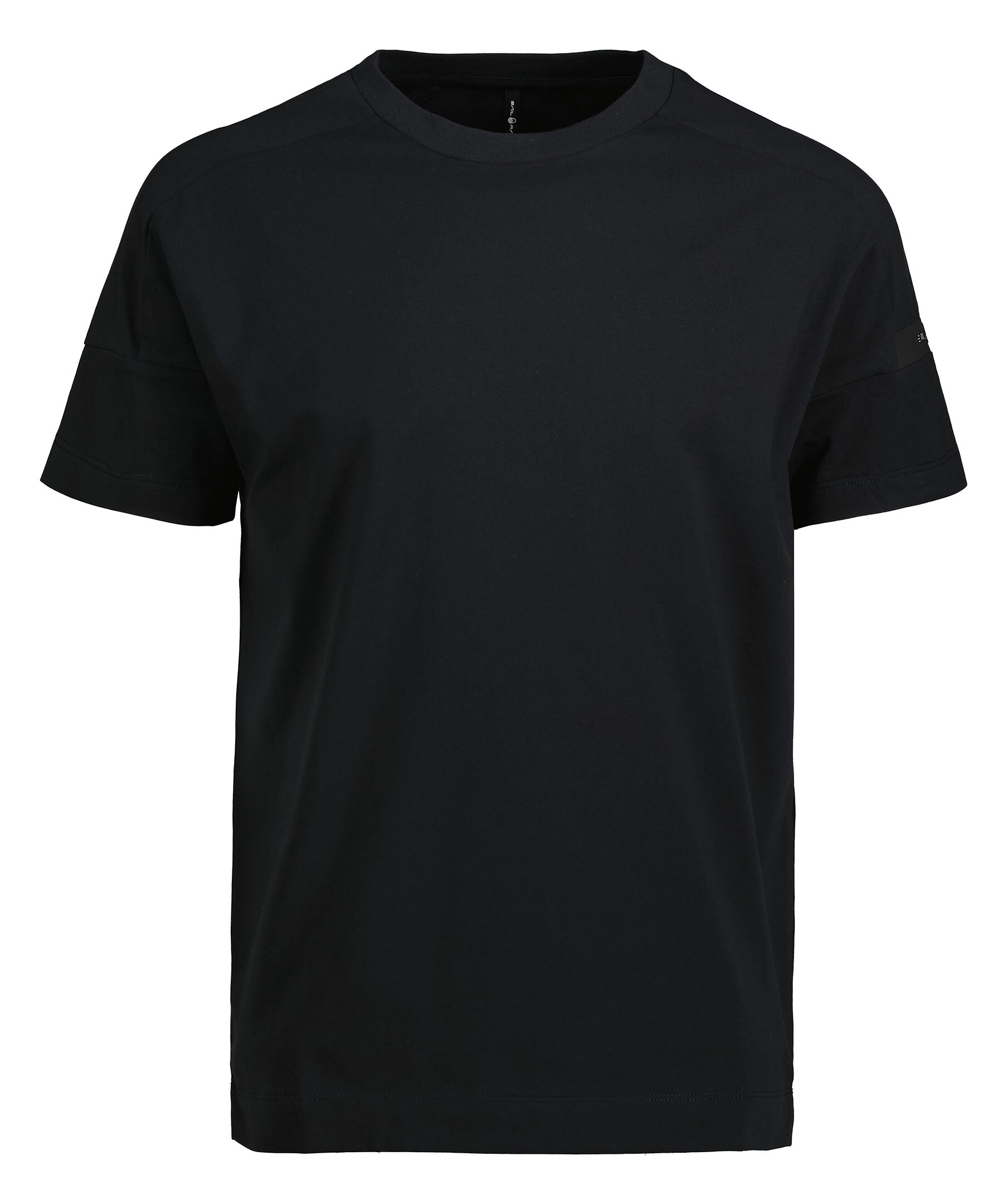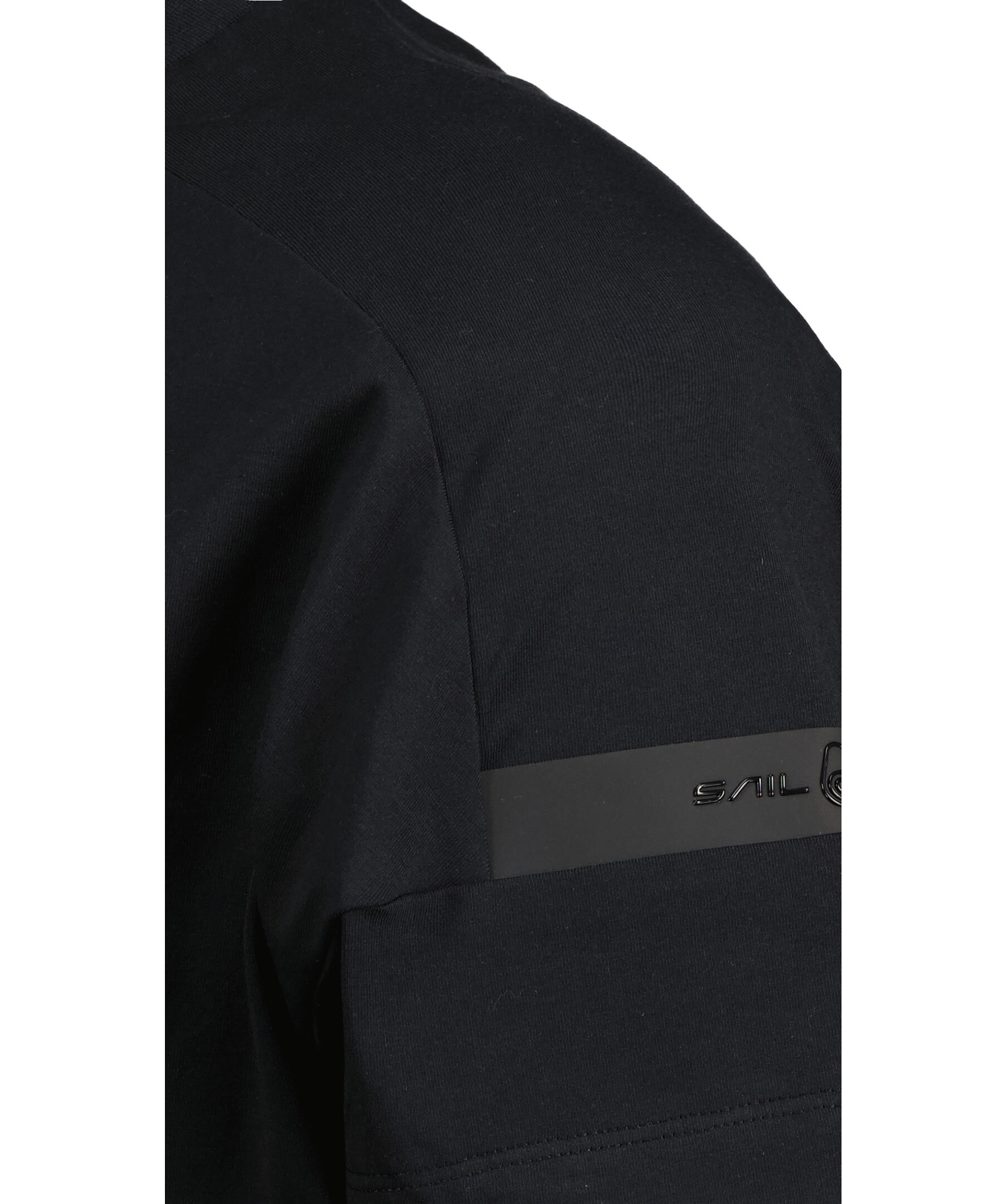 Svart t-shirt från Sail Racing. Tillverkad i en unik blandning av bomull och lycra. T-shirten har ett ribbat avslut kring halsen. Designad med en Sail Racing logotyp på vänster ärm och en blocklogotyp bak i nacken.