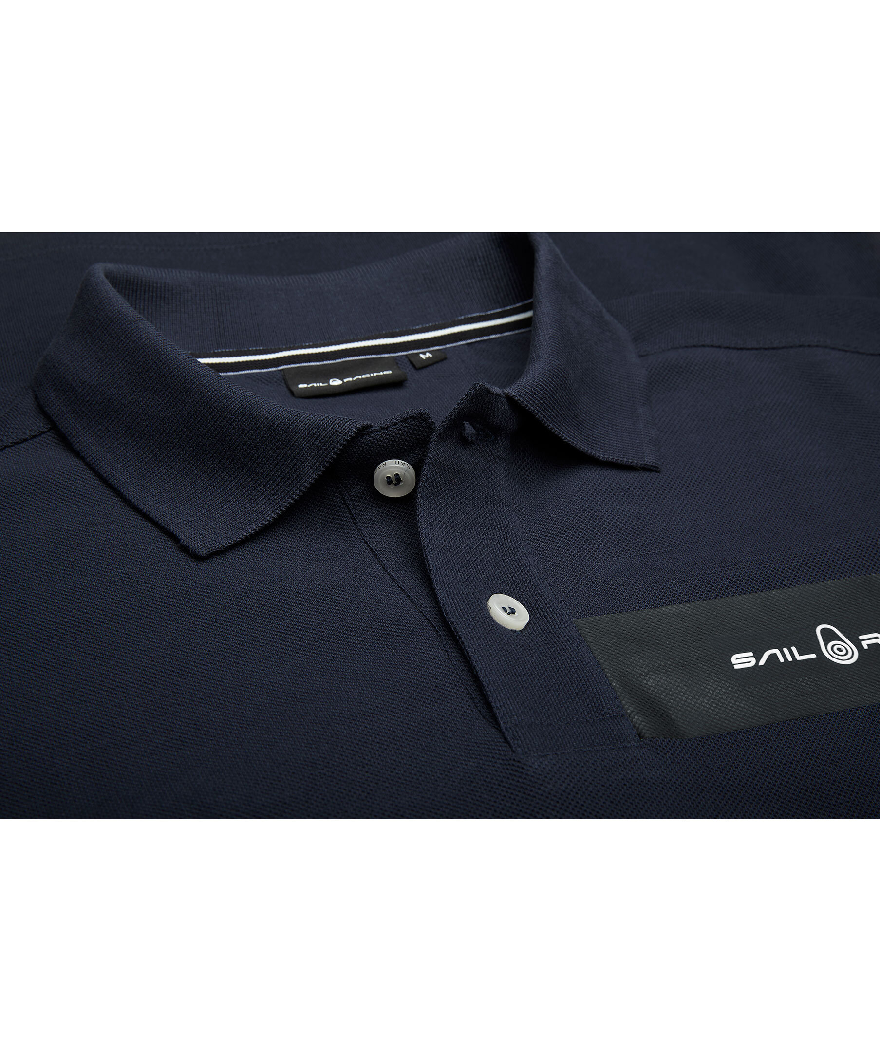 Marinblå pikétröja från Sail Racing. Tillverkad i 100% bomull. Slätstickad krage, logga på bröstet och i nacken.