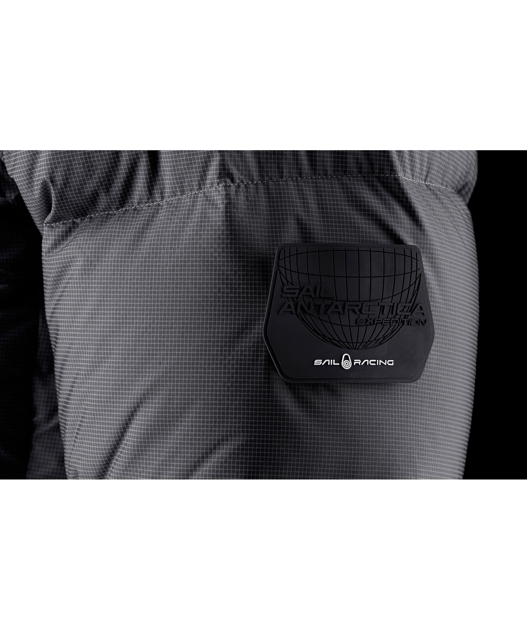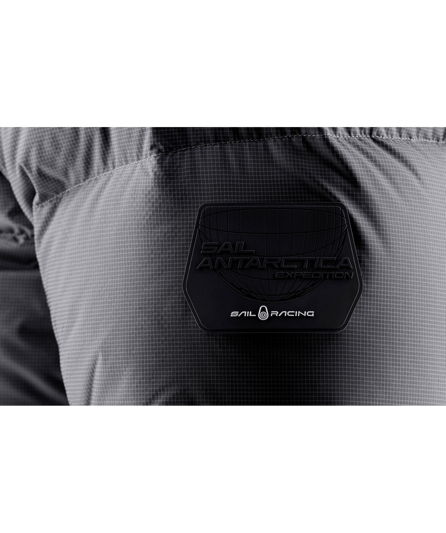 Grå vindtät och vattenavvisande dunjacka från Sail Racing. Jackan stängs med tvåvägsdragkedja och har två midjefickor med dolda dragkedjor och på insidan av fickorna finns en justerbar dragsko för en anpassad passform runt höften. Jackan har även två praktiska bröstfickor och alla fickor är fodrade med microfleece för extra komfort. Jackan har även två innerfickor i mesh med överlappande stängningar. Huvan kan justeras med dragsko bak för en anpassad passform och har en dunfylld kanal runt öppningen. Ärmsluten är förlängda över handryggen och insidan är utrustad med en polar tech-fleece-manschett med tumhållare som värmer och skyddar dina händer. Logotyp på vänster ärm, vänster axel samt en blocklogotyp på framsidan av huven. Tillverkad i en nylonblandning.
