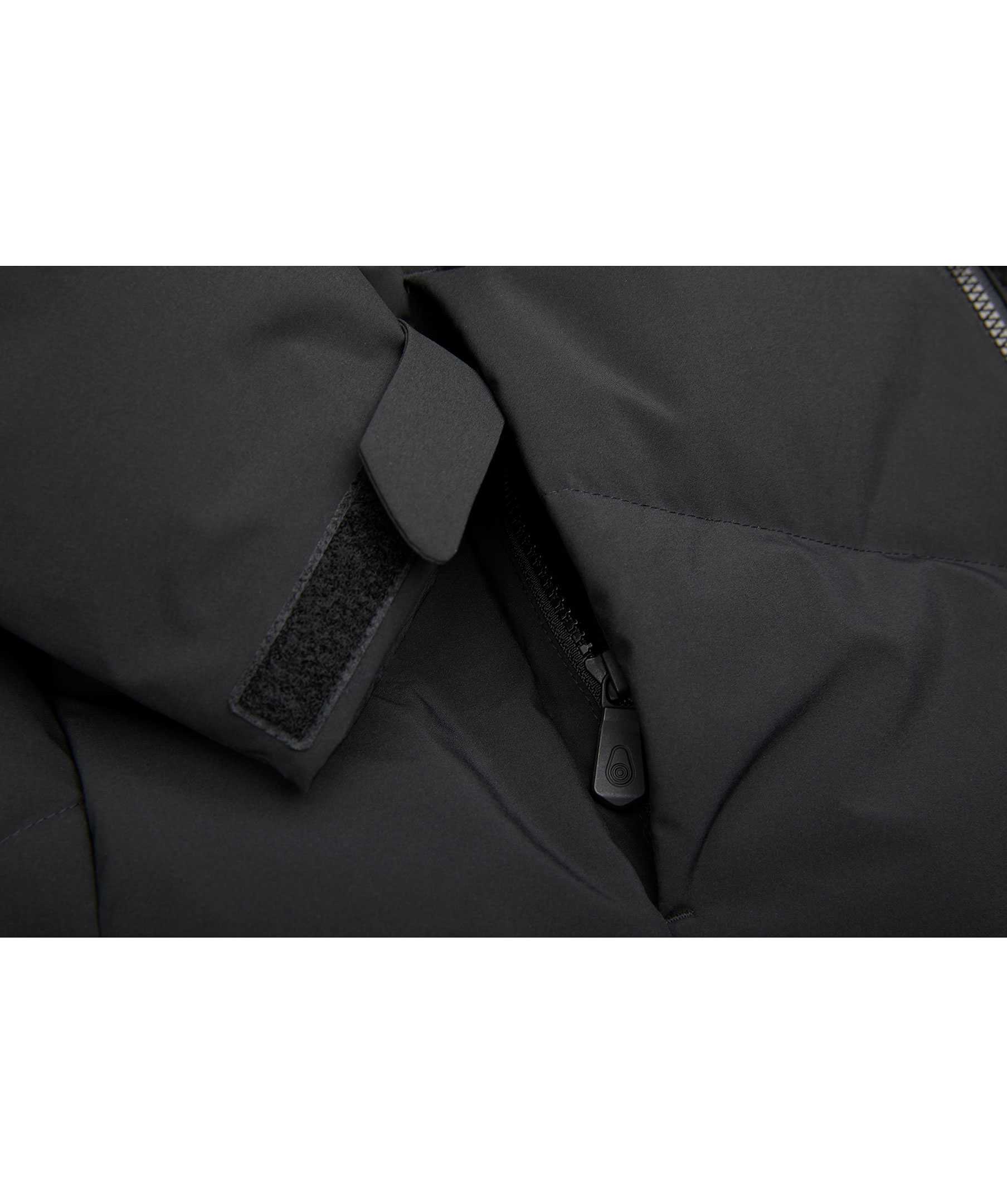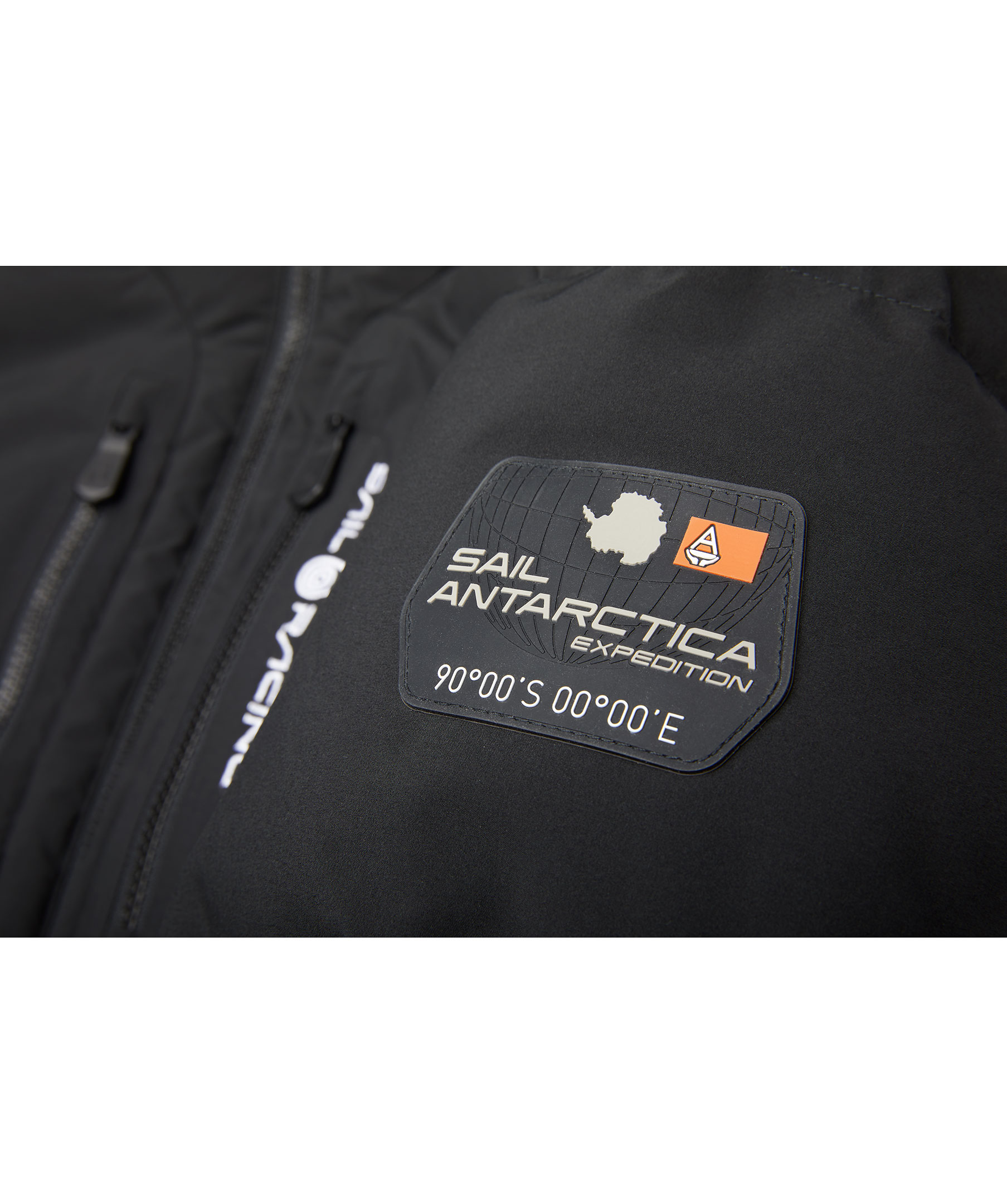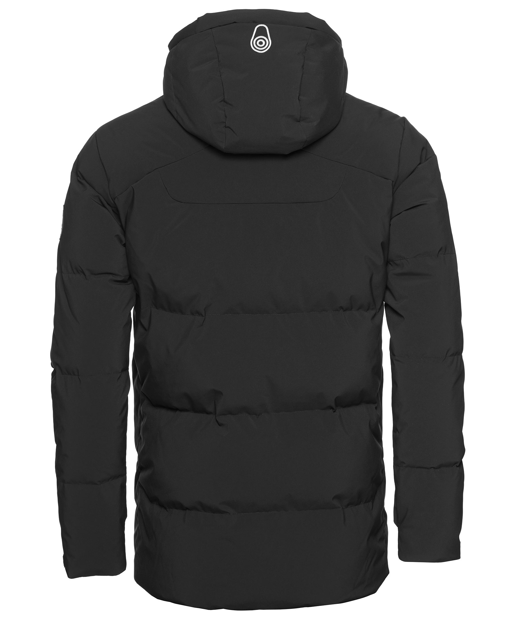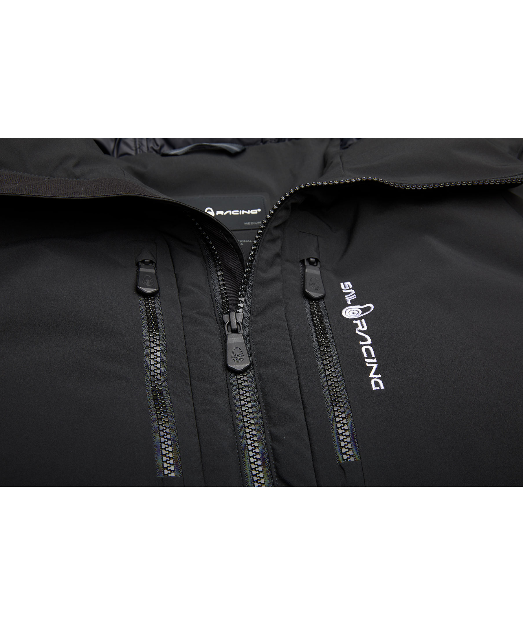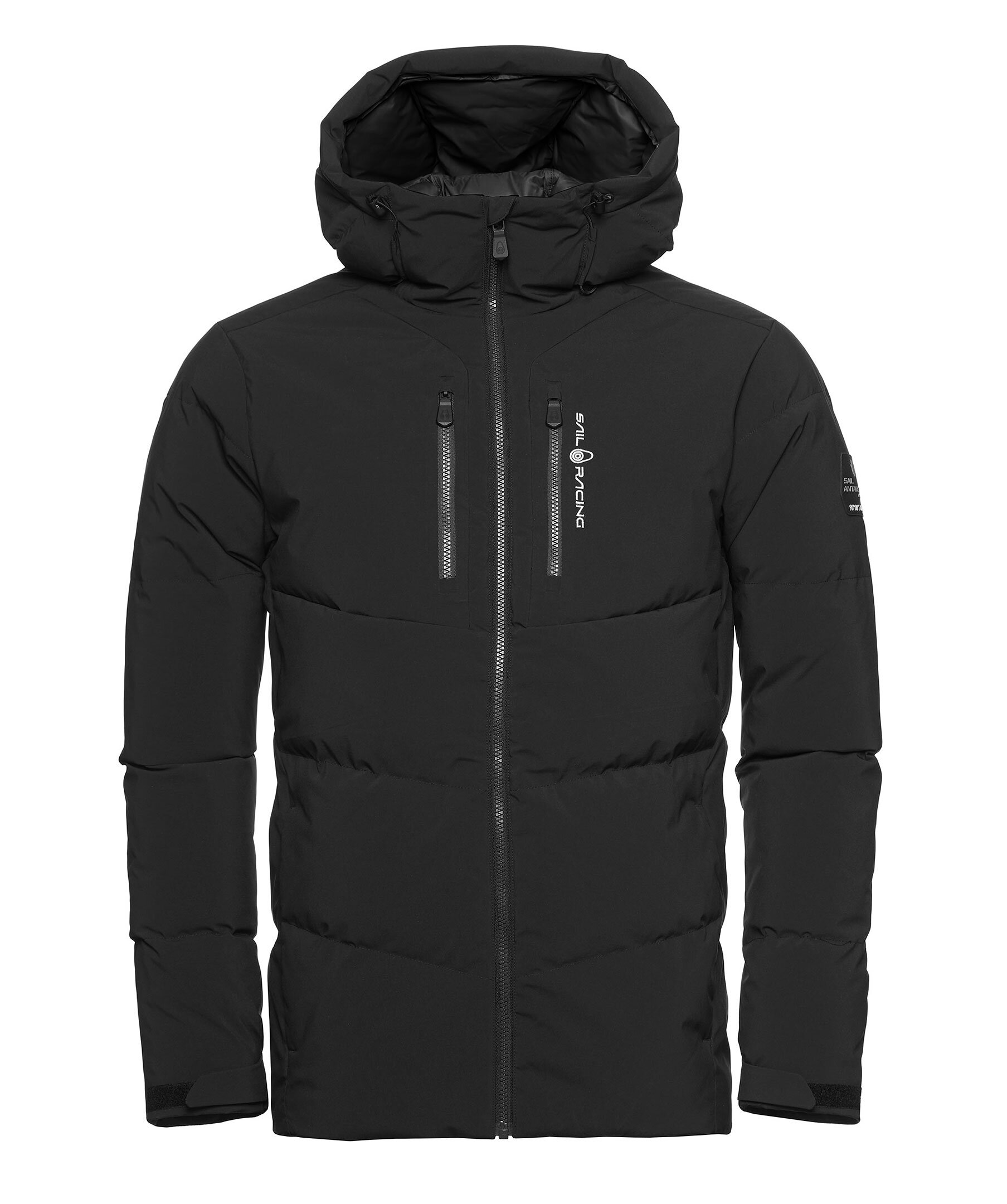 Svart dunjacka från Sail Racing. Två fickor på bröstet, broderad logotyp fram och på luvan, gummerad logga på vänster ärm. Vatten- och vinresistent.