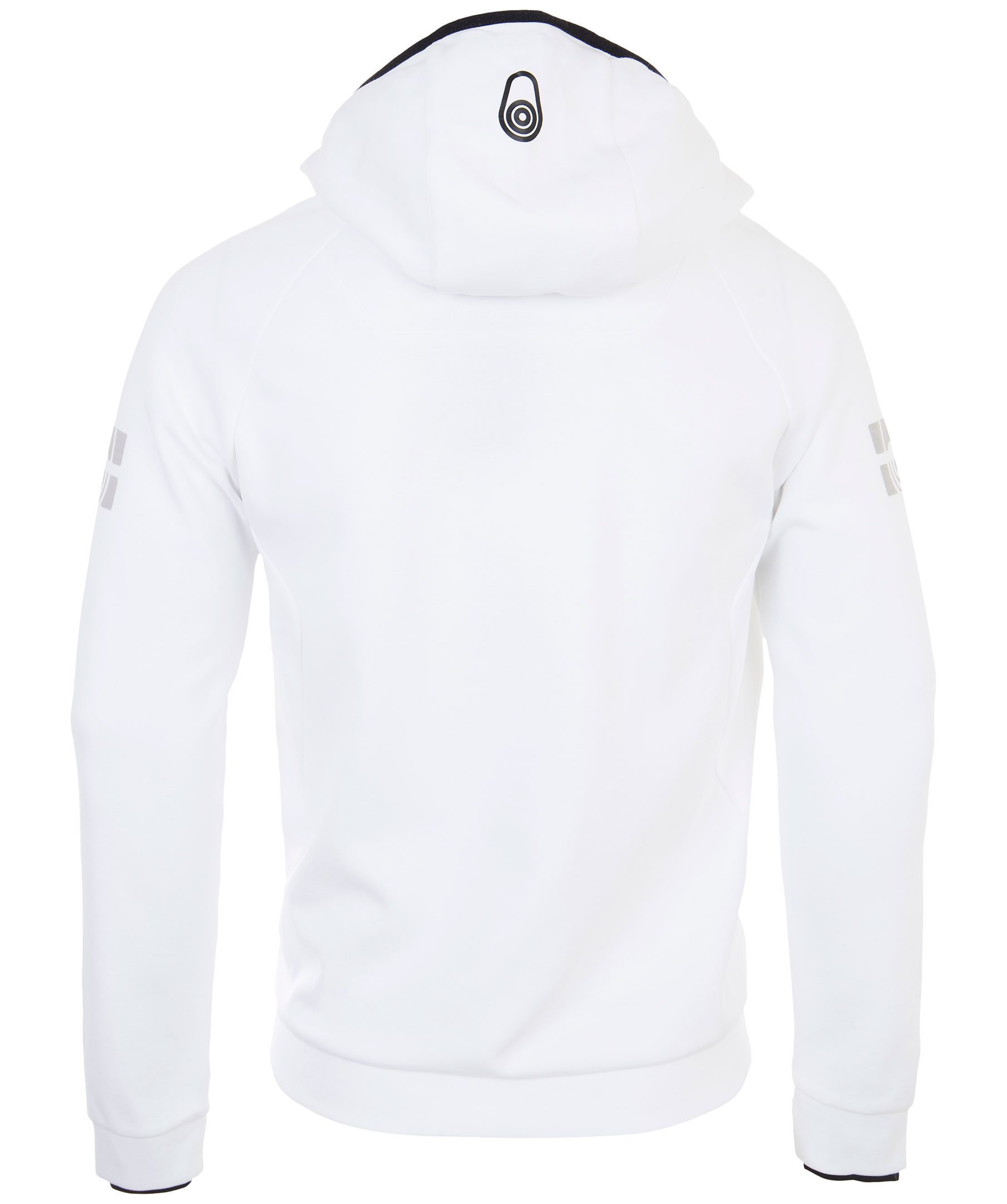 Vit blixtlåsförsedd hoodie från Sail Racing. Luva med logotyp på baksidan, samt kontrast färgad dragsko. Fickor i sidorna och muddar i ärmslut. Tryckta logotyper på ärmarna samt tyg patch i plaggslut.