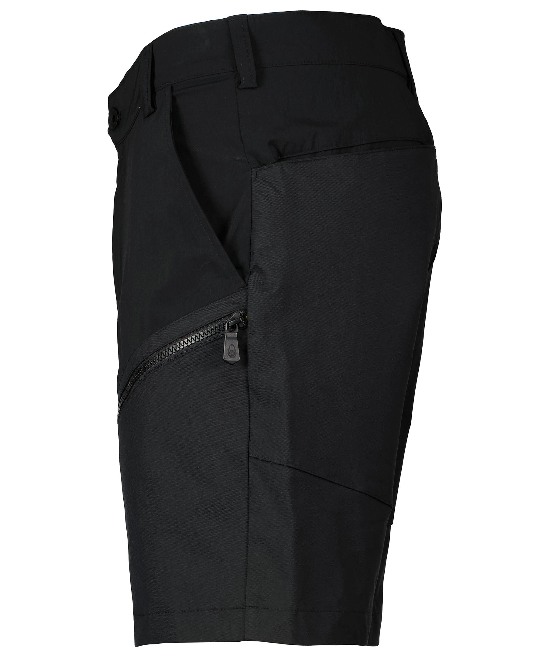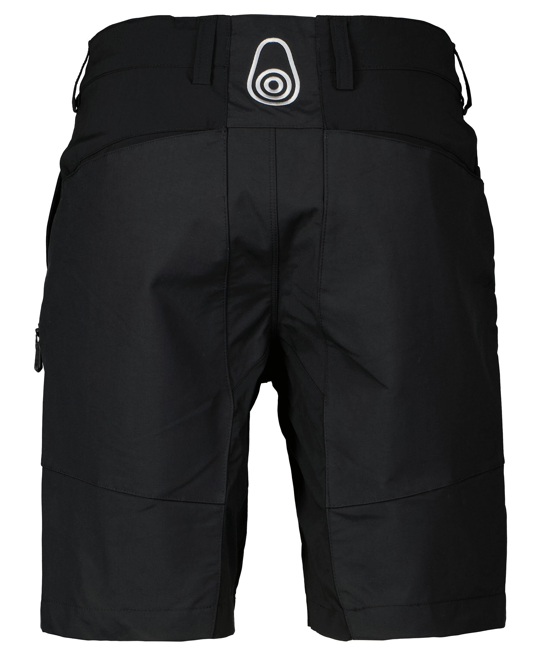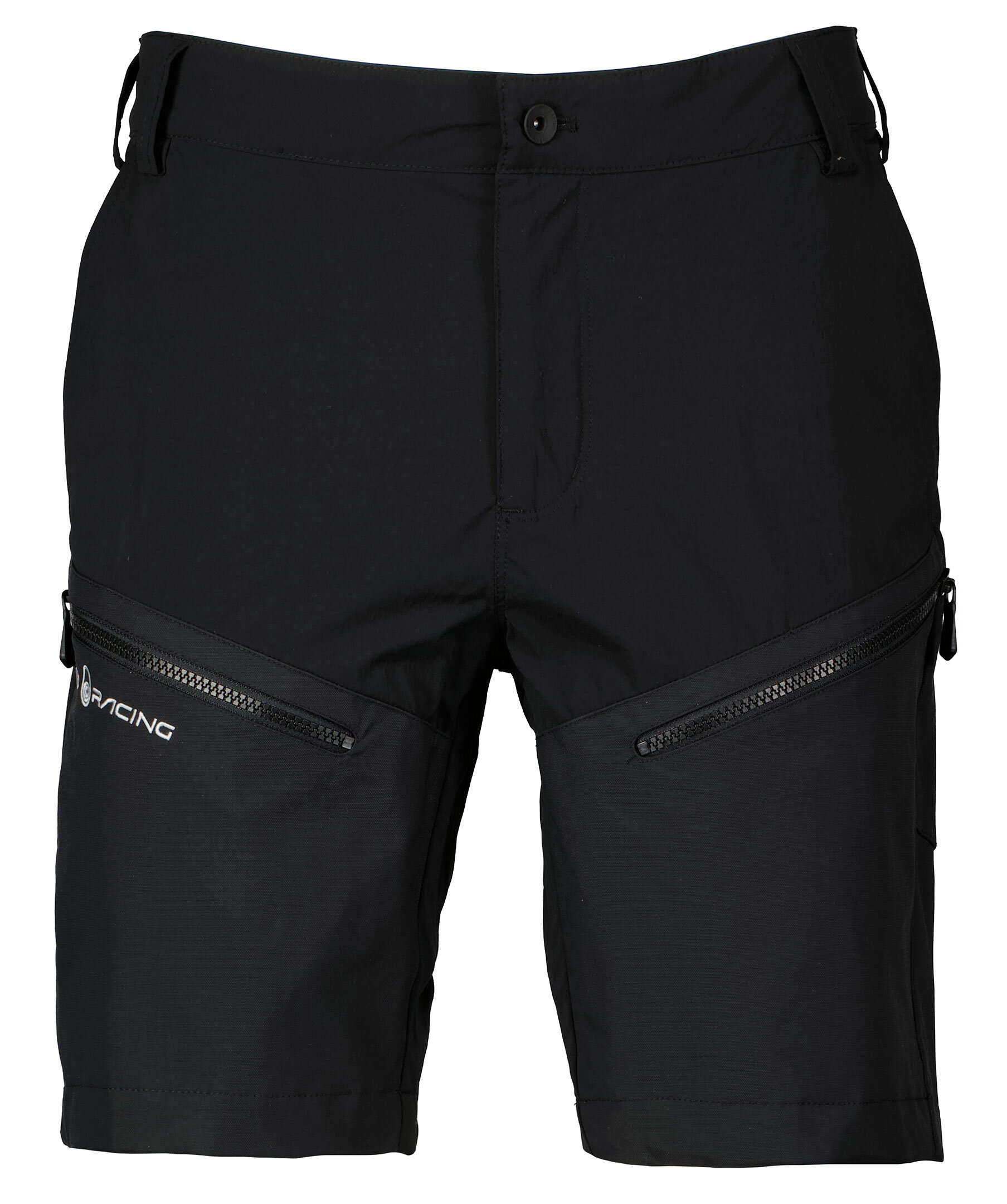 Svarta shorts från Sail Racing. Fickor fram, bak och fickor med dragkedja på låren. Hällor för bälte i midjan och dold gylf med dragkedja och knapp. Broderad sailracing logotyp under den högra fickan på låret och mitt bak upptill. Tillverkade i stretchigt nylontyg.