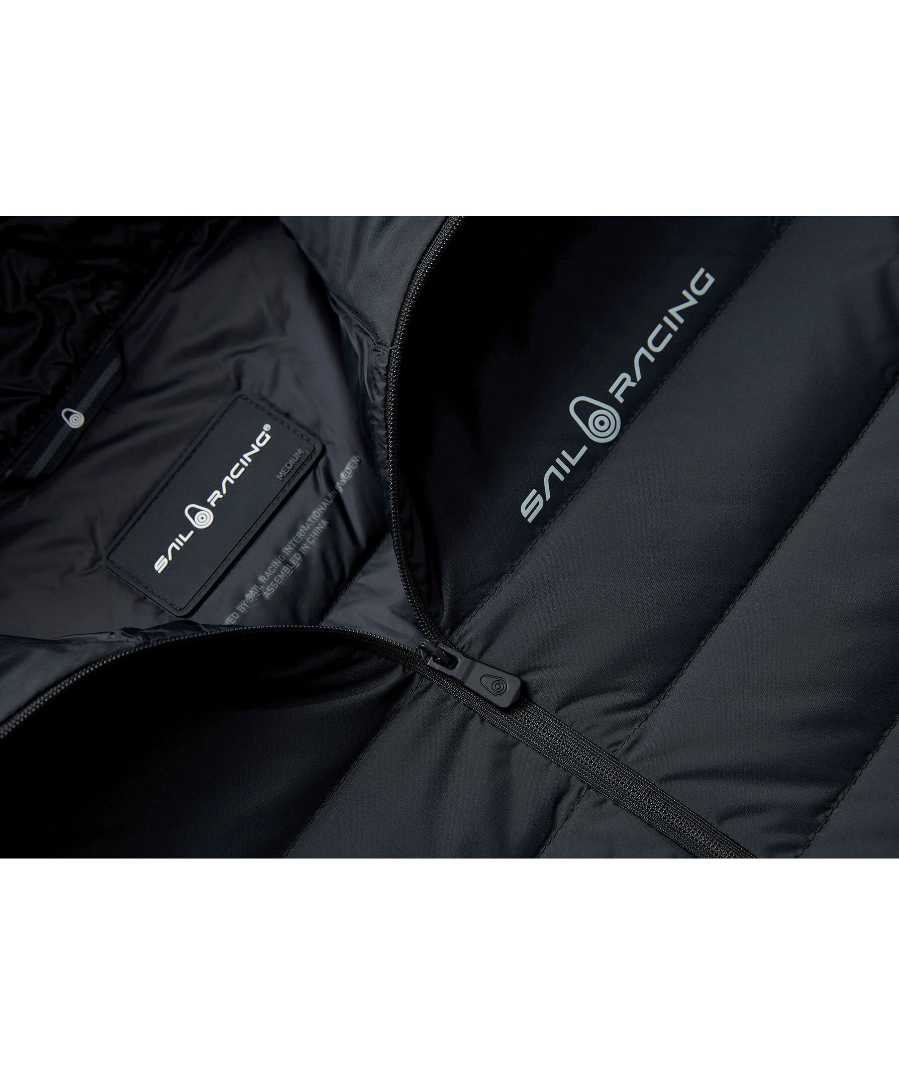 Svart lättviktsdunjacka med huva från Sail Racing. Jackan stängs med dragkedja och har två fodrade midjefickor med fleece som stängs med dragkedja samt en innerficka med dragkedja. Sail Racing logotyp på bröstet och blocklogotyp på toppen av huvan. Jackan är vind- och vattenavvisande. Tillverkad i nylon.