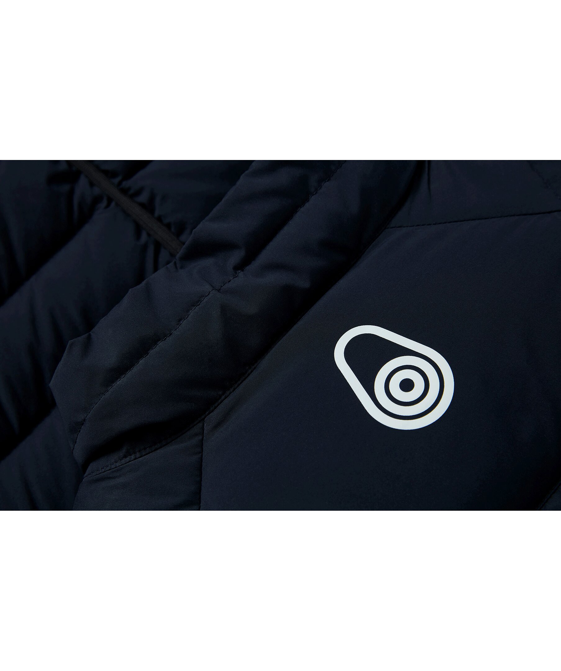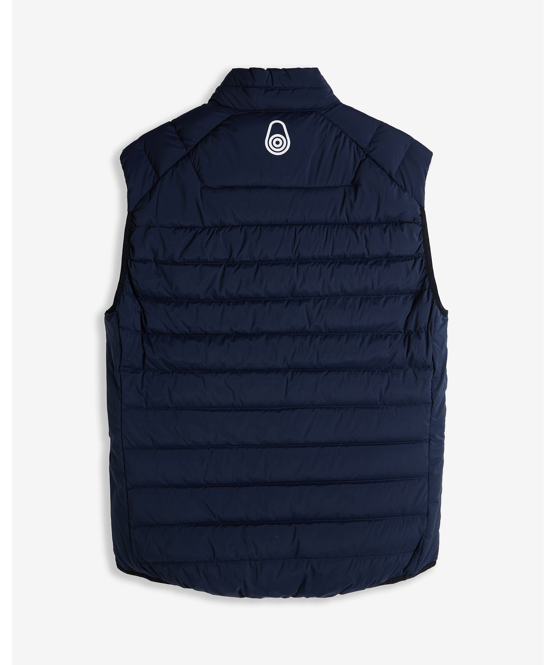 Mörkblå, vind- och vattenavvisande dunväst från Sail Racing. Logotyp tryckt på bröstet och i nacken, två fleecefodrade framfickor med dragkedja och en innerficka. Stängs med dragkedja fram. Konstruerad i ett lättviktstyg av återvunnen nylon och insida i Graphene-tyg som optimerar temperaturreglering. Västen har en PFC-fri DWR-behandling för att förhindra att tyget blir blött och är fylld med 90/10 Blue Sign och RDS certifierat dun och fjädrar. Fillpower 700. Sidopanelerna konstruerade i stretch för bättre flexibilitet och fyllda med Primaloft® Black Eco för optimerad värmeförmåga och funktion.