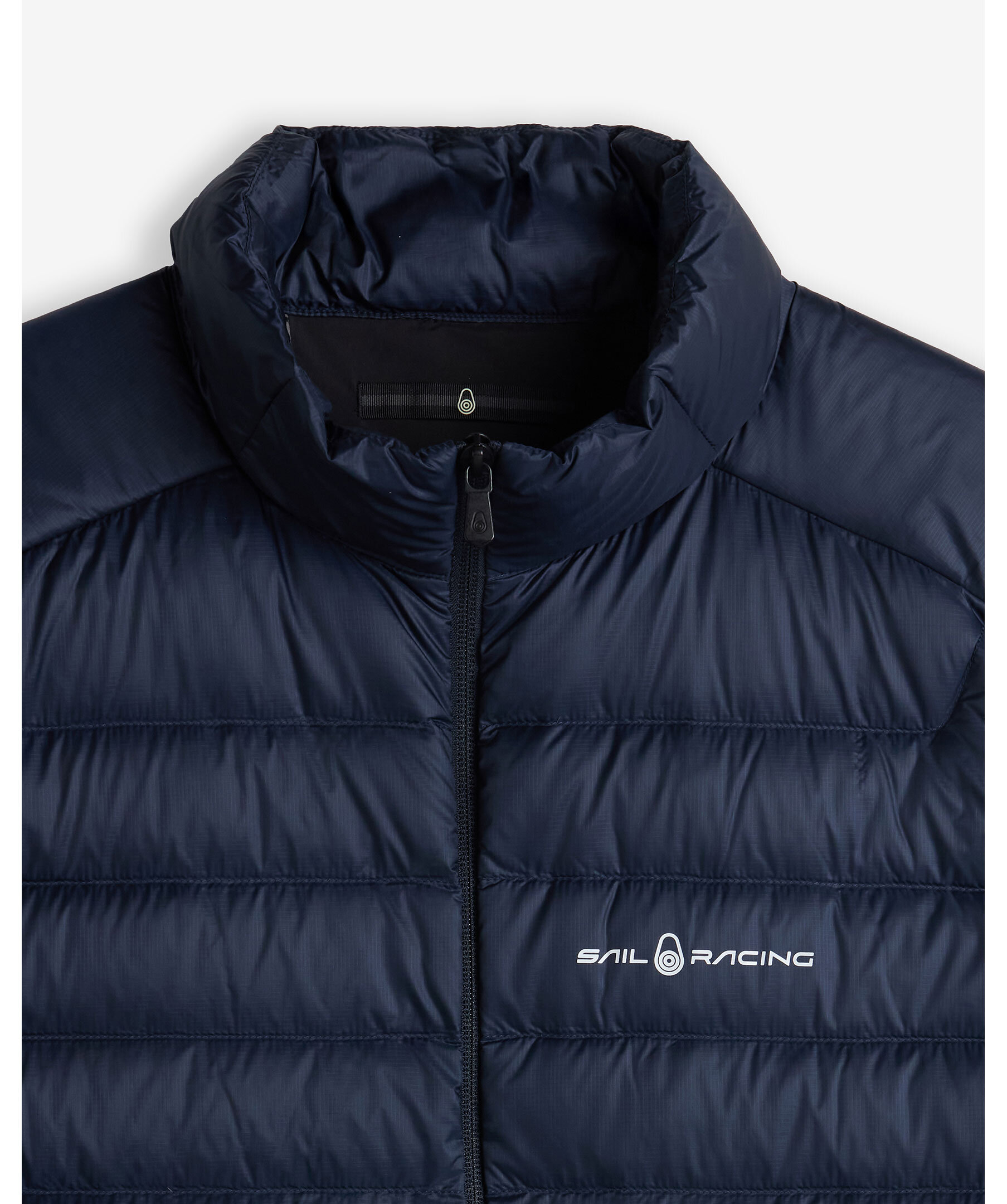 Vind- och vattenavvisande dunväst från Sail Racing. Logotyp tryckt på bröstet och i nacken, två fleecefodrade framfickor med dragkedja och en innerficka. Stängs med dragkedja fram. Konstruerad i ett lättviktstyg av återvunnen nylon och insida i Graphene-tyg som optimerar temperaturreglering. Västen har en PFC-fri DWR-behandling för att förhindra att tyget blir blött och är fylld med 90/10 Blue Sign och RDS certifierat dun och fjädrar. Fillpower 700. Sidopanelerna konstruerade i stretch för bättre flexibilitet och fyllda med Primaloft® Black Eco för optimerad värmeförmåga och funktion.