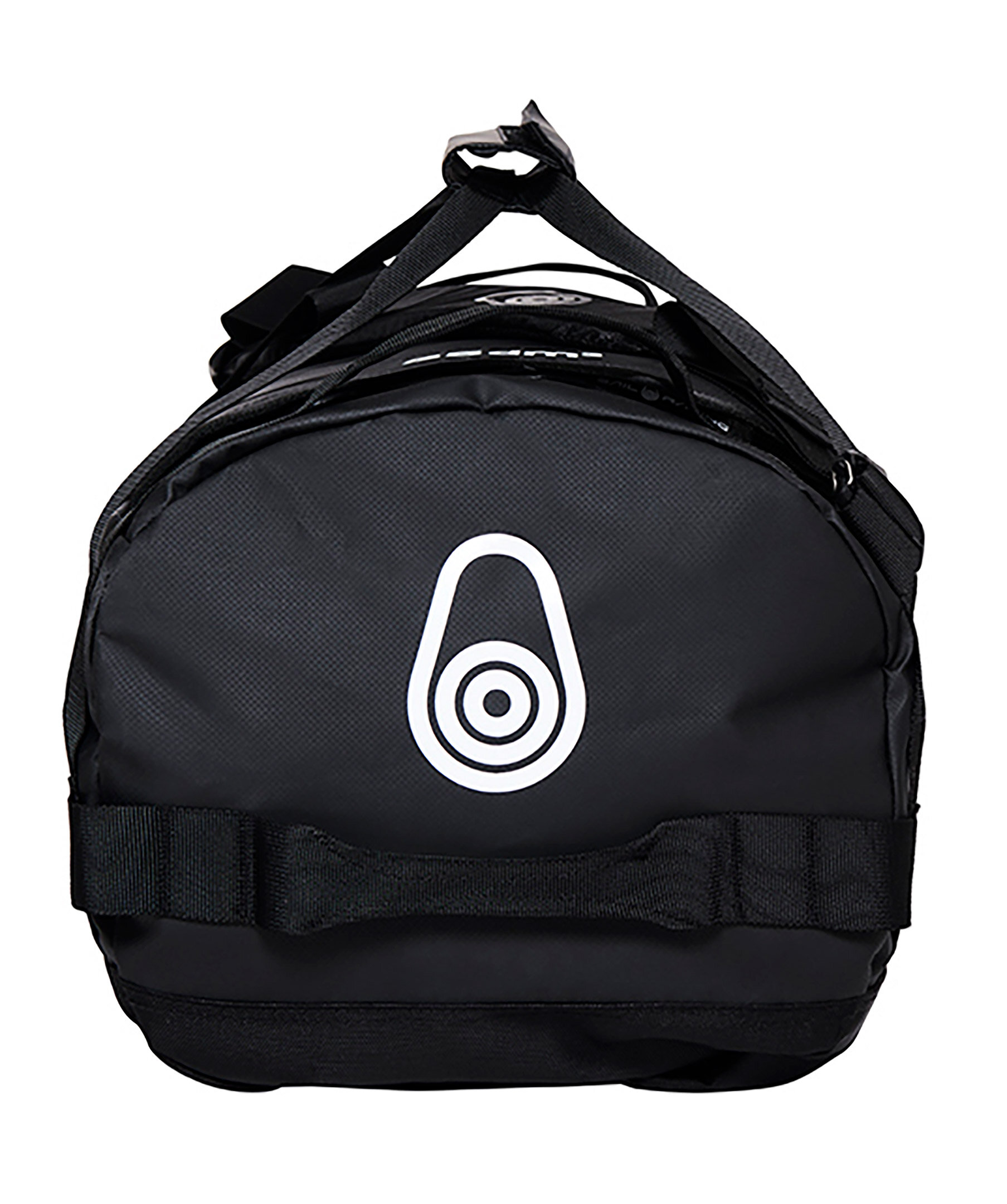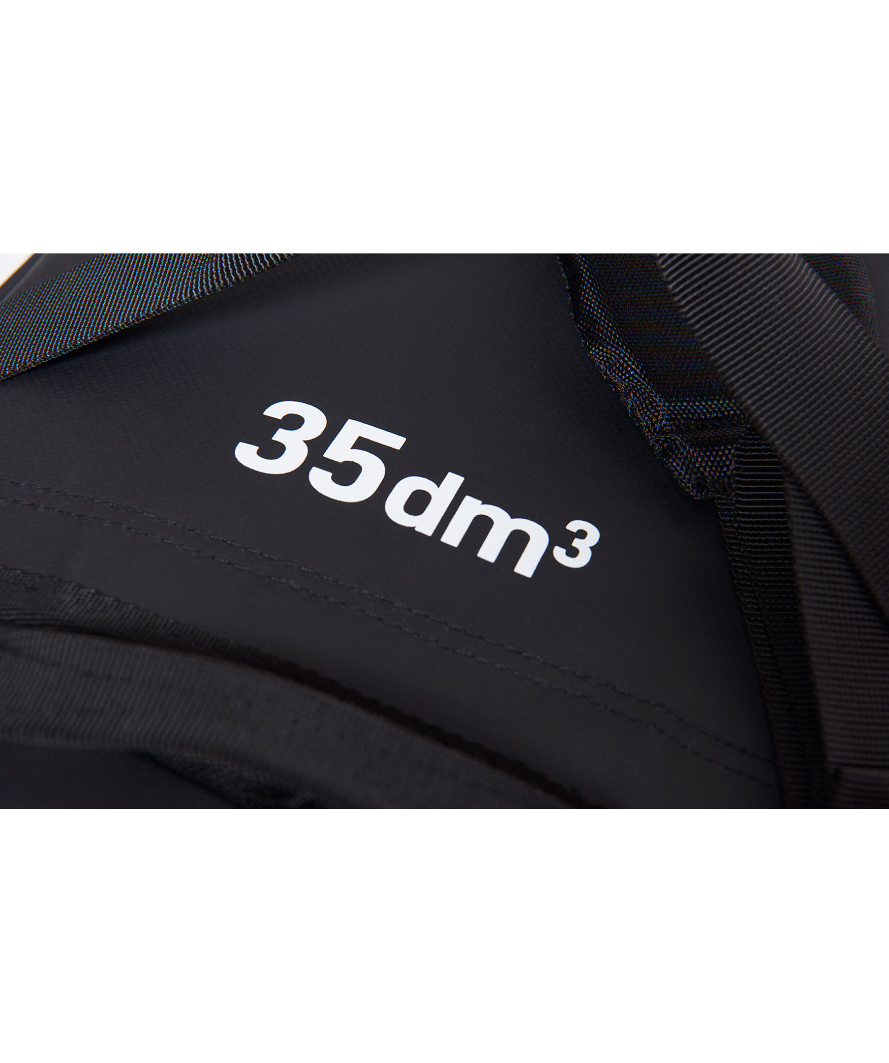 Svart weekendbag med sportiga detaljer från Sail Racing. S en 35L väska tillverkad i polyester tarpaulintyg och kan bäras som crossbody väska. Tillverkad av vattentätt material och ger skydd mot lätt fukt. Den öppnas på toppen, så att du enkelt kan se vad du har packat med dess stora D-öppning som försluts med dragkedja. Botten är förstärkt med nylontyg. Den har många praktiska handtag i webbingtejp och är utrustad med öglor så att du kan fästa seglingsverktyg vid behov. Förstärkning i botten och juster- och avtagbara axelremmar. Två innerfickor i mesh, en större ficka inuti toppen. Tryckt Sail Racing logga och blocklogga på sidorna, 35dm3 tryck på toppen. Mått: L: 50 cm B: 31 cm H: 23 cm.