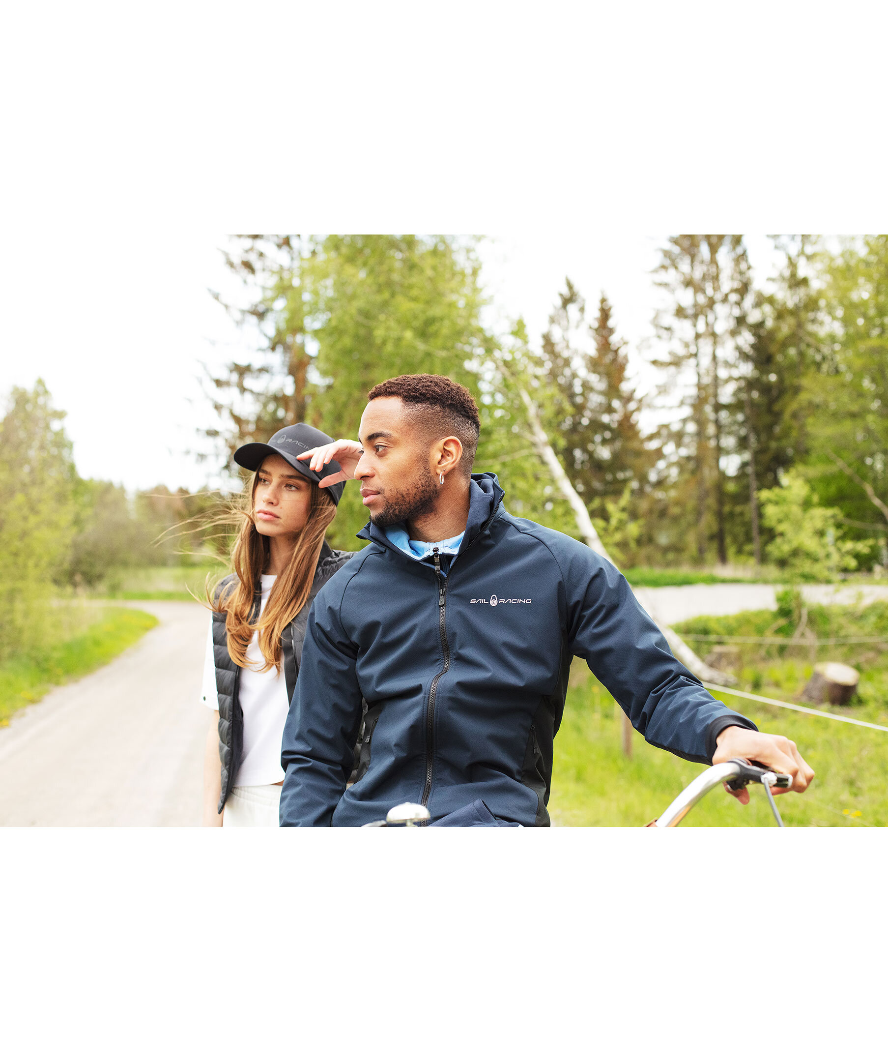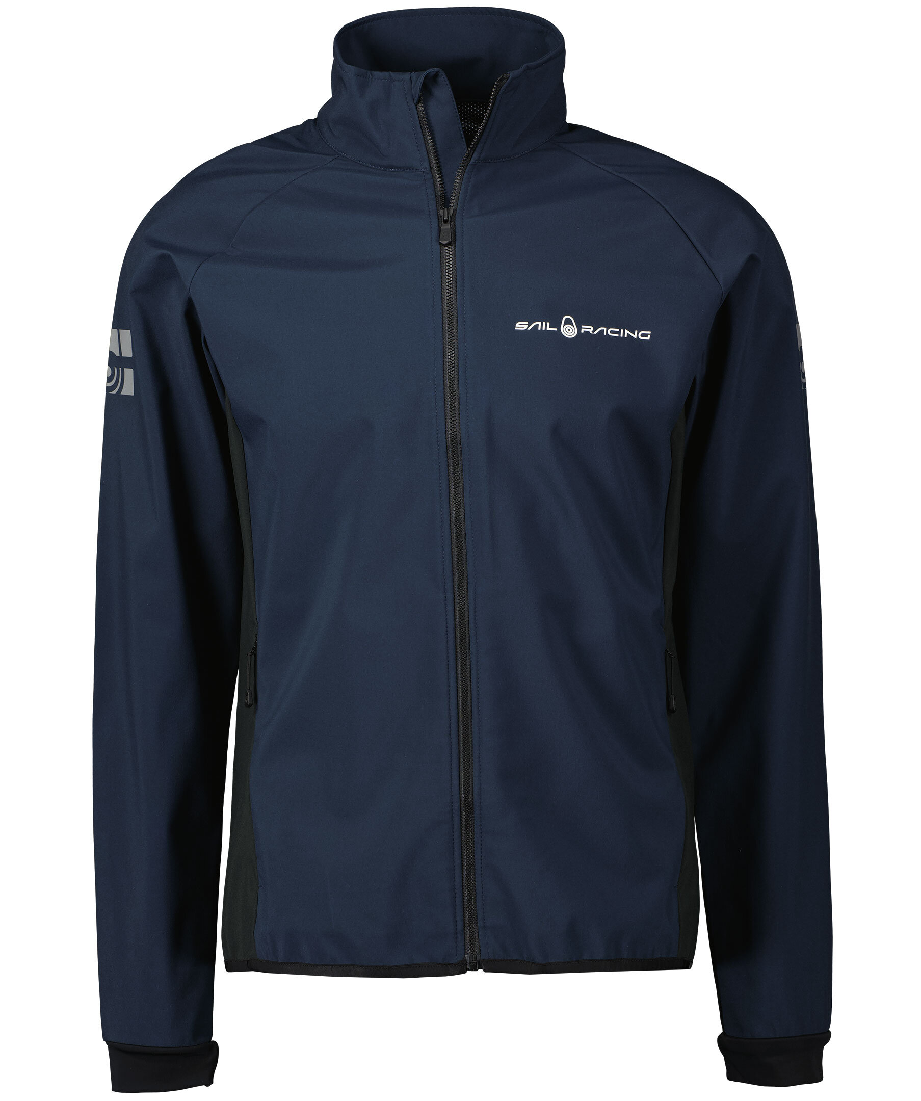 Marinblå vindjacka från Sailracing. Tillverkad i en mix av polyester och spandex. En softshell jacka i stretch som är vatten- och vindavvisande, den är fodrad med ett meshtyg och har en hög andningsförmåga. En främre YKK dragkedja av vislon. Två sidfickor med dold YKK dragkedja samt färgdetaljer på insidan. Mudd gjord av lykra i ärmsluten. Tryckt Sail Racing logotyp på bröst och nacke. Tryckta Sail Racing reflexer på ärmarna.