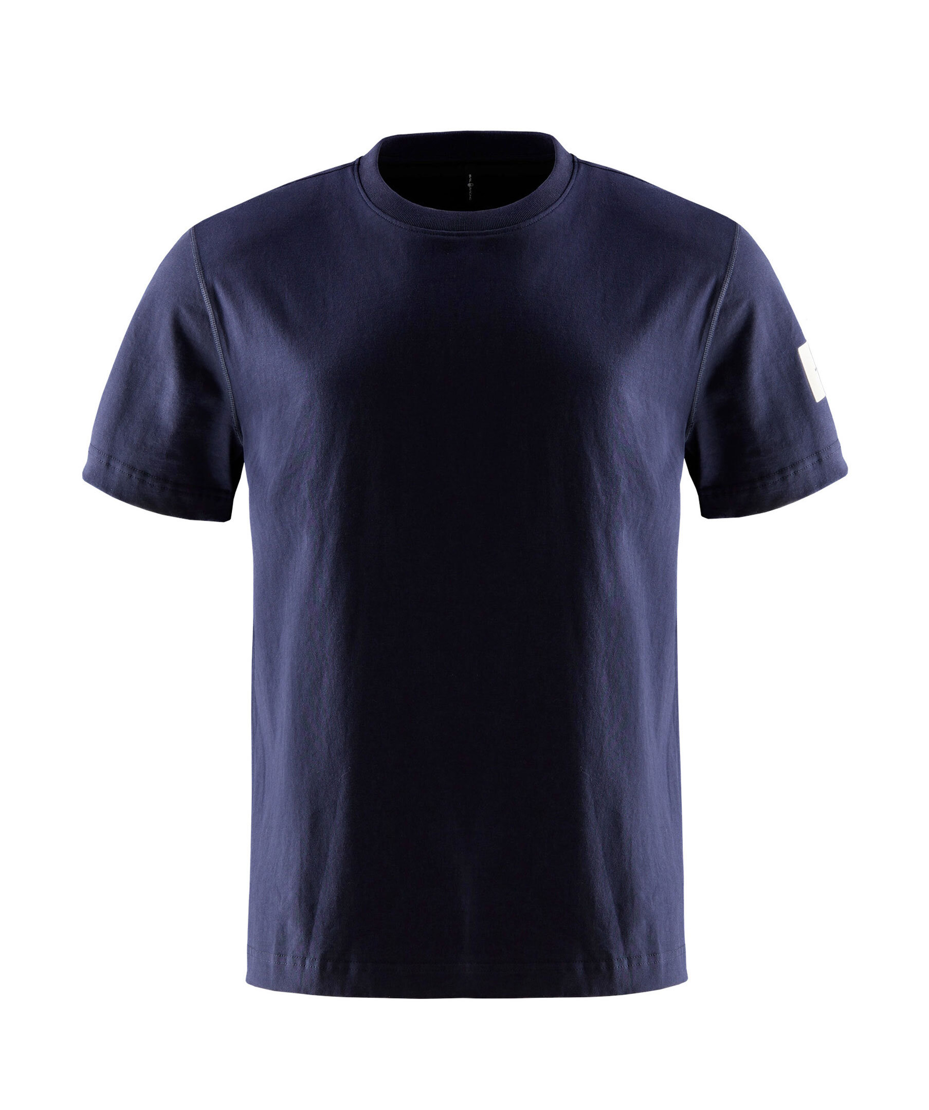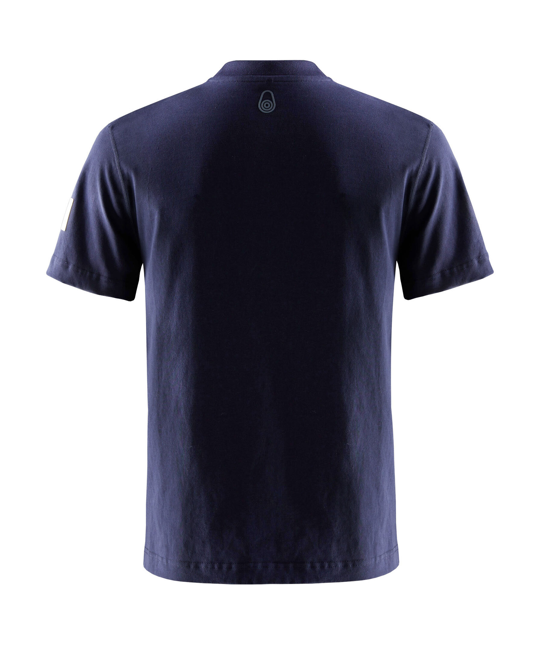 Mörkblå T-shirt från Sail Racing. T-shirten har ribbad, rund krage och flätstyngs-sömmar runt axelavsluten. Vit patch med logotyp på vänster ärm samt tryckt block-logotyp bak vid nacken. Tillverkad av 100% bomull.