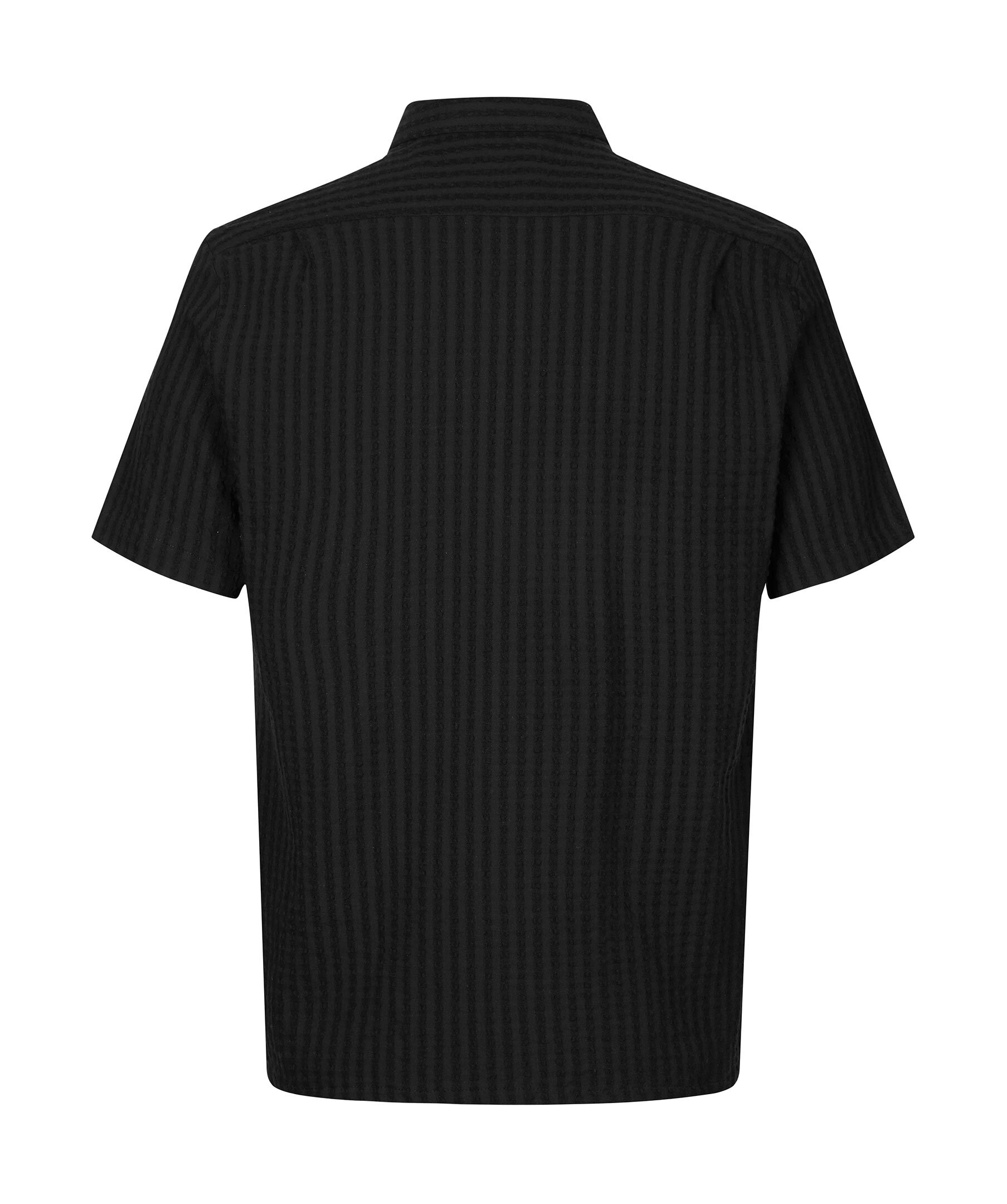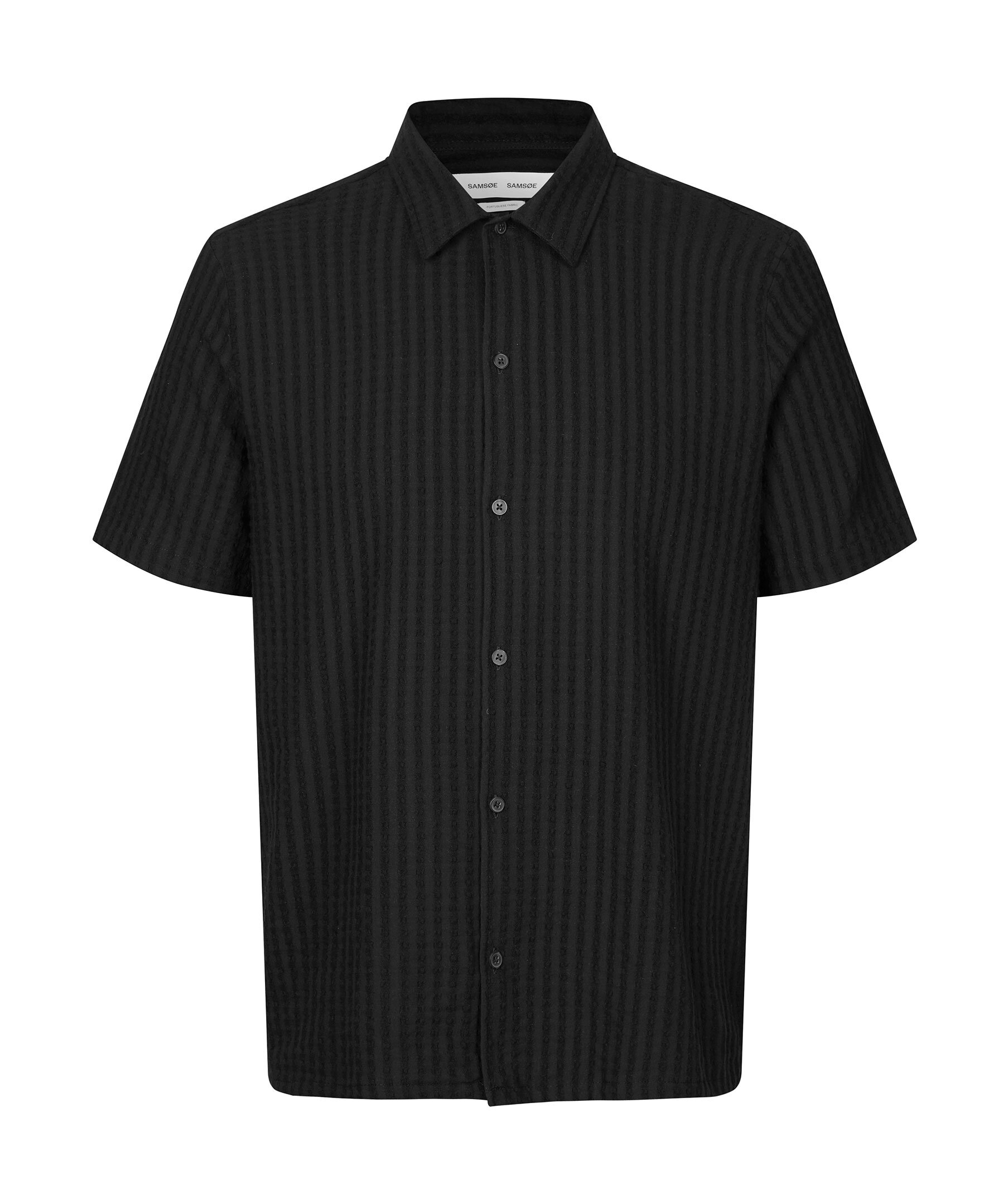 Svart strukturerad kortärmad skjorta från Samsoe Samsoe. Ränder med struktur, Knäppning framtill samt spetsig krage. Avslappnad passform