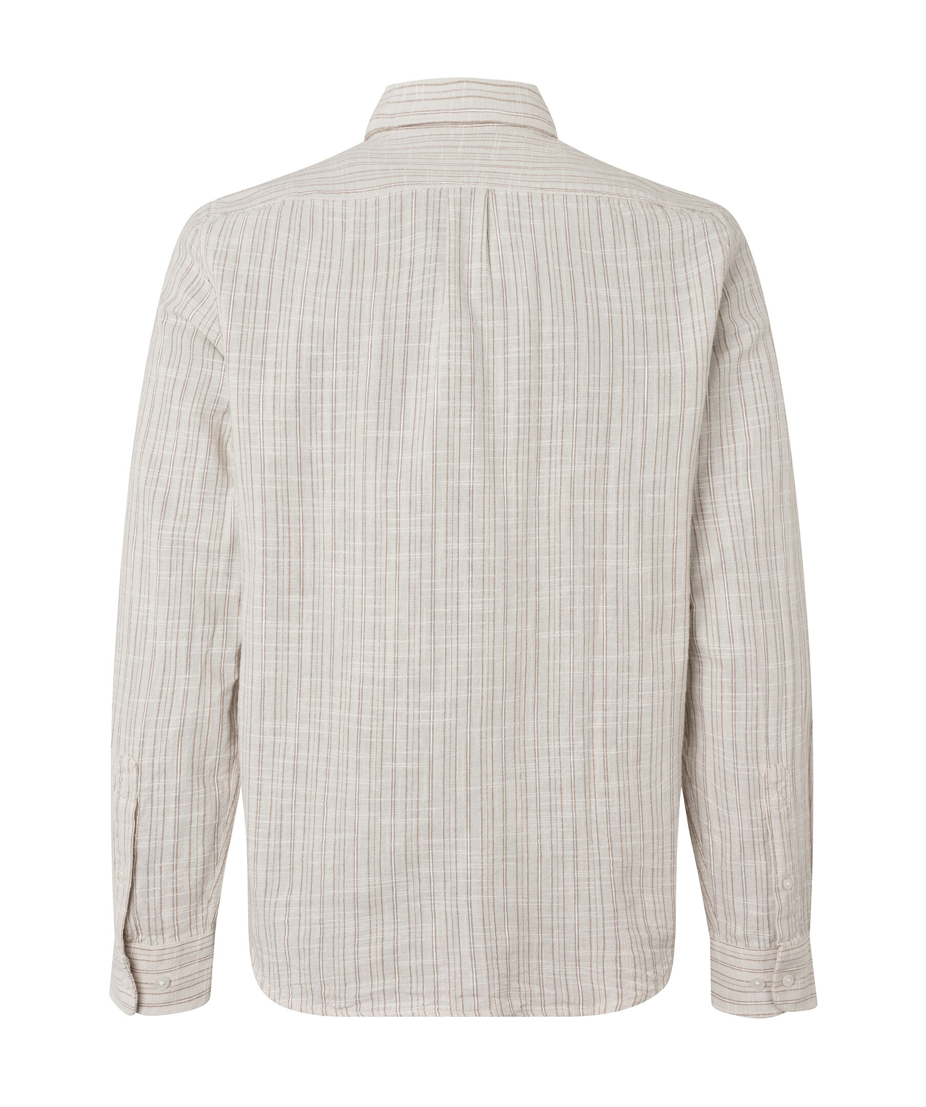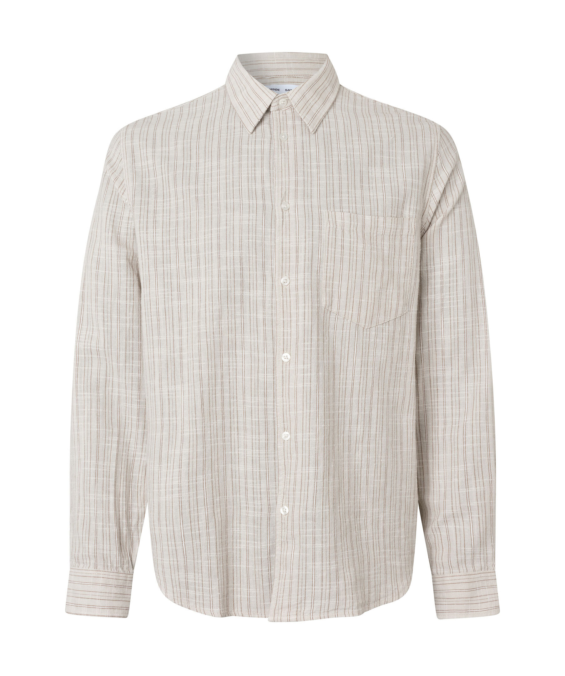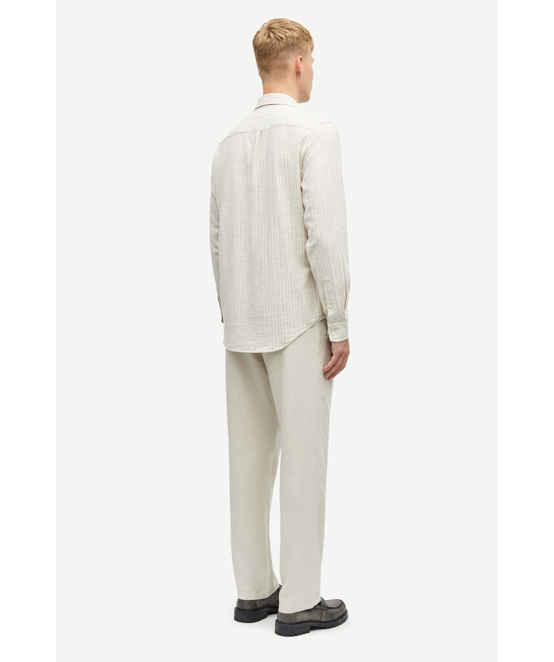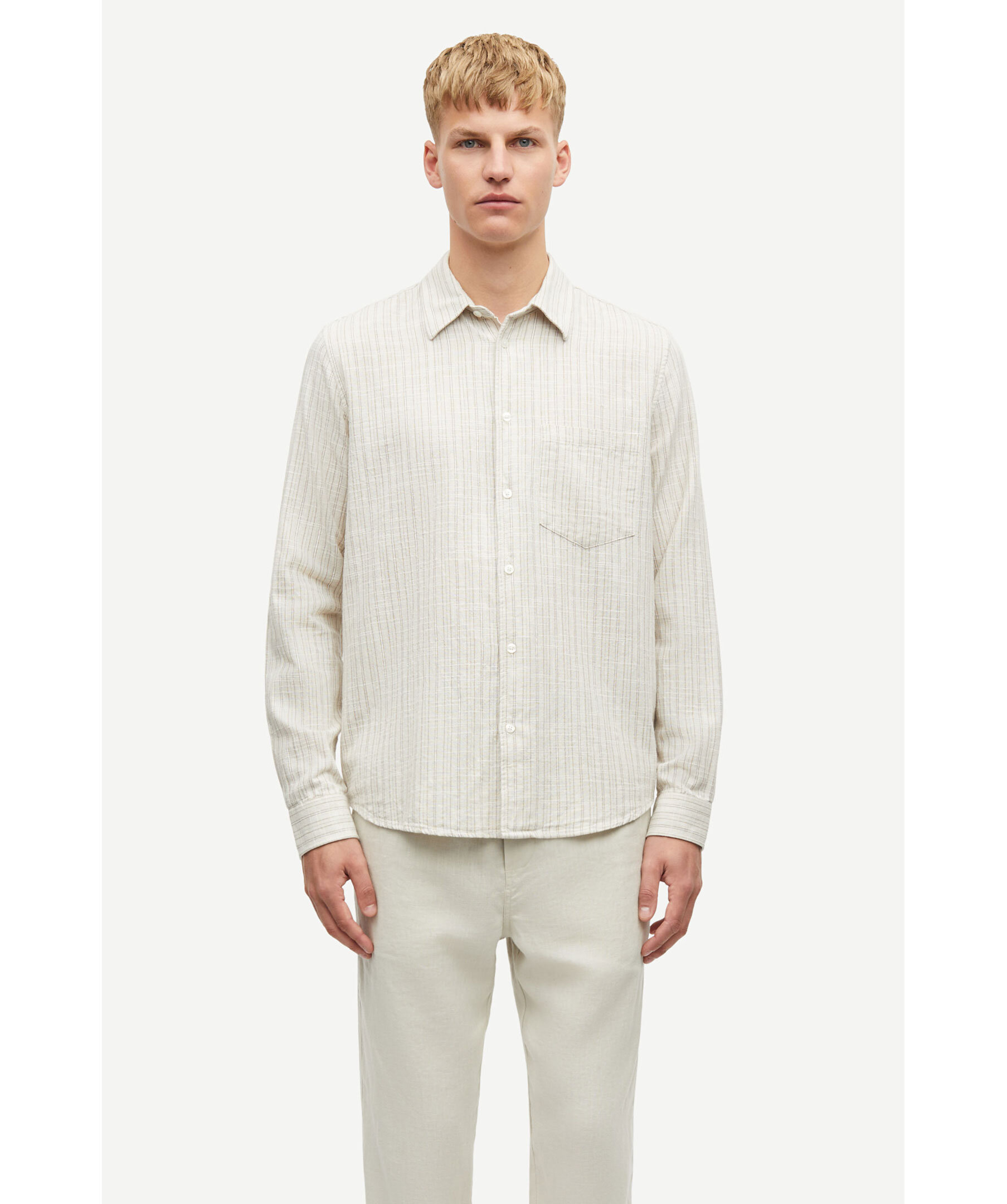 Ljusgrå och randig skjorta från Samsoe Samsoe. Skjortan har en bröstficka, svängd fåll och baksöm med veck. Tillverkad i en linneblandning med vävd rand. Normal passform.