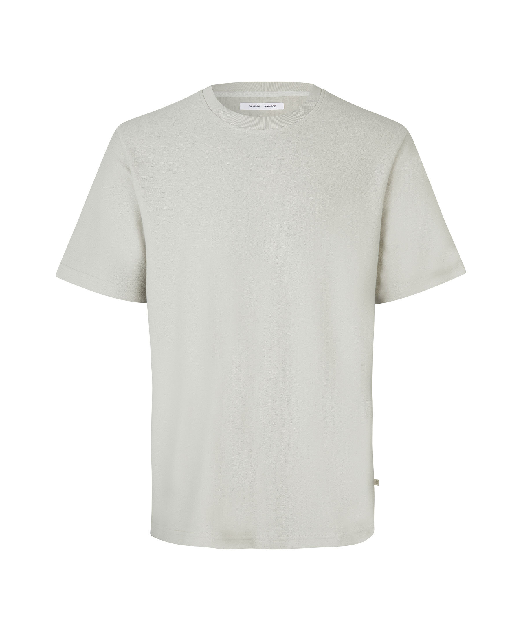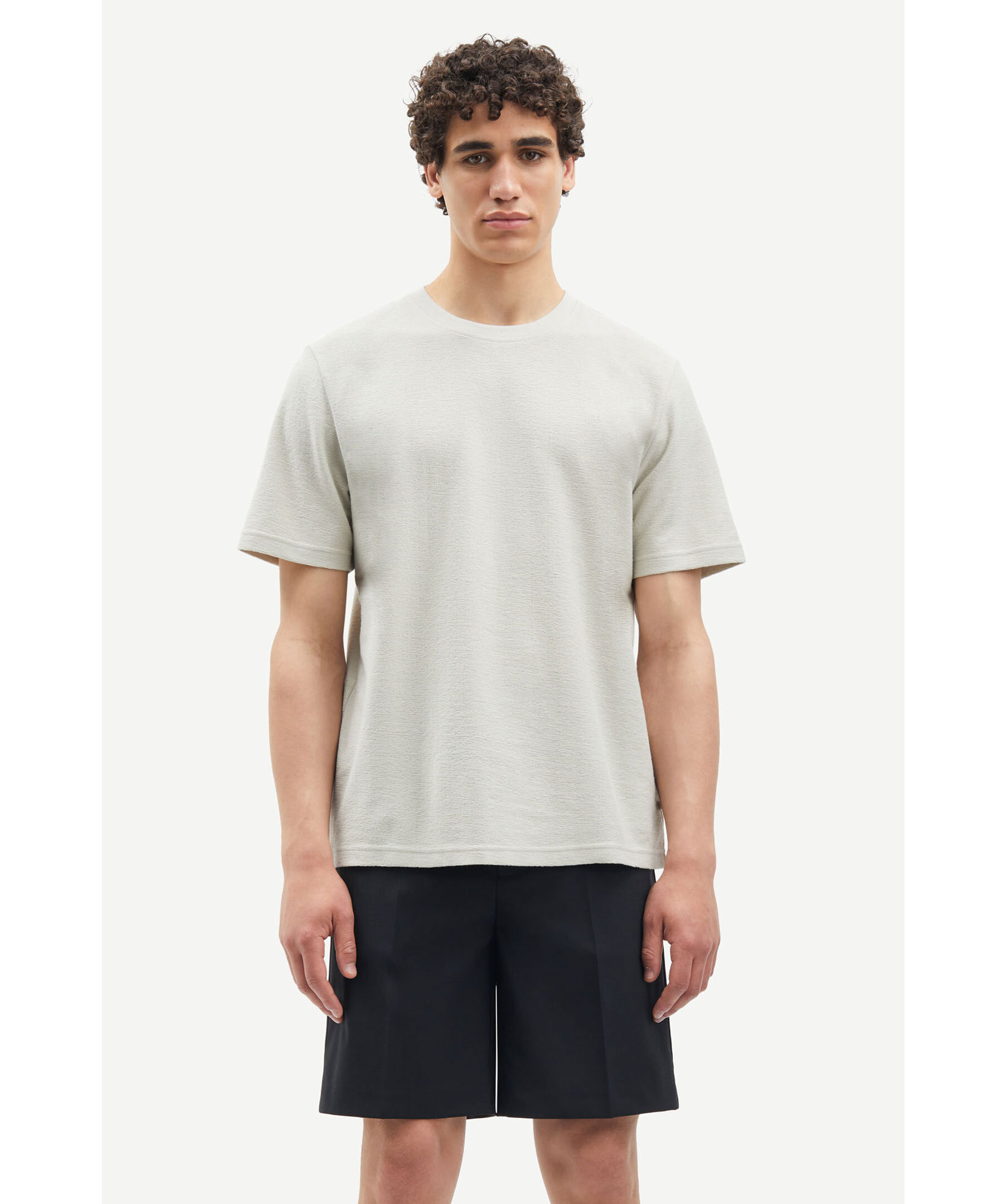 Gråbeige t-shirt från Samsoe Samsoe. Ribbstickad crewneck, frottéliknande struktur. Tillverkad av en blandning av ekologisk bomull och återvunnen polyester. Normal passform.