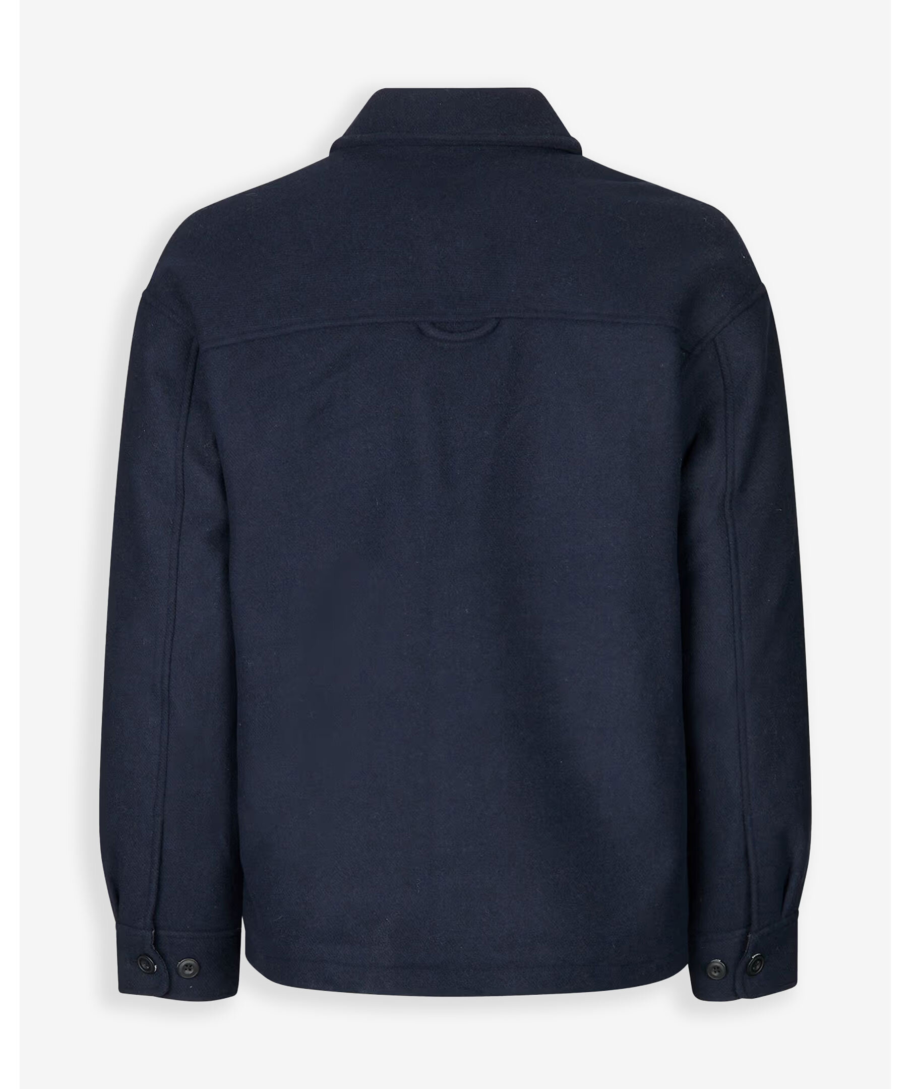 Mörkblå, tovad overshirt från Samsoe Samsoe. Overshirten stängs med knappar framtill och har två vinklade passpoalfickor samt två påsydda bröstfickor, spetsig krage och upphängningsögla i nacken. Vadderad med PrimaLoft® Classics Black. Helfodrad. Huvudmaterial tillverkat av en blandning av återvunnen polyester och ull. Denna produkt är GRS-certifierad. Varje steg i leveranskedjan har uppfyllt strikta sociala, miljömässiga och kemiska krav.
