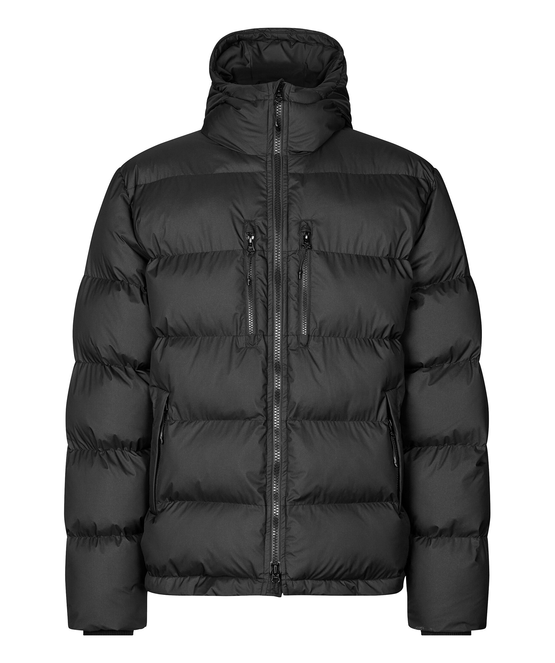 Svart pufferjacka från Samsoe Samsoe. Jackan stängs med tvåvägsdragkedja och har huva med dragsko, två sidfickor samt två vertikala bröstfickor med dragkedja, ribbstickade muddar, dragsko vid plaggslut samt ett logotypmärke på baksidan. Tillverkad i polyamid.