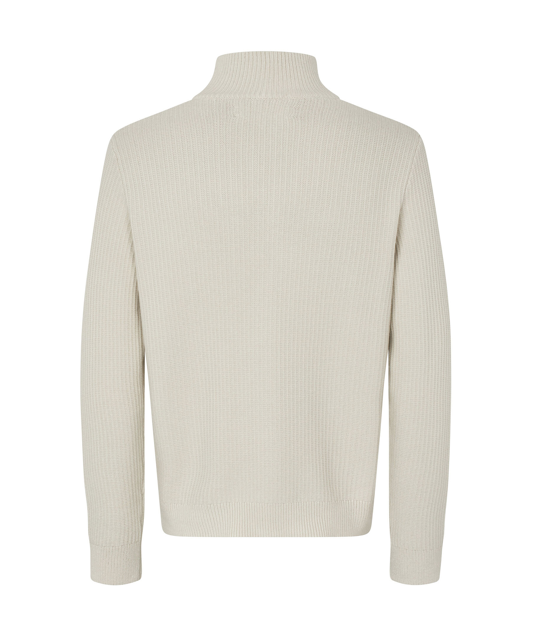 Krämvit cardigan från Samsoe Samsoe. Tröjan stängs med blixtlås framtill, är ribbstickad och har en högre krage. Mudd vid tröj- och ärmslut. Tillverkad av en viskos blandning.