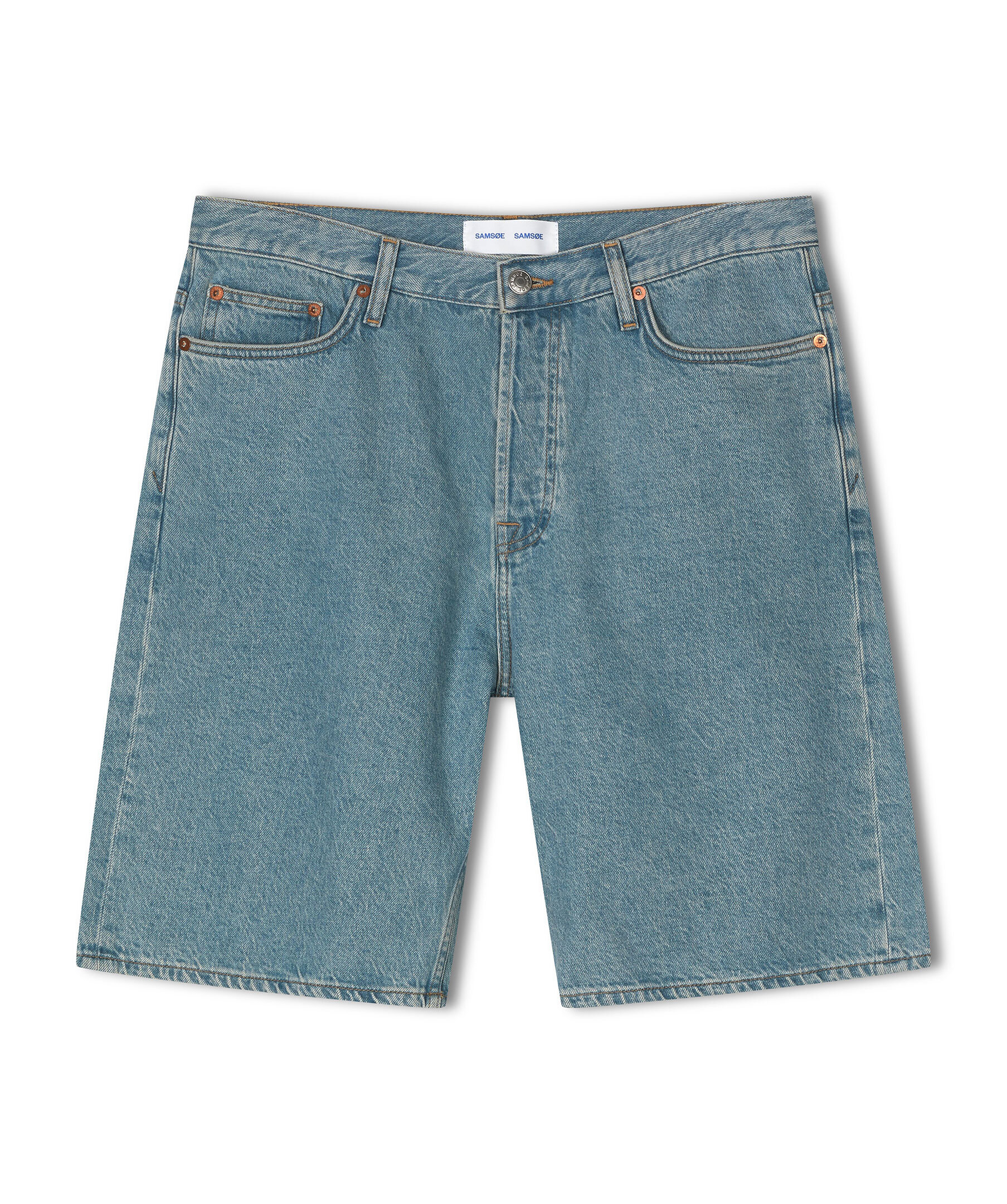 Ljusblåa denimshorts från Samsoe Samsoe. Shortsen har bälteshällor i midjan, femficksmodellen och knappknäppning i gylfen. Tillverkade i bomull.