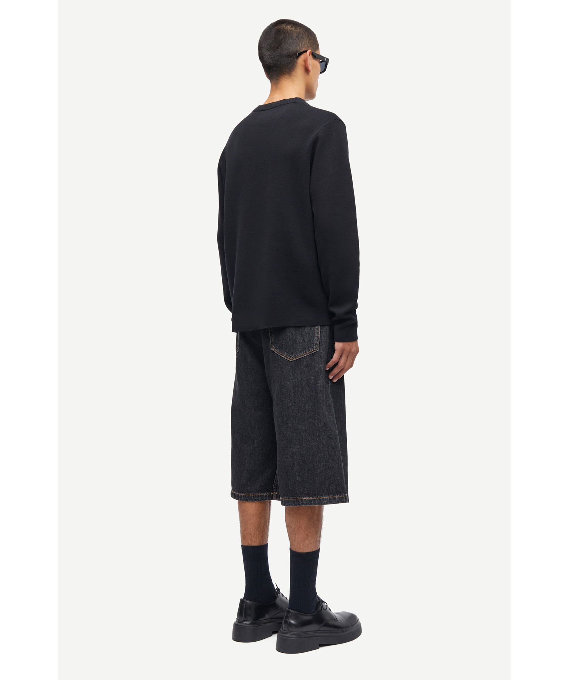 Svart pullover från Samsoe Samsoe. Tröjan har rundad halsringning och ribbstickade detaljer. Tillverkad i ekologisk bomull.
