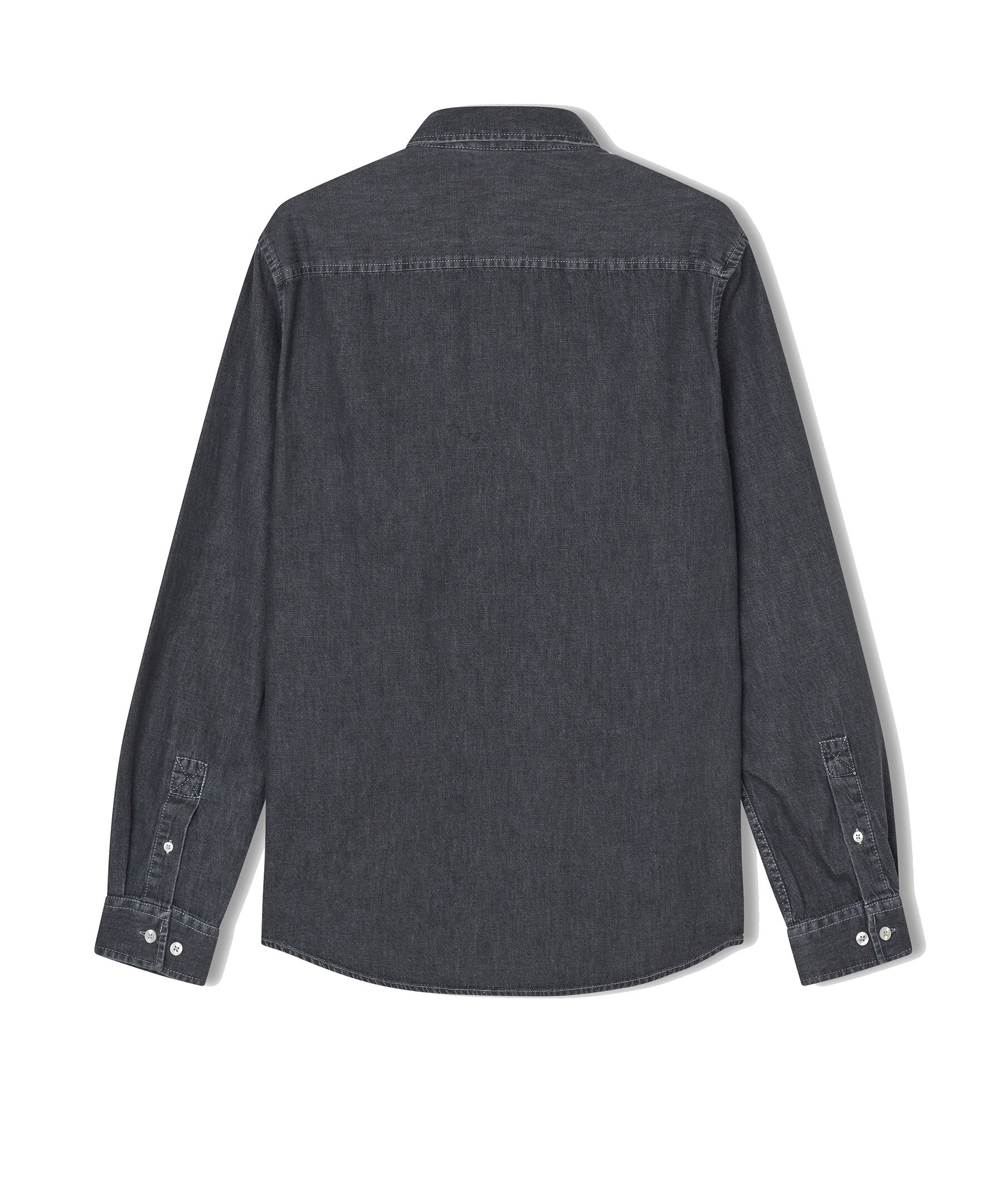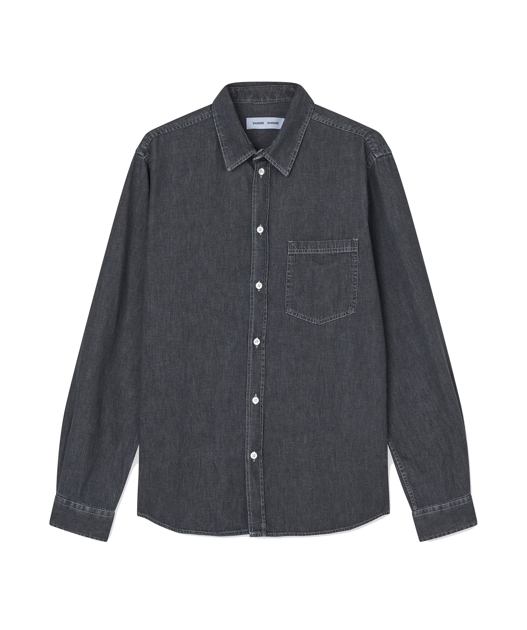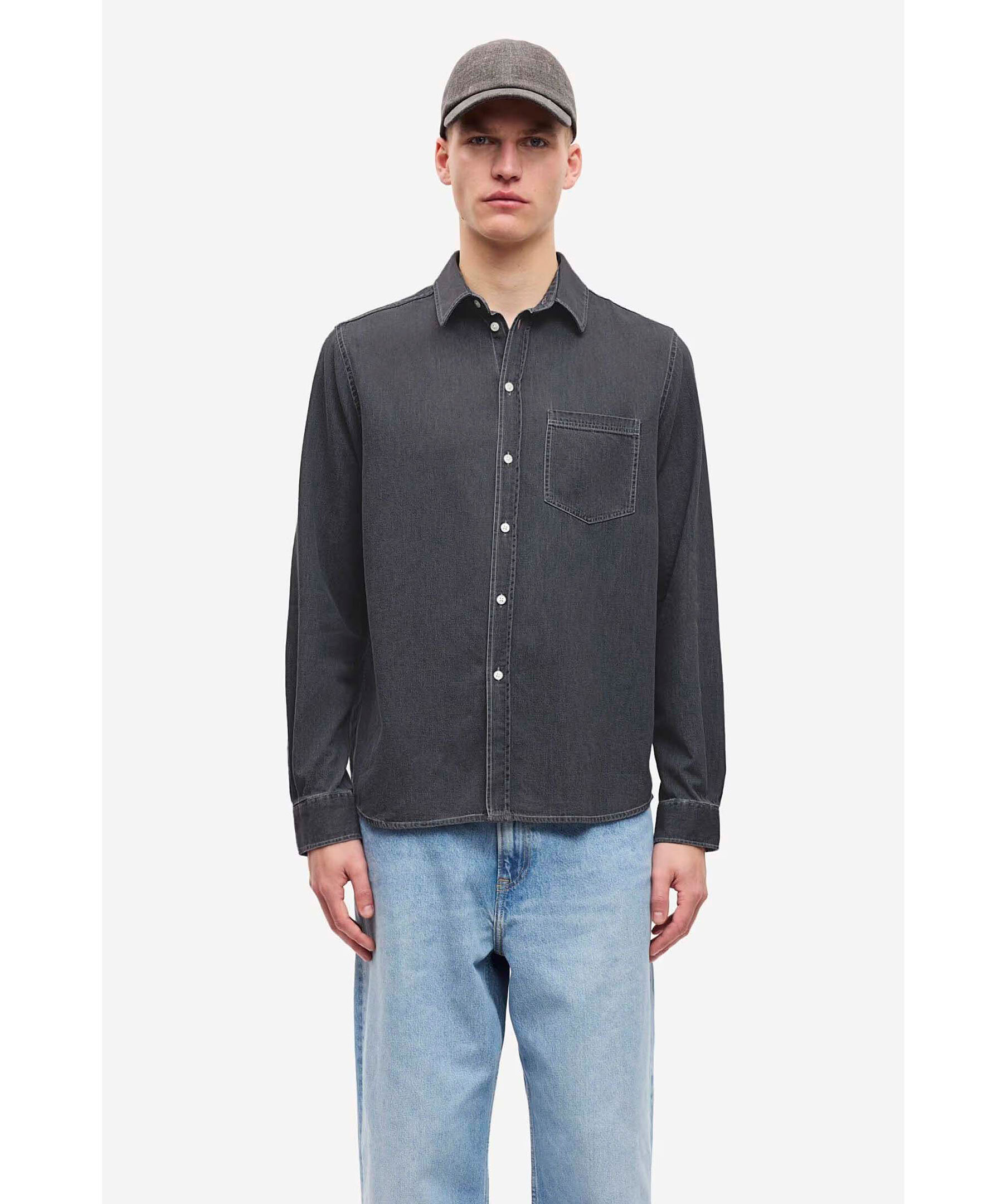 Mörkgrå jeansskjorta från Samsoe Samsoe. Stängs med knappar framtill och har en påsydd ficka på bröstet samt ärmslut med knäppning. Tillverkad i ekologisk bomull.