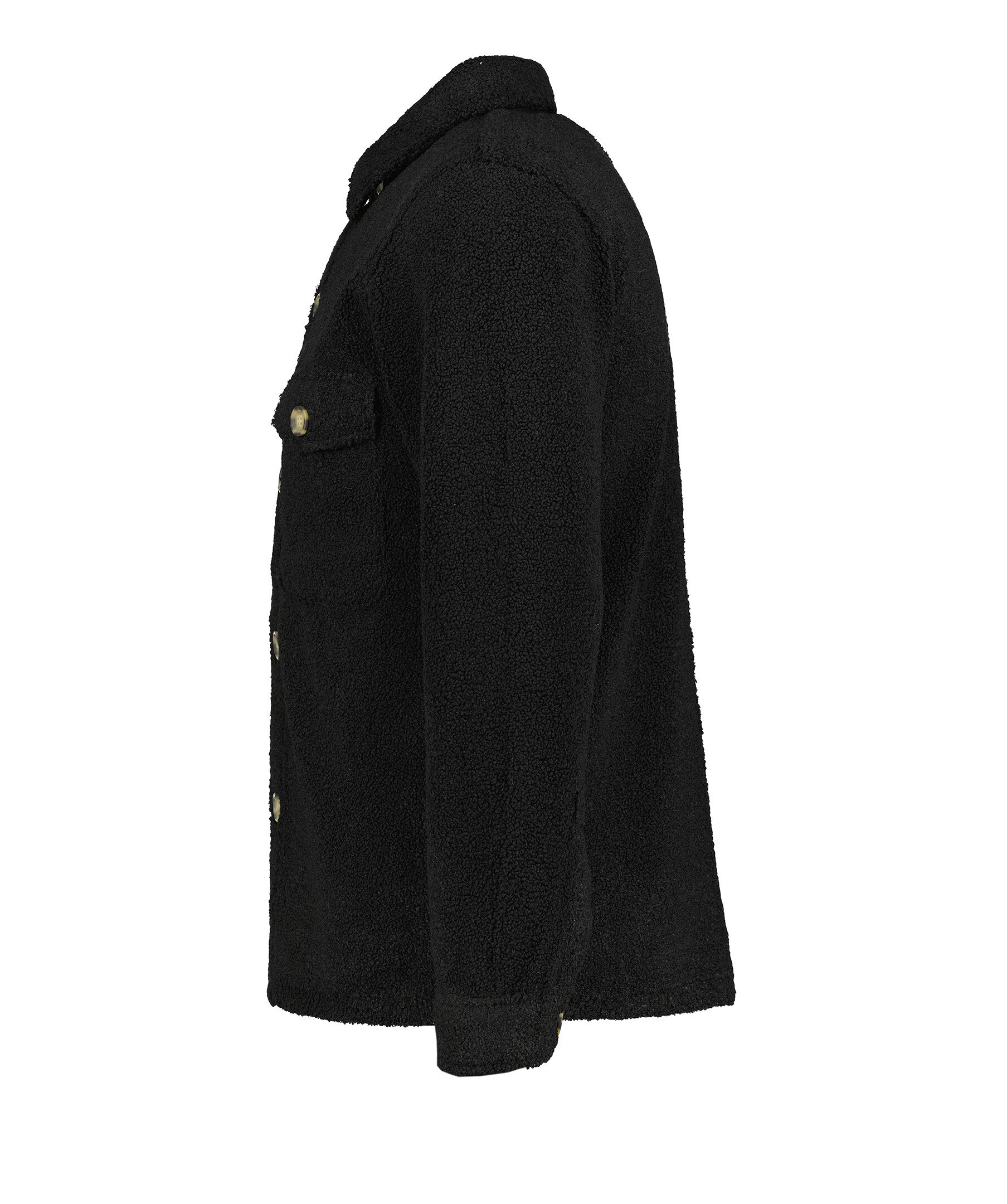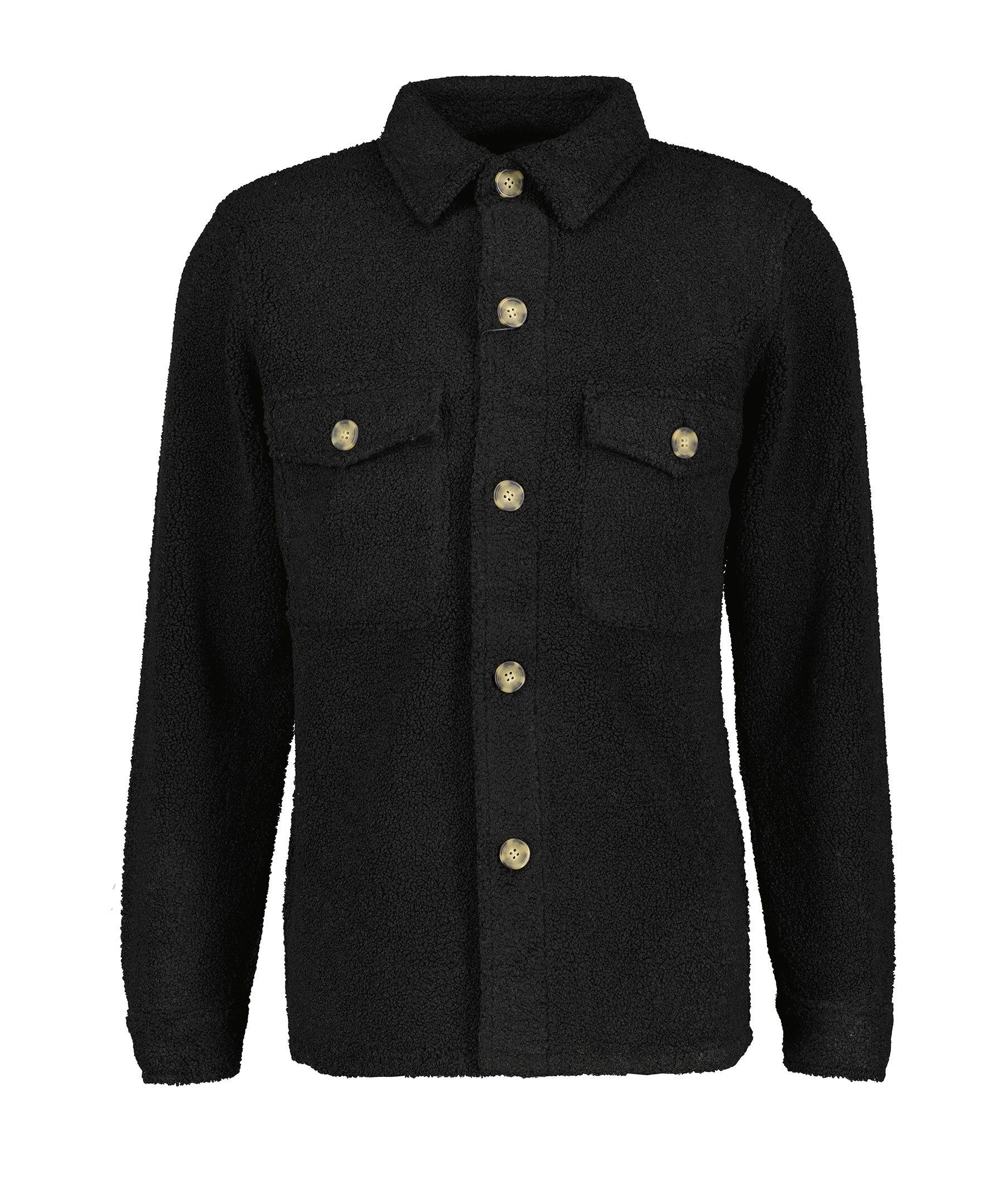 Svart, fluffig och mjuk overshirt från Sand. Overshirten stängs med knappar framtill och har två bröstfickor med lock och knapp. Tillverkad i polyester.