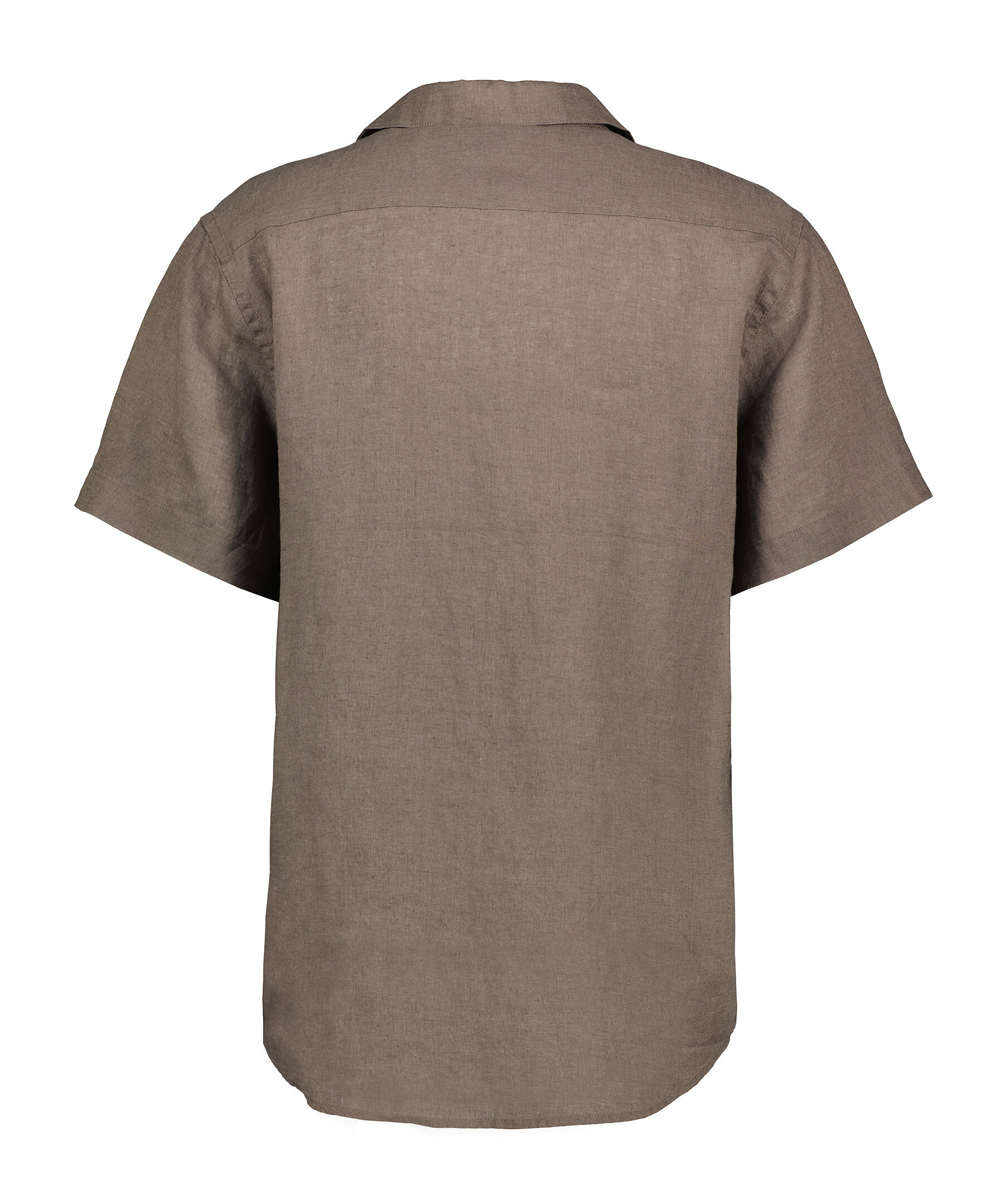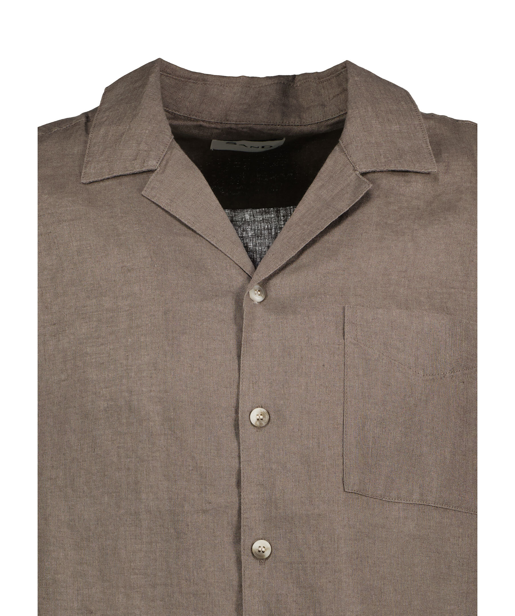 Brun linneskjorta från Sand. Skjortan är kortärmad och har en bröstficka, har rundat tröjslut bak, är tillverkad av 100% linne.