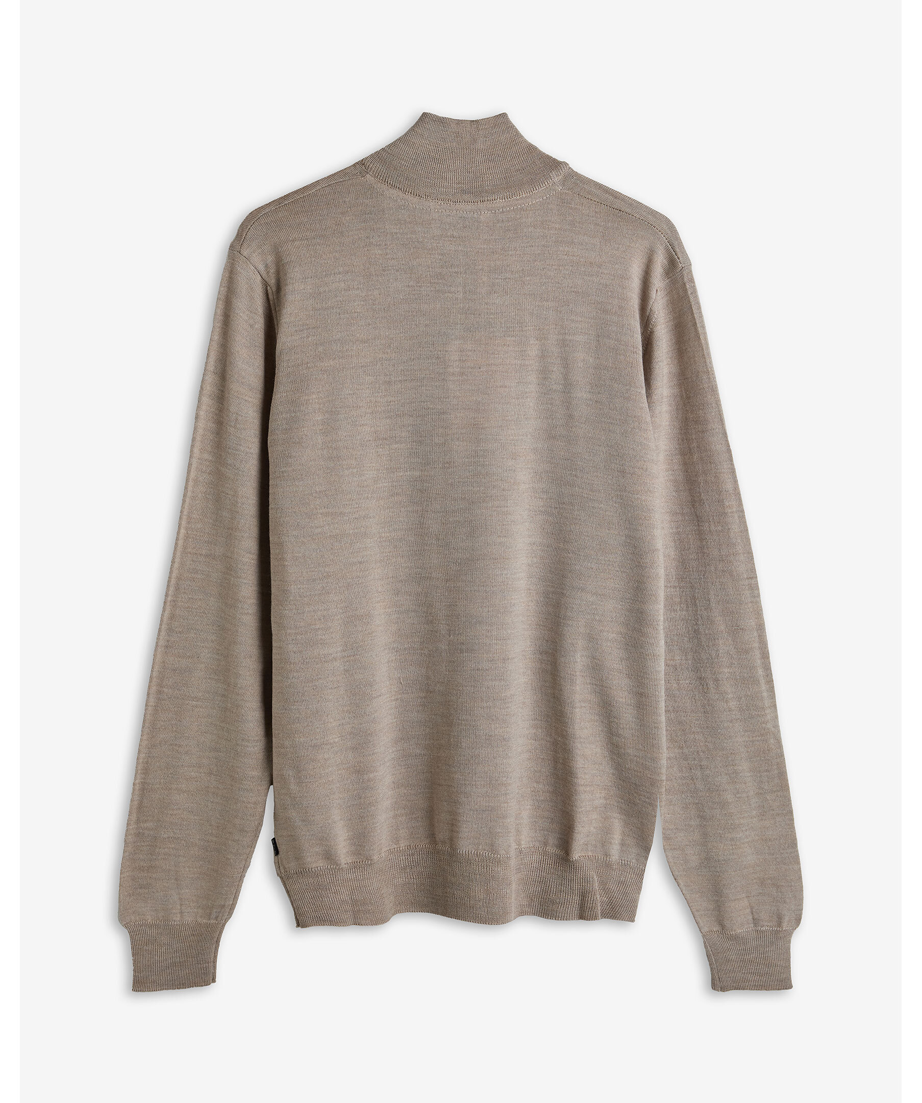 Sandfärgad långärmad tröja från SAND, tillverkad i 100% extra fin merinoull från Zegna Baruffa. Tröjan har hög hals, ribbade detaljer vid hals, ärmslut och nederkant samt en modern passform. Stickad i 12 gauge, vilket ger en lätt och smidig känsla. Designad och tillverkad i Italien.