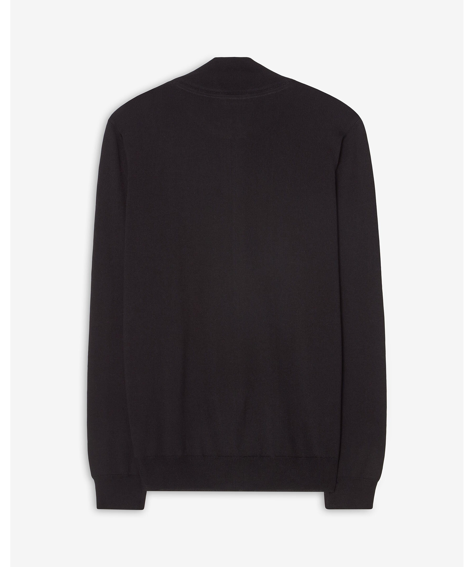 Mörkbrun stickad tröja från Sand. Tröjan stängs med dragkedja och har ribbstickade muddar. Gjord i en varm ullblandning. Hög krage.
