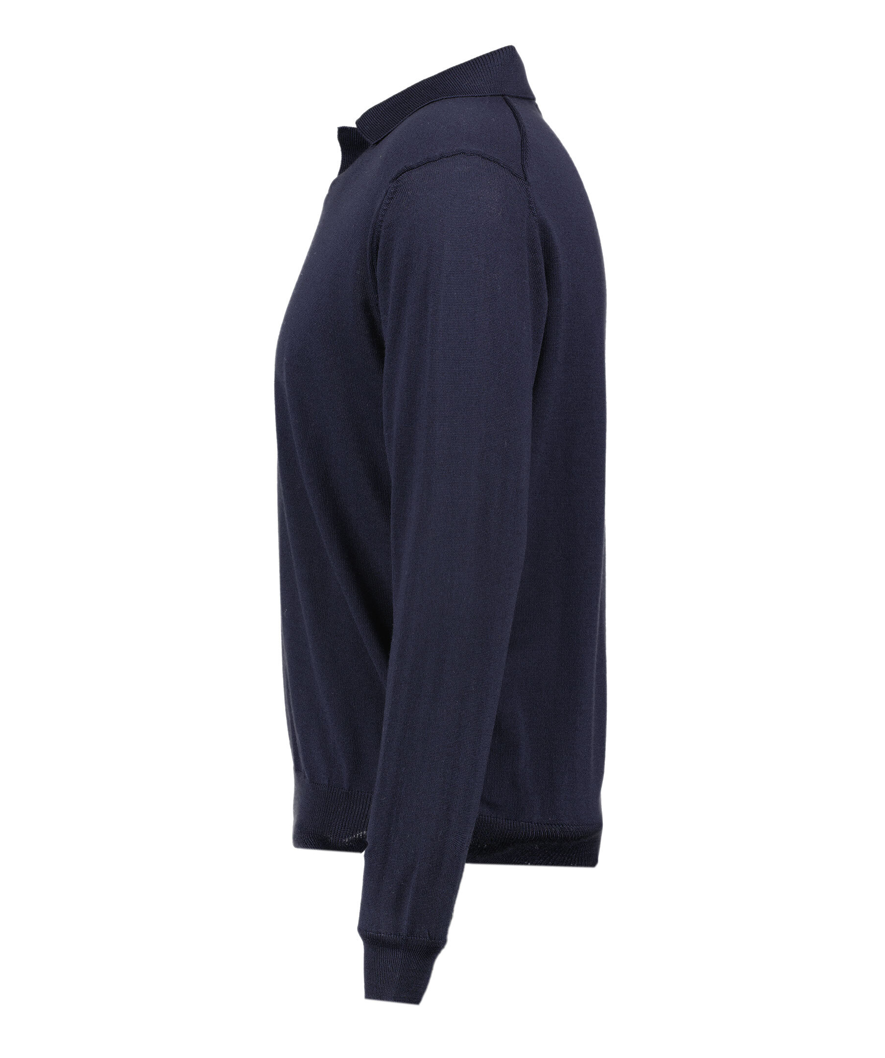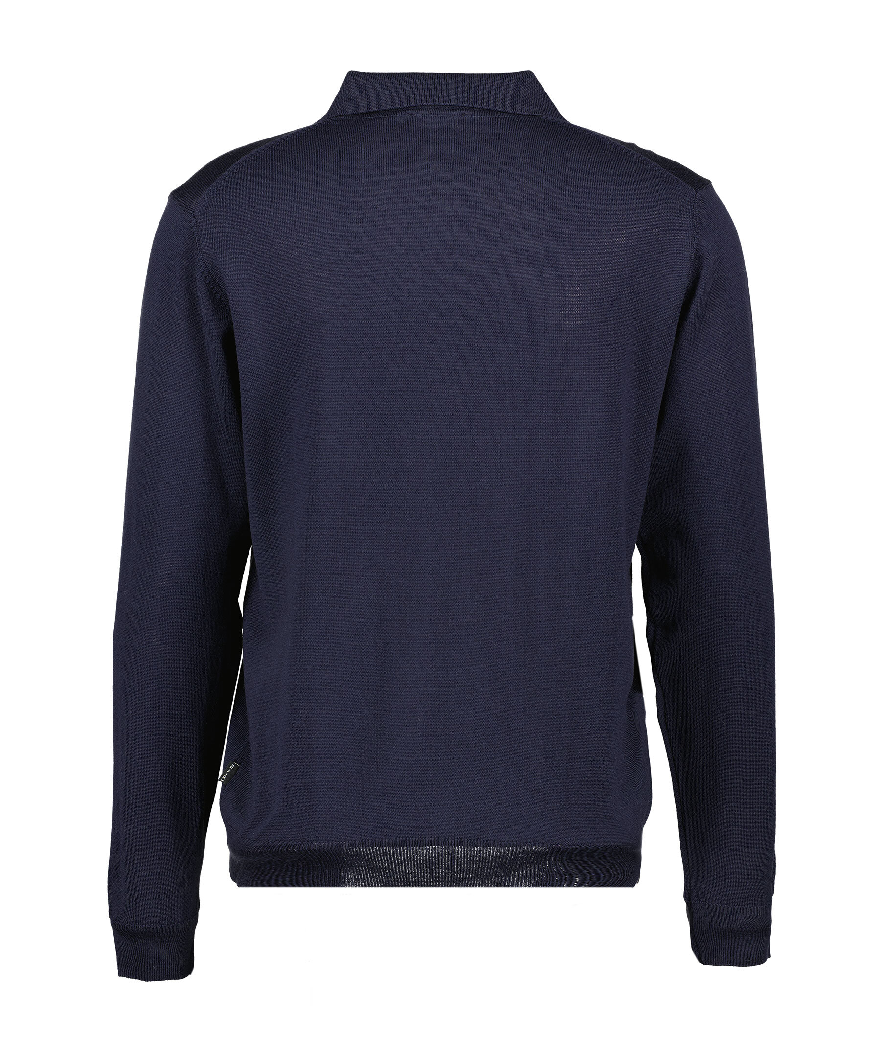 Marinblå finstickad pike i en långärmad modell från Sand. Piken har ribbstickade detaljer vid ärm- och tröjslut. Tillverkad av 100% merinoull.