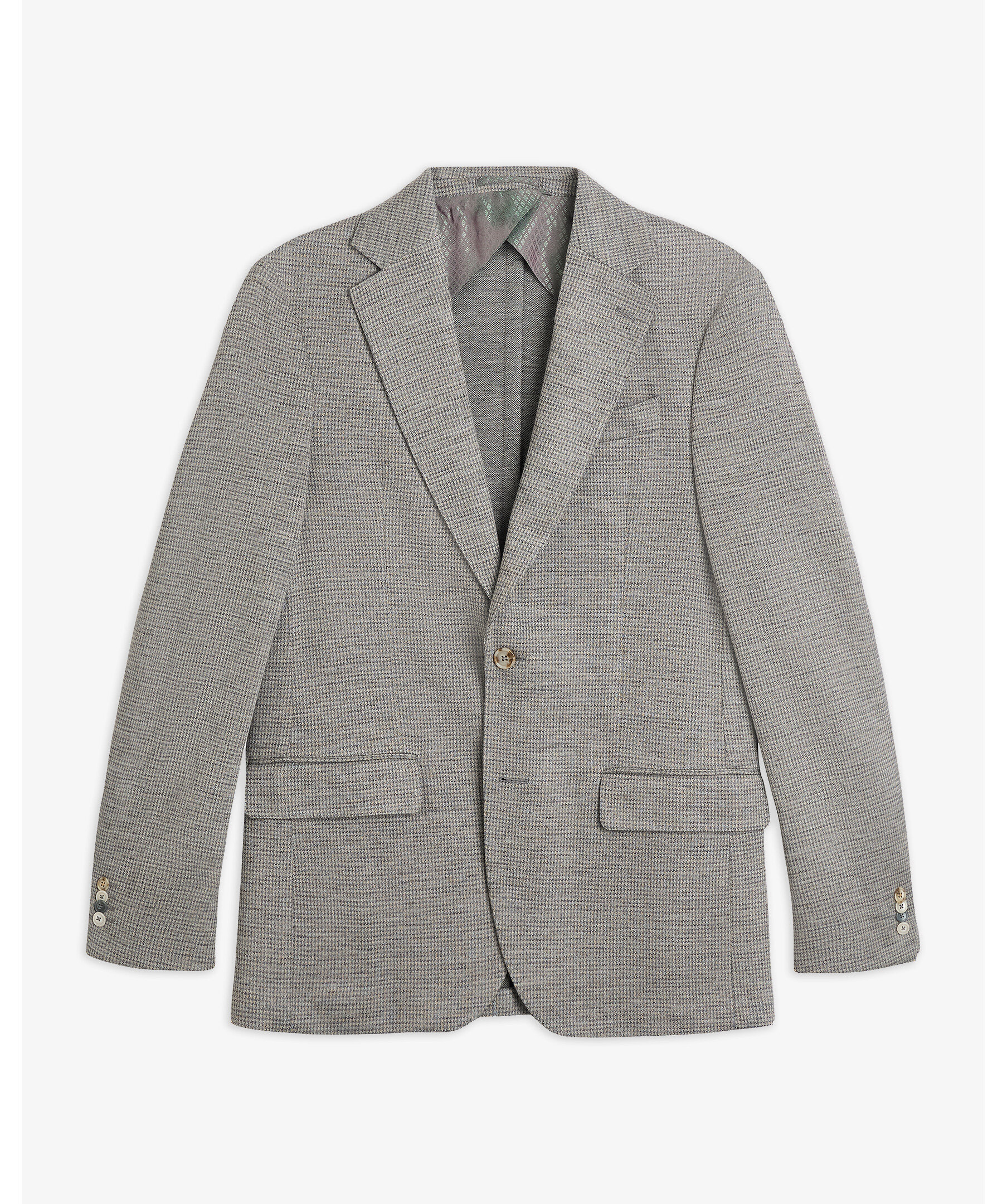 Grå kavaj från SAND. Kavajen har en tidlös design med klassiskt slag, lätt konstruerade axlar och AMF-stygn, samt bröstficka och fickor med lock för funktionell elegans. Den är halvfodrad och tillverkad i fin italiensk 100 % virgin wool som ger naturlig komfort och ett sofistikerat uttryck – perfekt för både kontorsstil och uppklädda tillfällen.