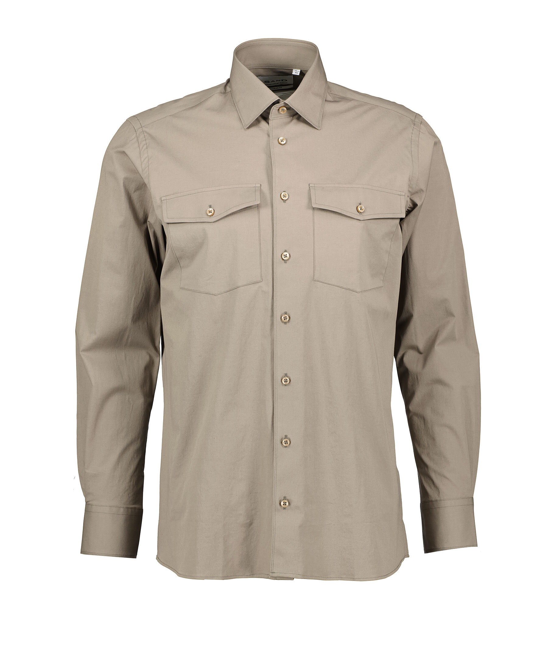 Olivgrön skjorta från Sand. Skjortan har två bröstfickor med knapp. Rundad fåll bak där den är något längre än fram. Manschetter med knappar och är tillverkad av en bomullsblandning.