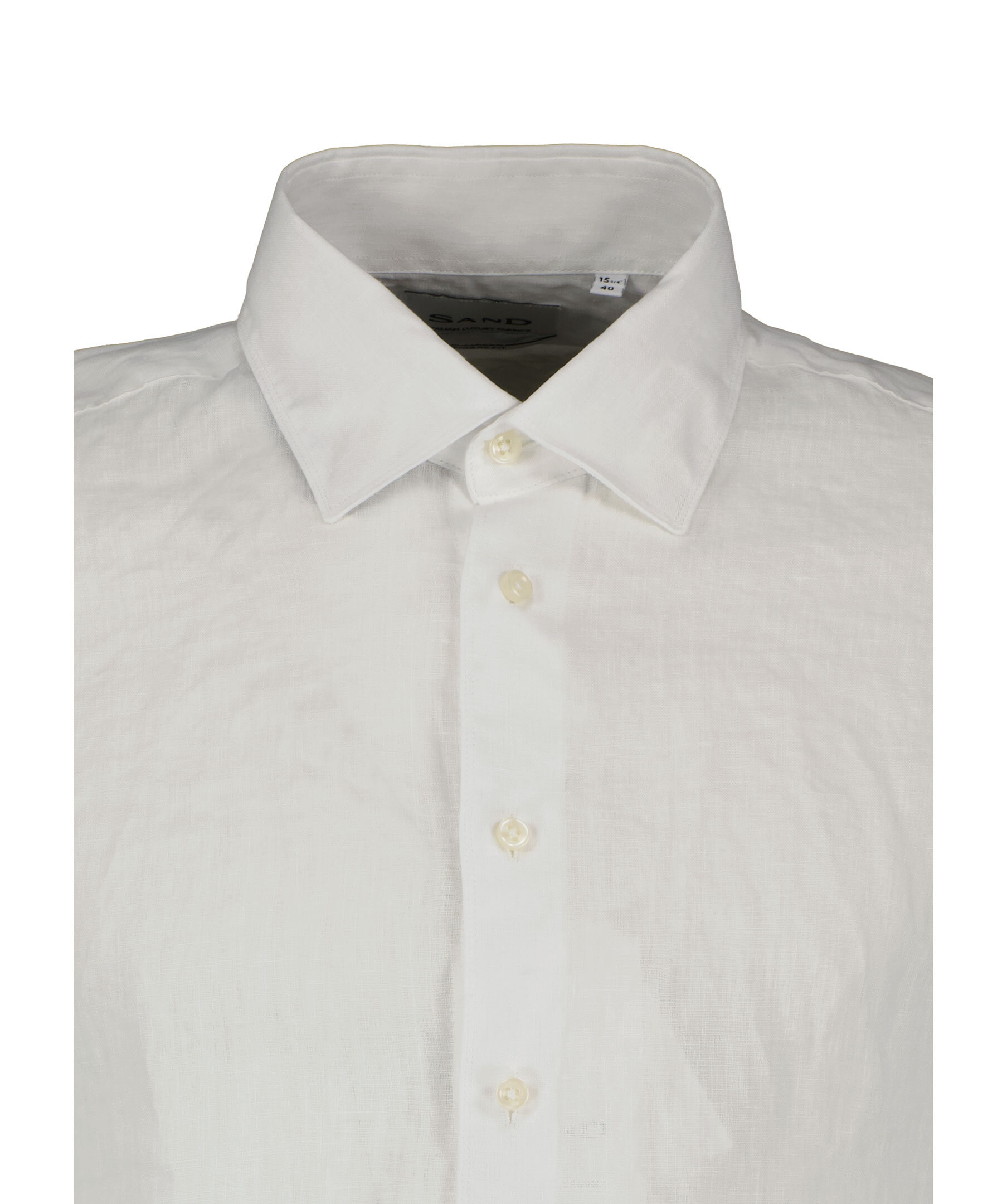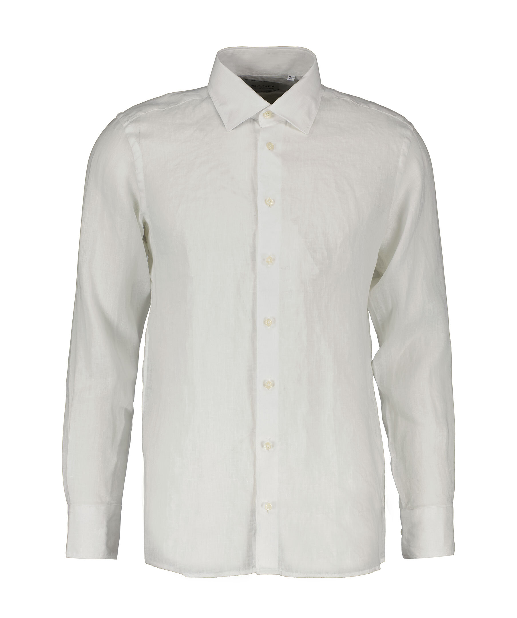 Vit skjorta från Sand. Skjortan är längre baktill där den har ett rundat avslut, tillverkad av 100% lin.