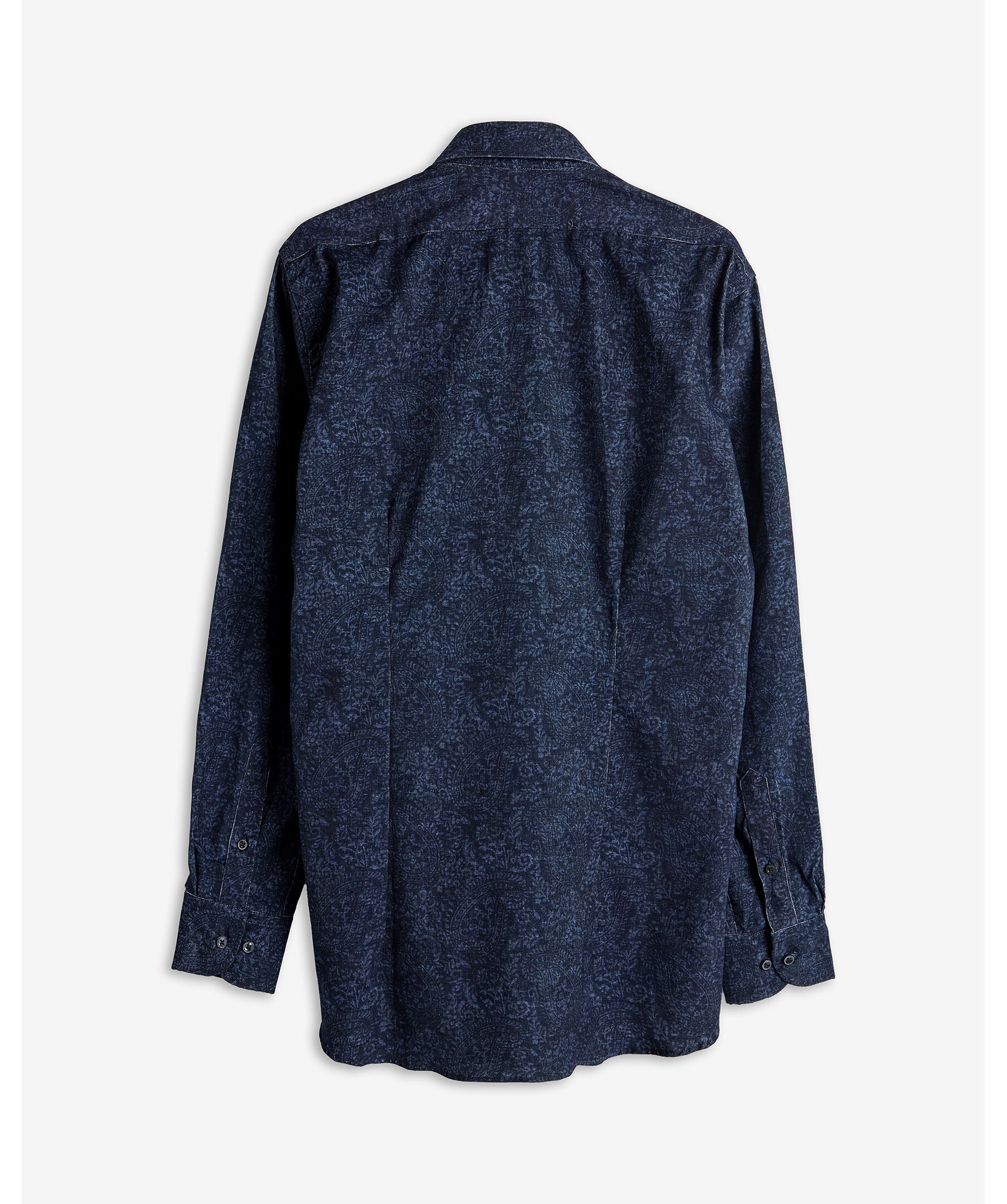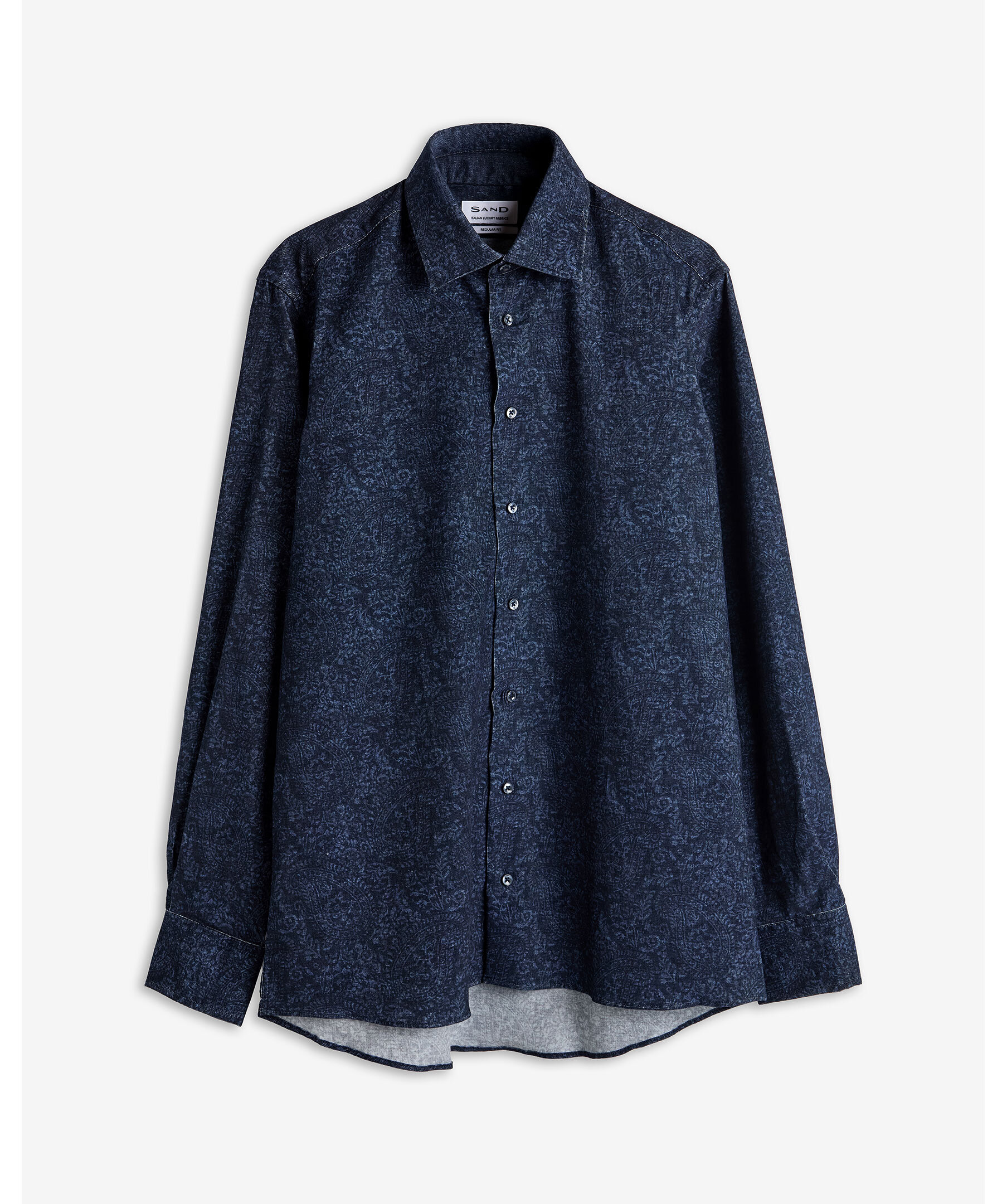 Blå skjorta med vagt paisley mönster från SAND tillverkad i mjuk, borstad fin twill från Italien. Skjortan har en spetsig krage, två veck bak för bättre passform och justerbar enkelmanschett. Den är vävd i melerat garn och har en lätt borstad yta för extra komfort. Ett stilrent och mångsidigt plagg som passar både till vardag och mer uppklädda tillfällen.