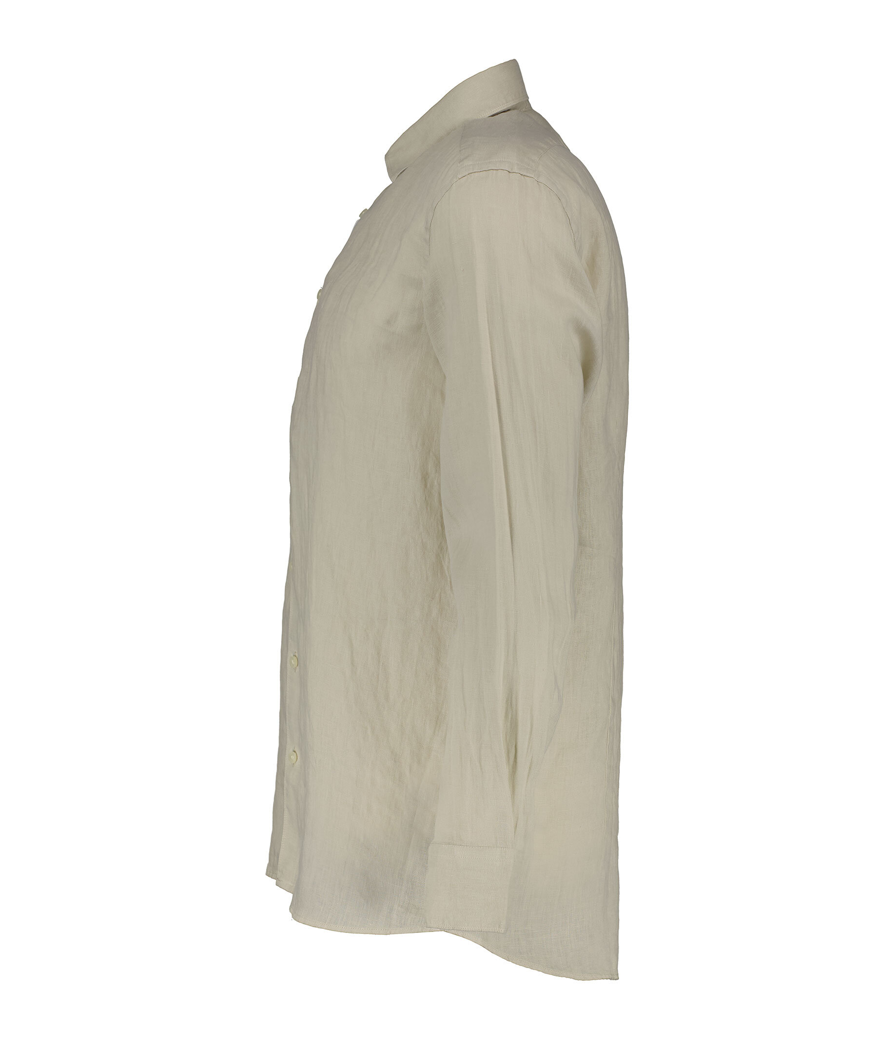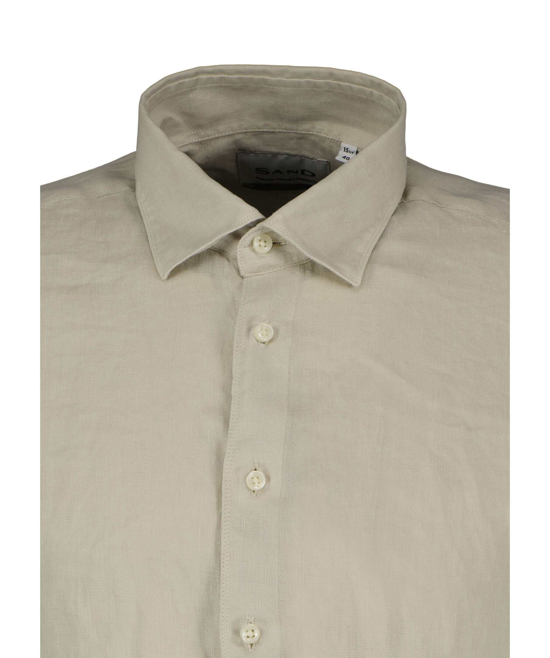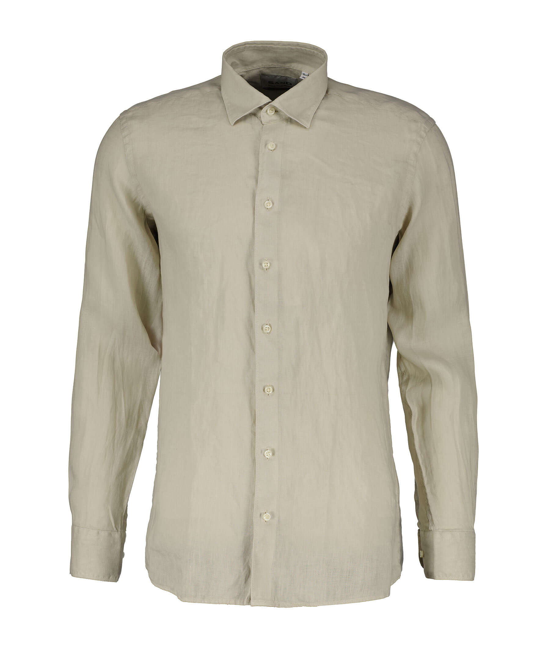 Beige skjorta från Sand. Skjortan är längre baktill där den har ett rundat avslut, tillverkad av 100% lin.