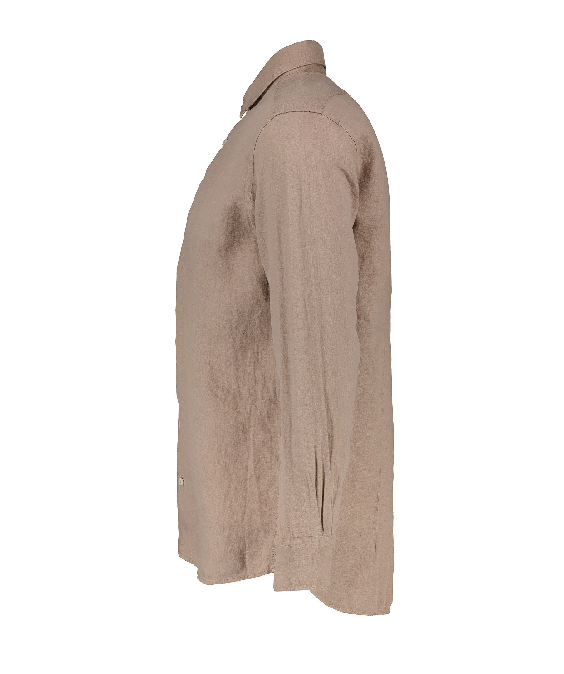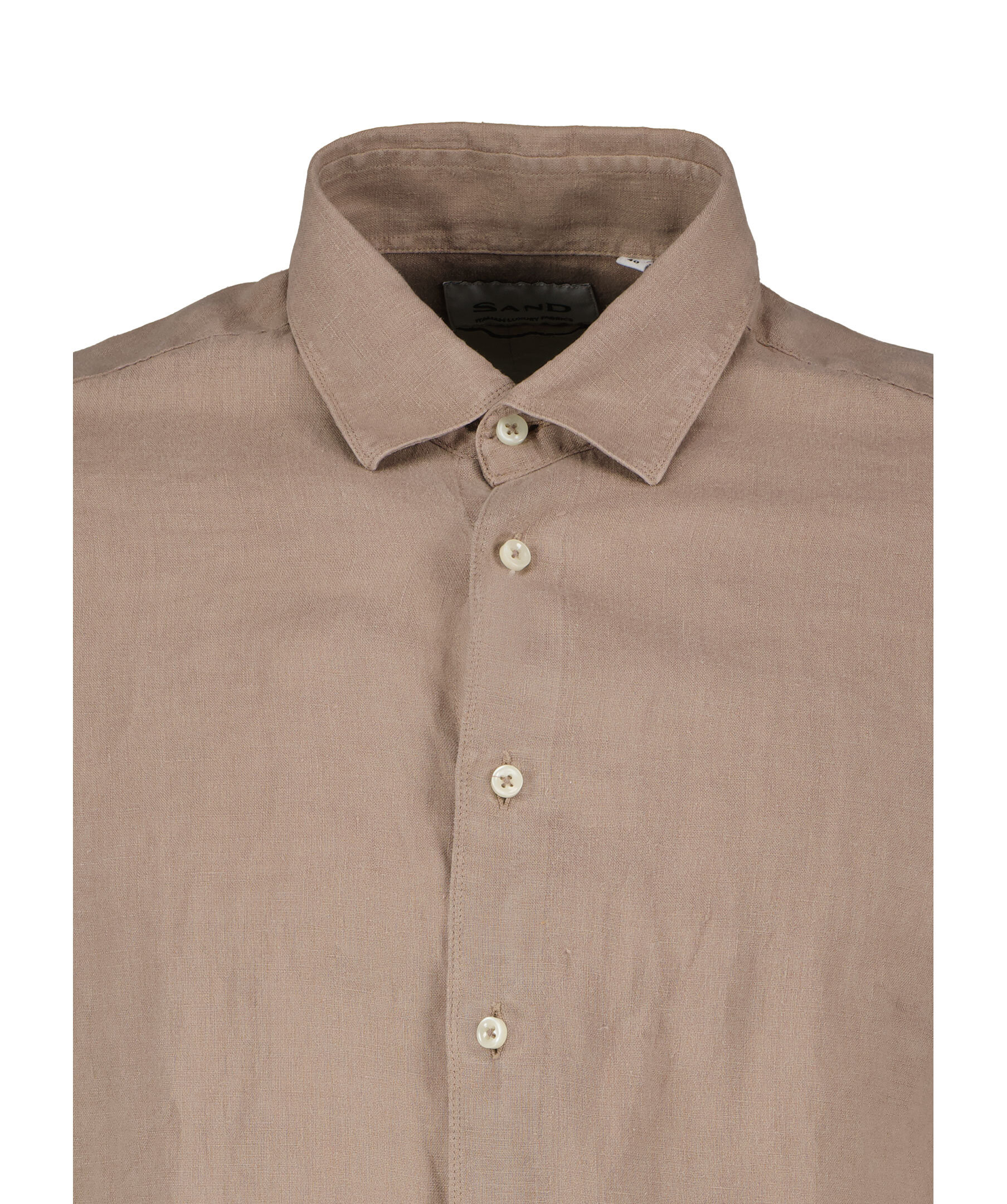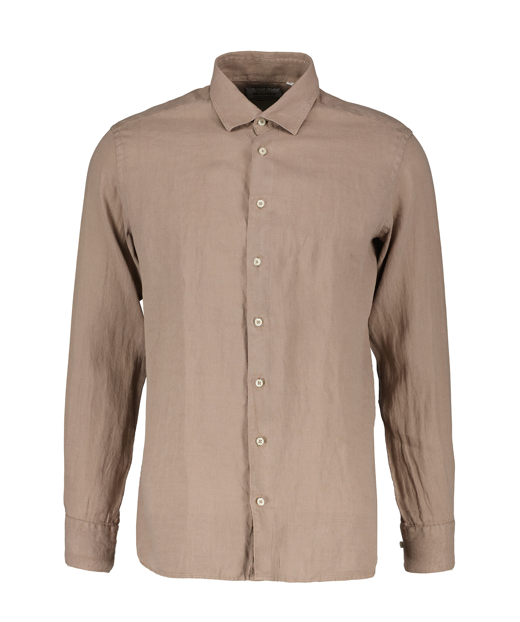 Brun skjorta från Sand. Skjortan är längre baktill där den har ett rundat avslut, tillverkad av 100% lin.