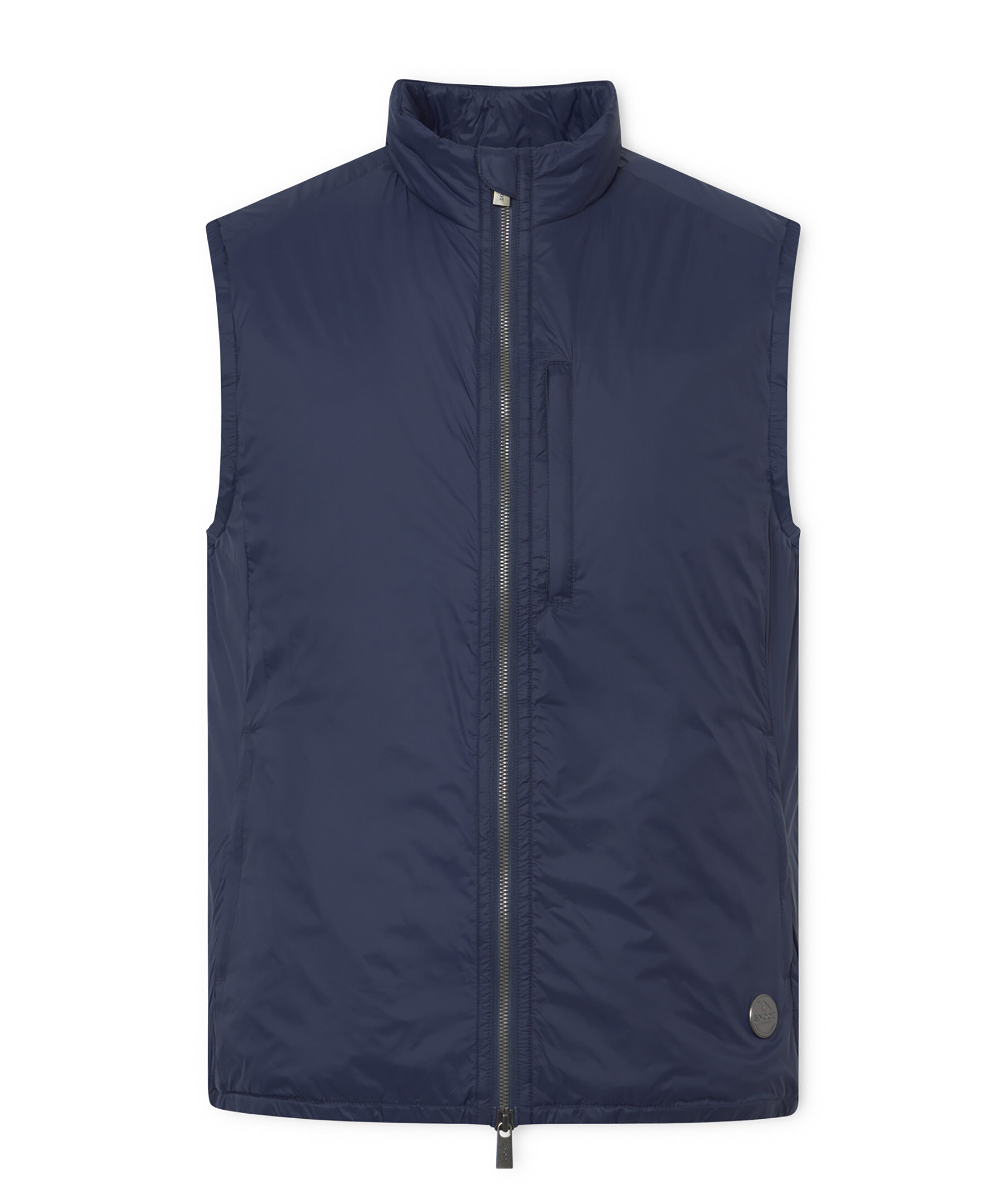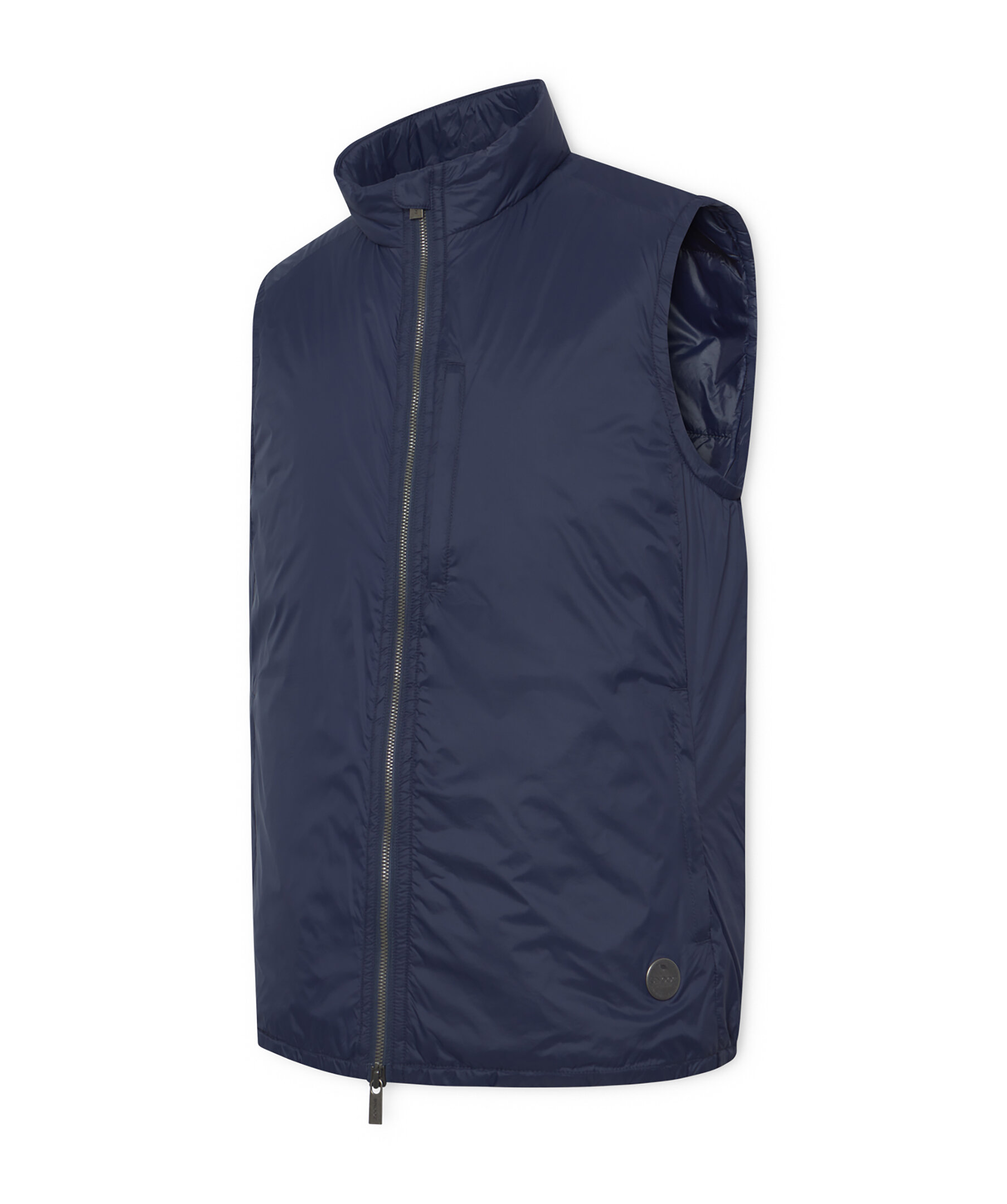 Mörkblå väst från Snoot med logga i metall. Stängs med dragkedja framtill och har två sidfickor med dragkedja. Tillverkad i polyamid med polyesterfyllning.