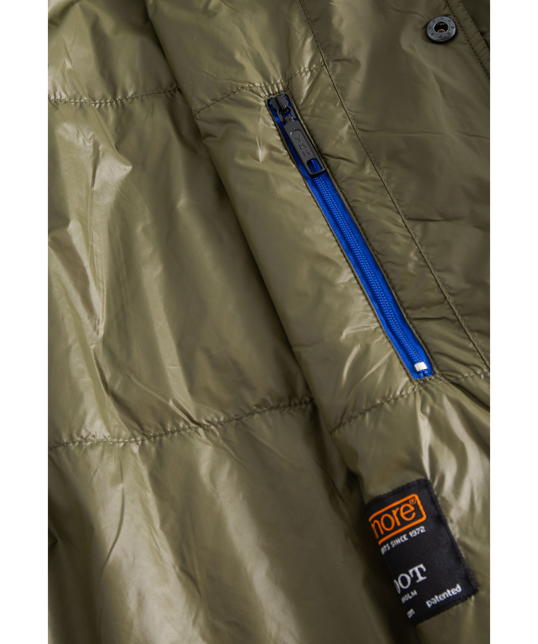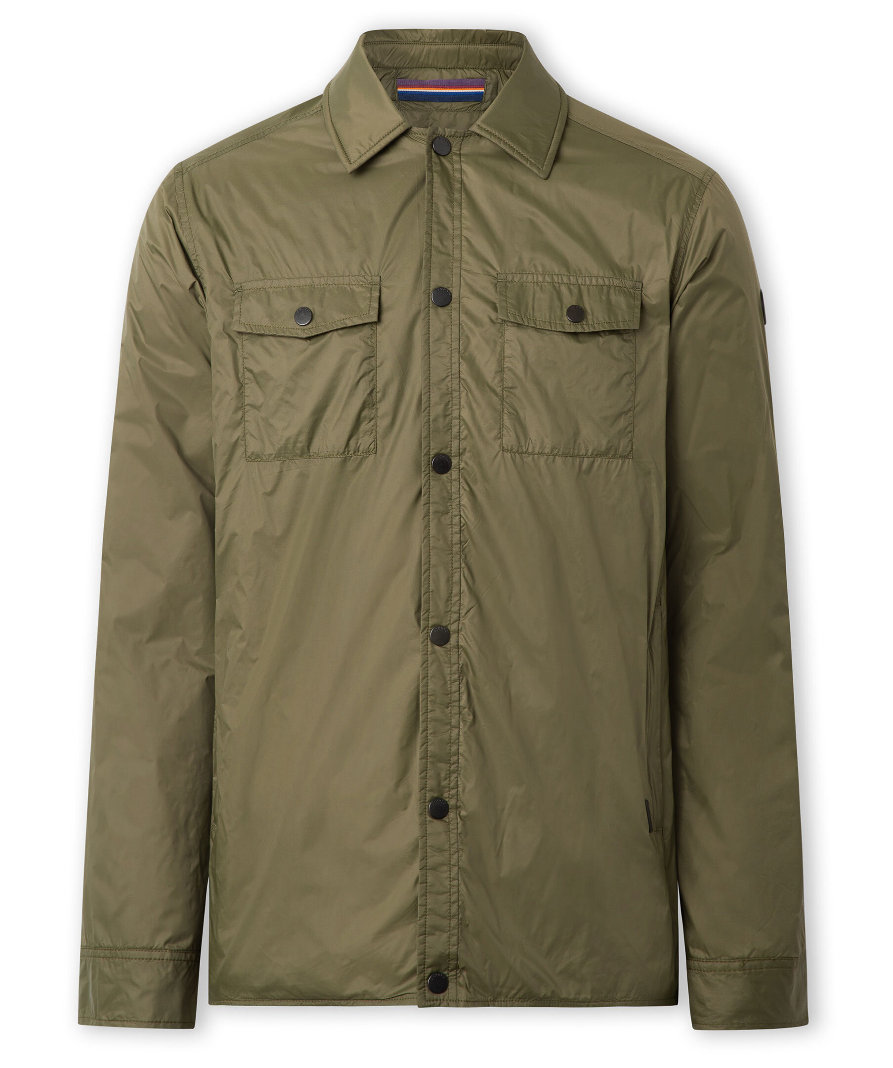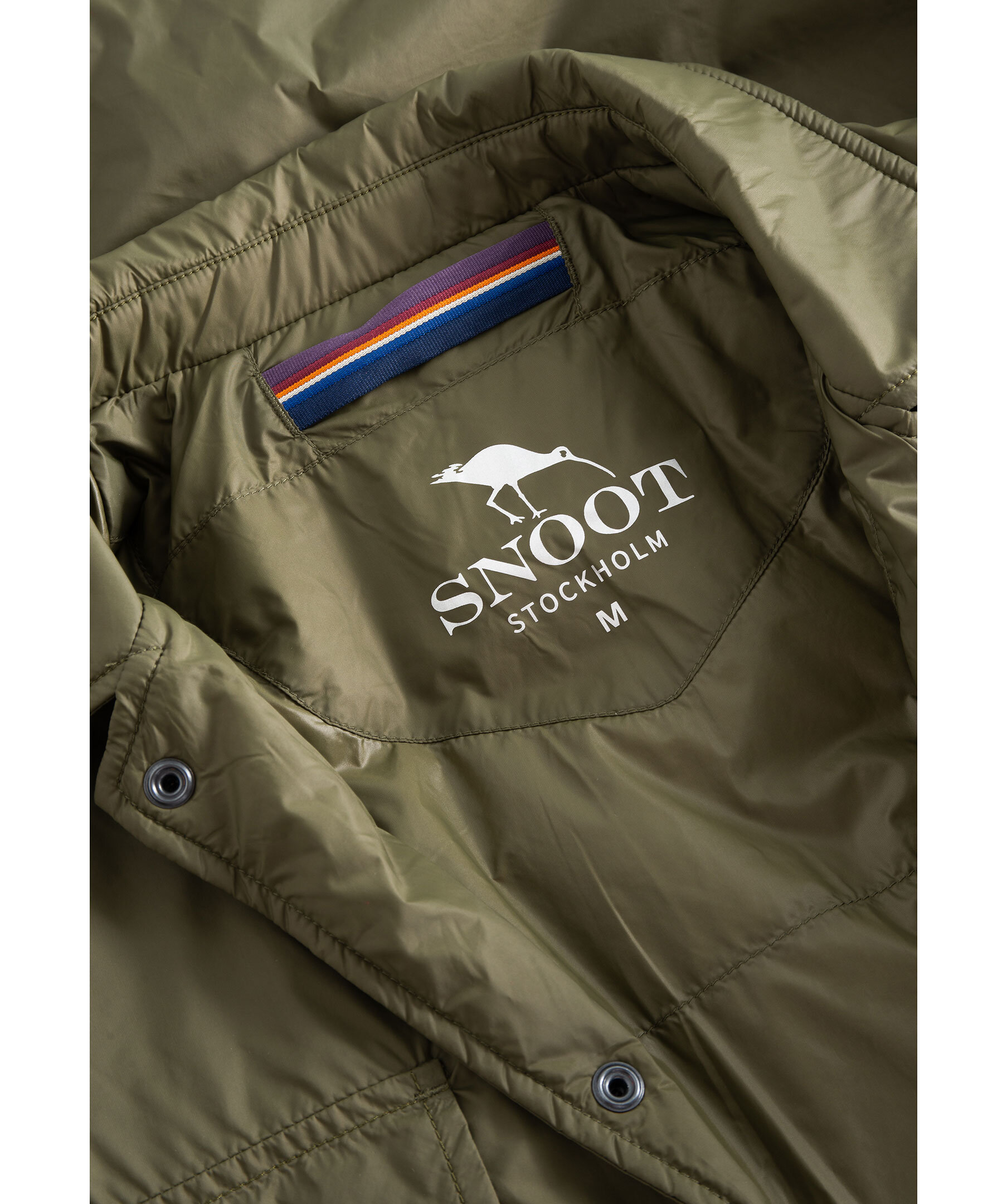 Grön skjortjacka från Snoot. Tillverkad i syntet med thermore fyllning. Bröstfickor, klassisk krage, svarta knappar samt logga på vänster ärm.