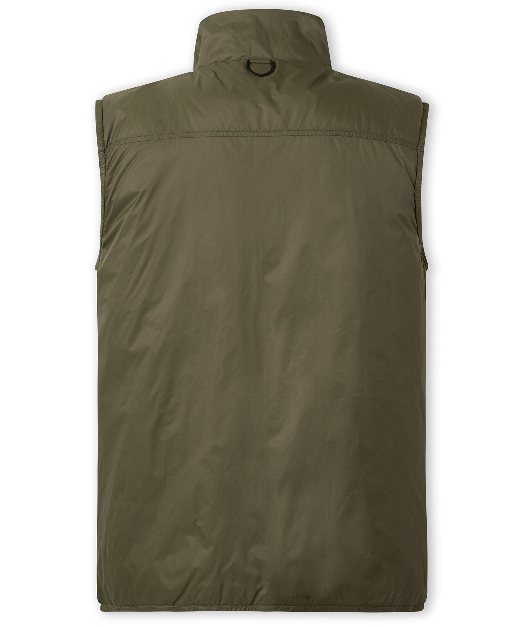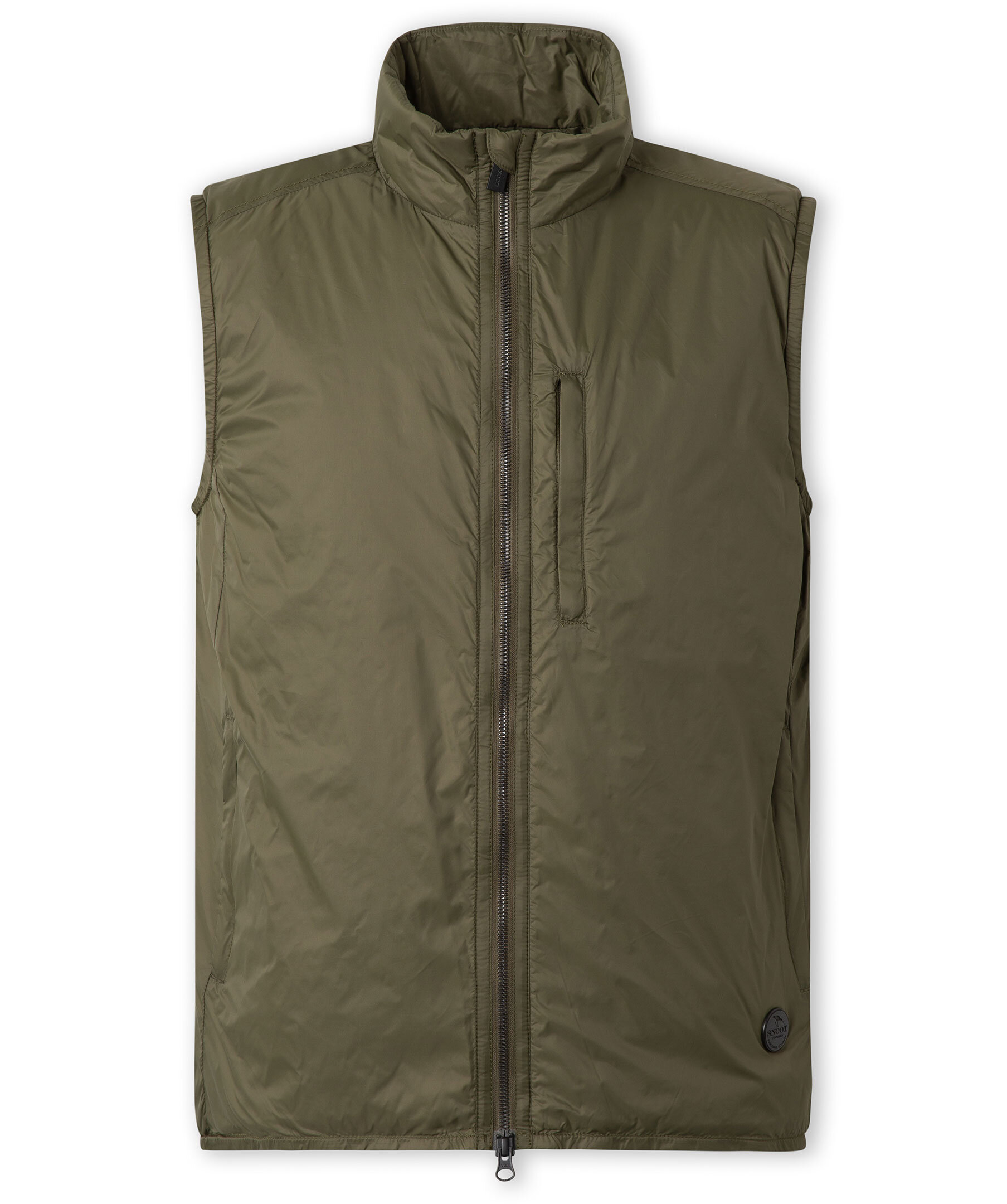 Grön lättviktsväst i klassisk passform från Snoot. Tillverkad i syntet med thermore fyllning. En ficka på bröstet, två snedställda fickor fram, logotyp i nederkant, hög krage.