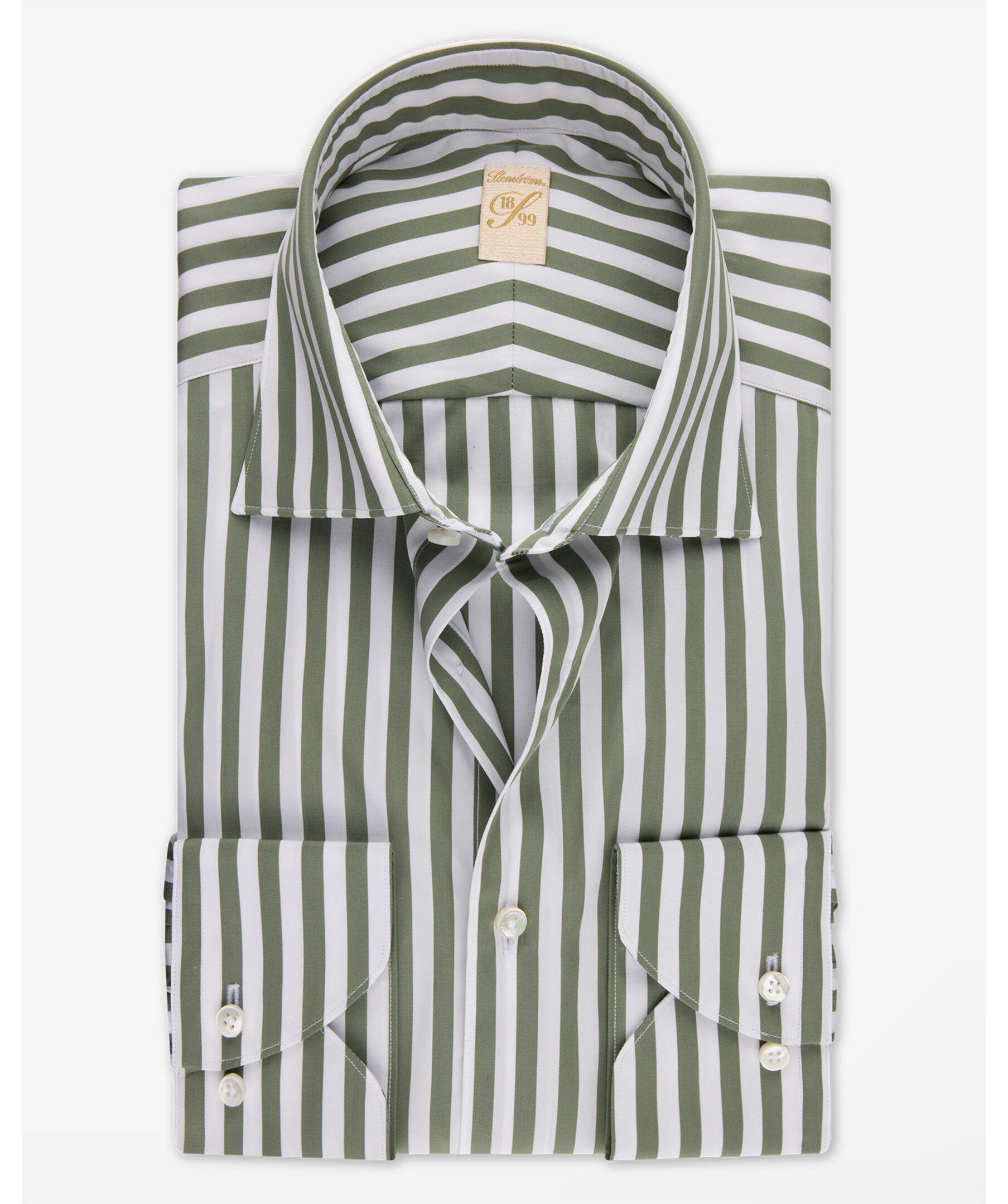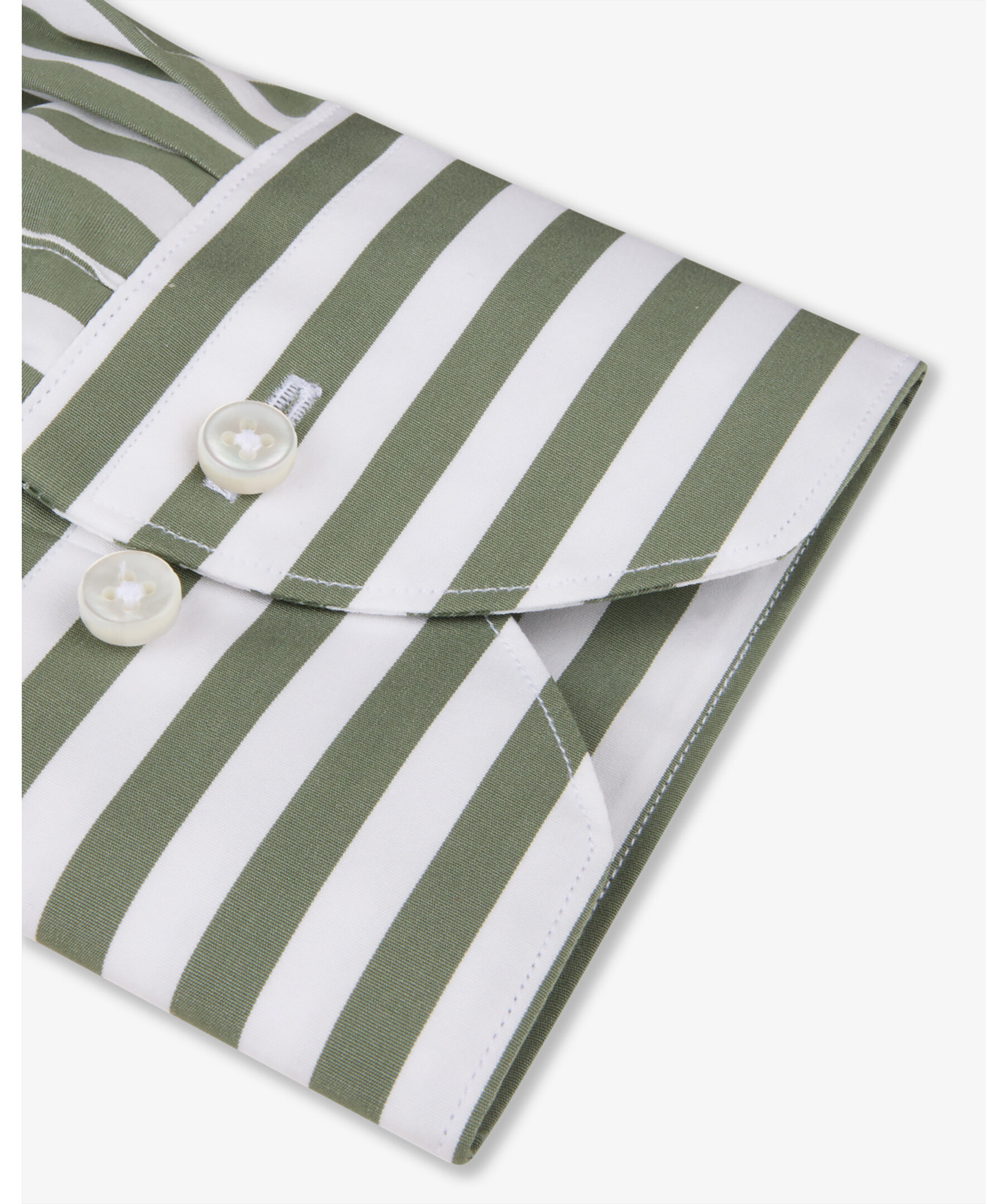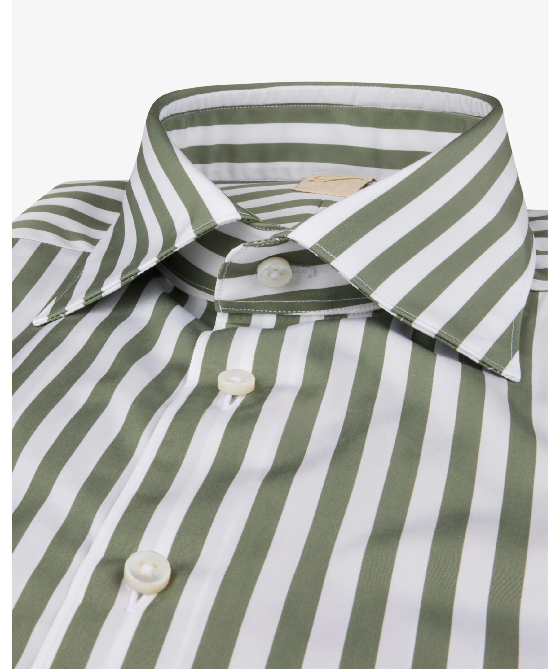 Grönrandig twillskjorta från Stenströms tillverkad av twofold bomull. Skjortan har pärlemorknappar, enkla manschetter och en cut away krage.