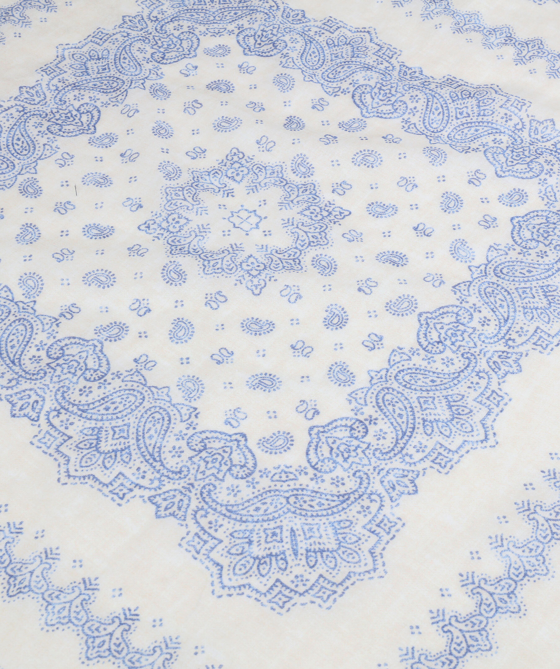 Den ultimata accessoaren till sommaren. Bandanan är gjord av lätt bomull med ett klassiskt paisley- och medaljongmönster i ljusblått på en vit bas. Vi föreslår att du bär den runt halsen och knyter en knut framtill. Stoppa in ändarna i en matchande skjorta.