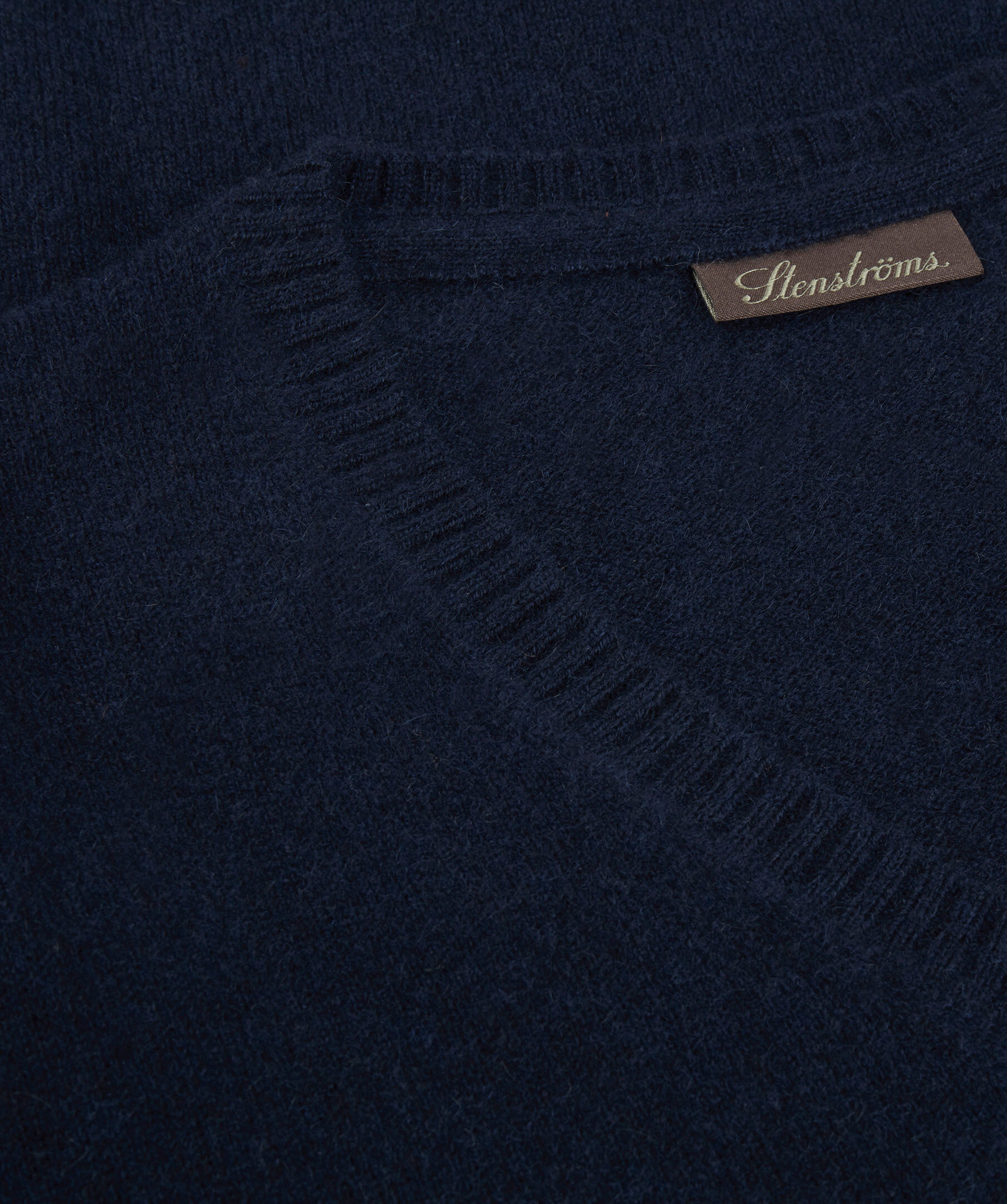 Melerad tröja i kashmir från Stenströms. Ribbstickad hals, ärmslut och plaggslut.