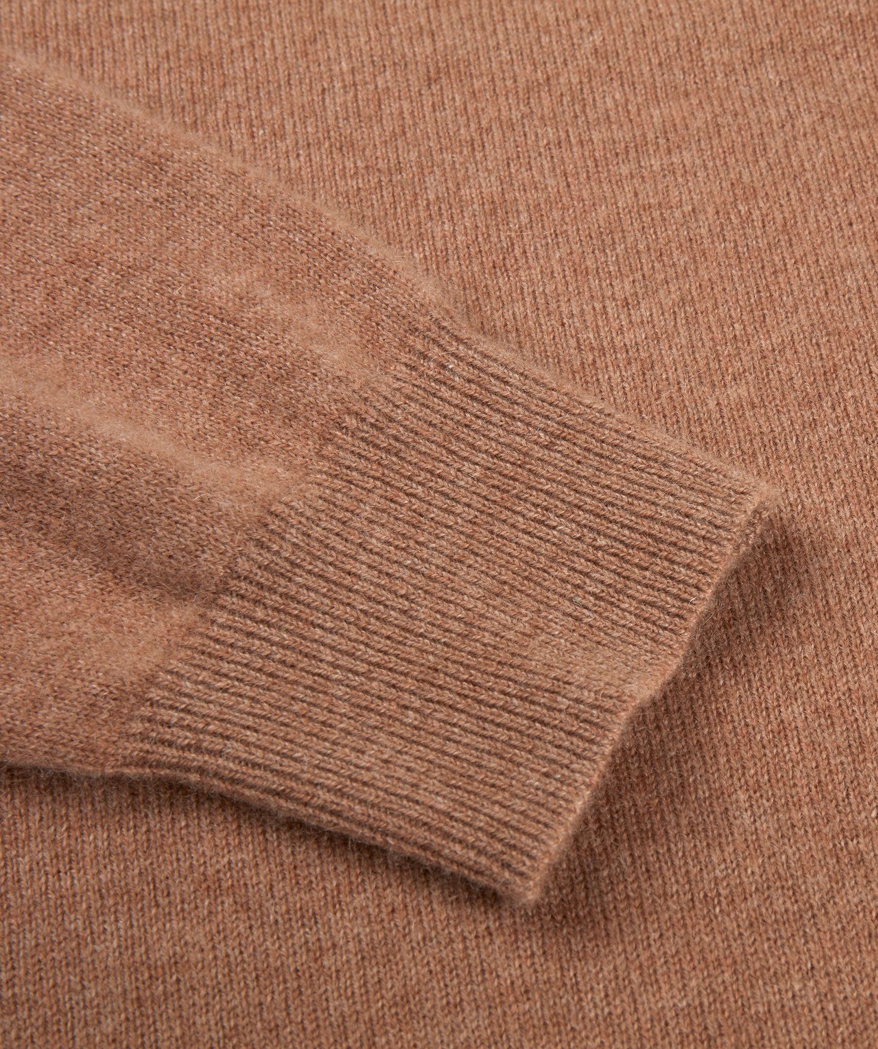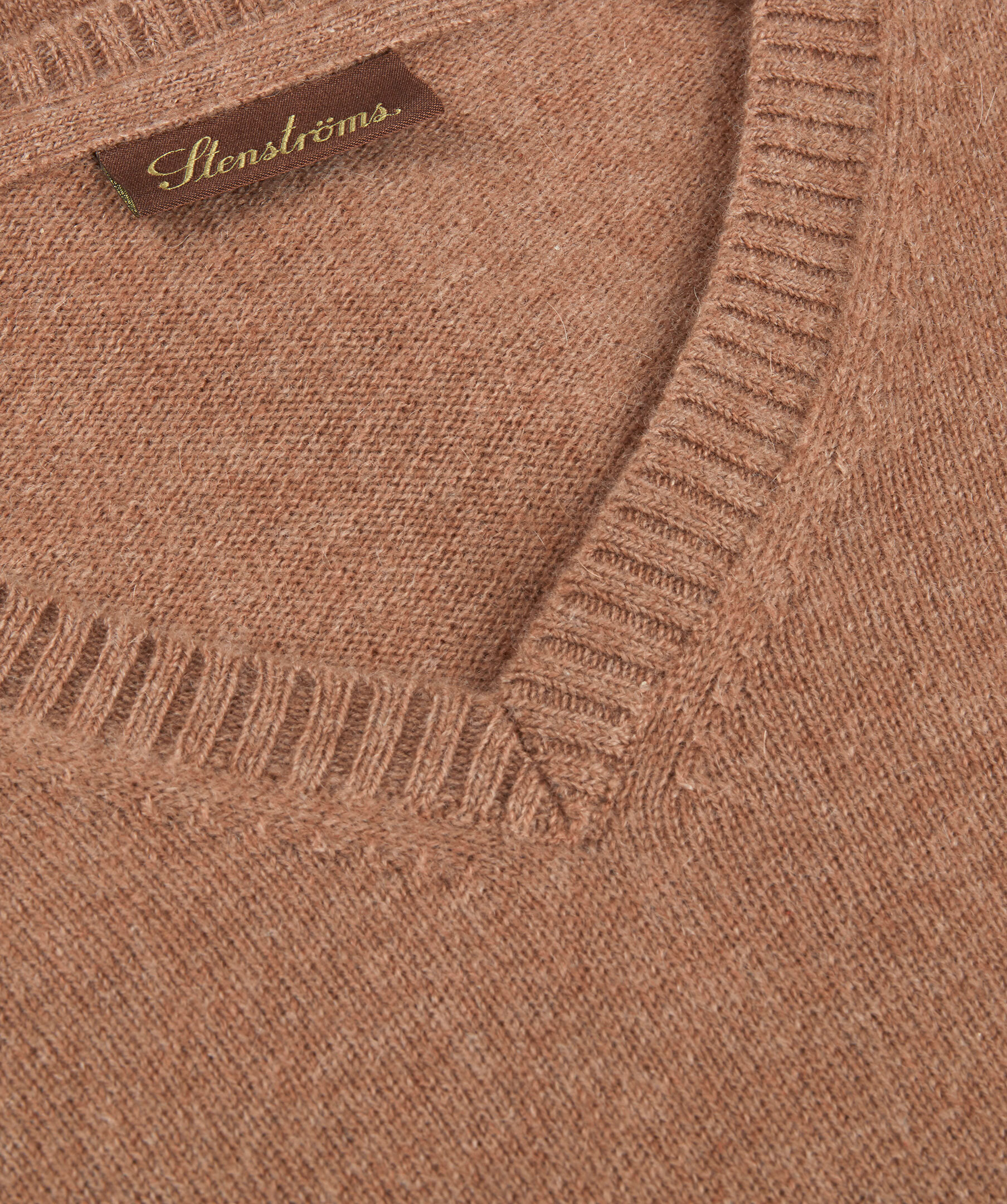 Melerad tröja i kashmir från Stenströms. Ribbstickad hals, ärmslut och plaggslut.