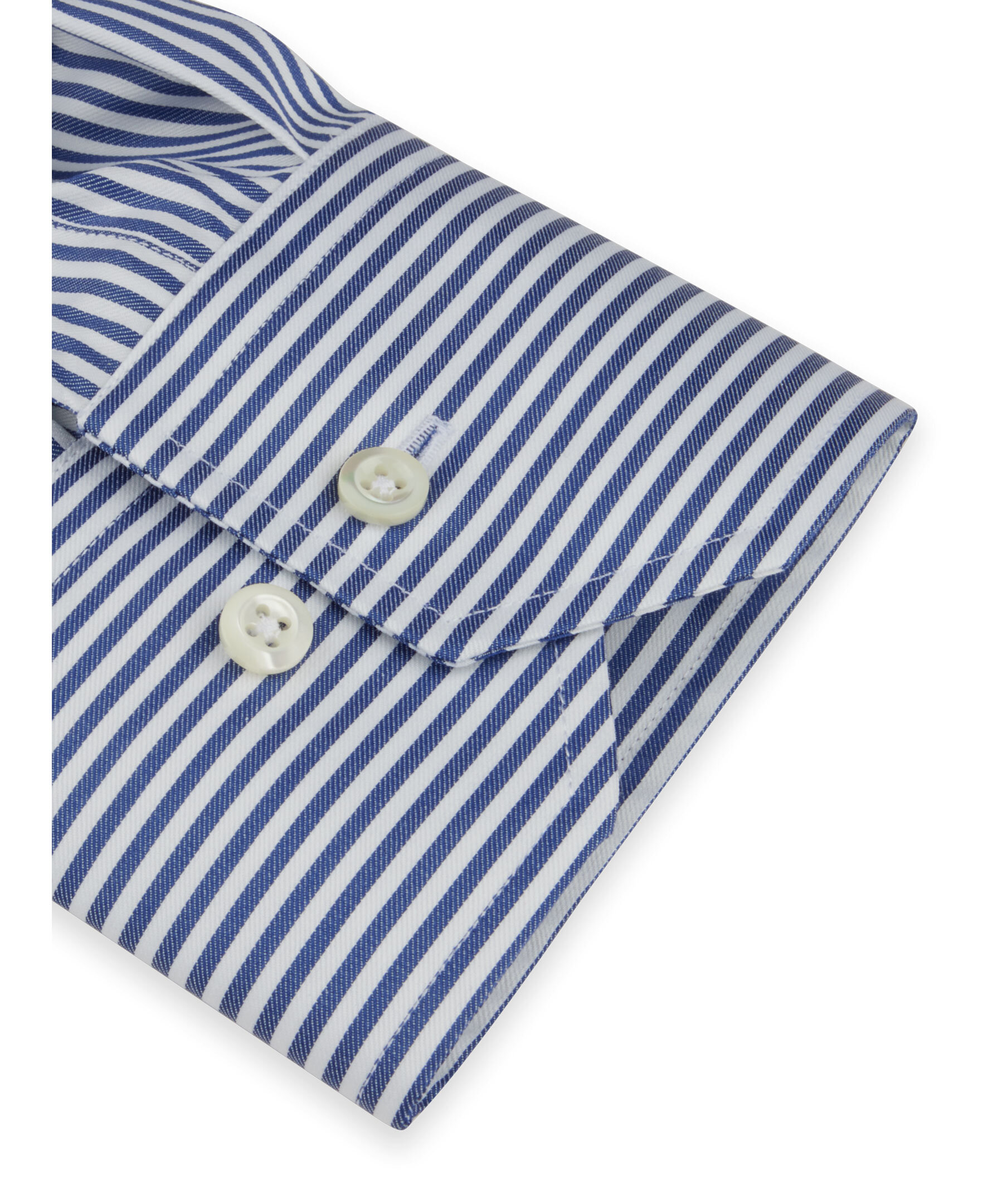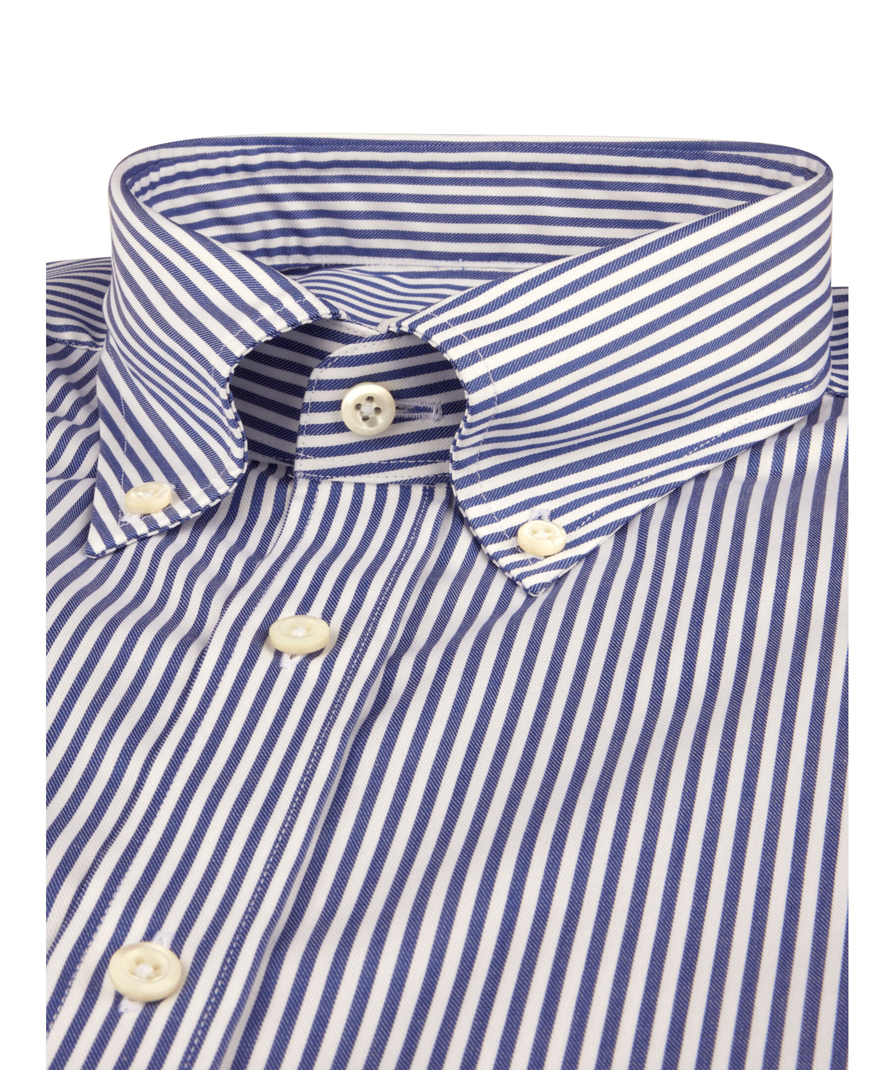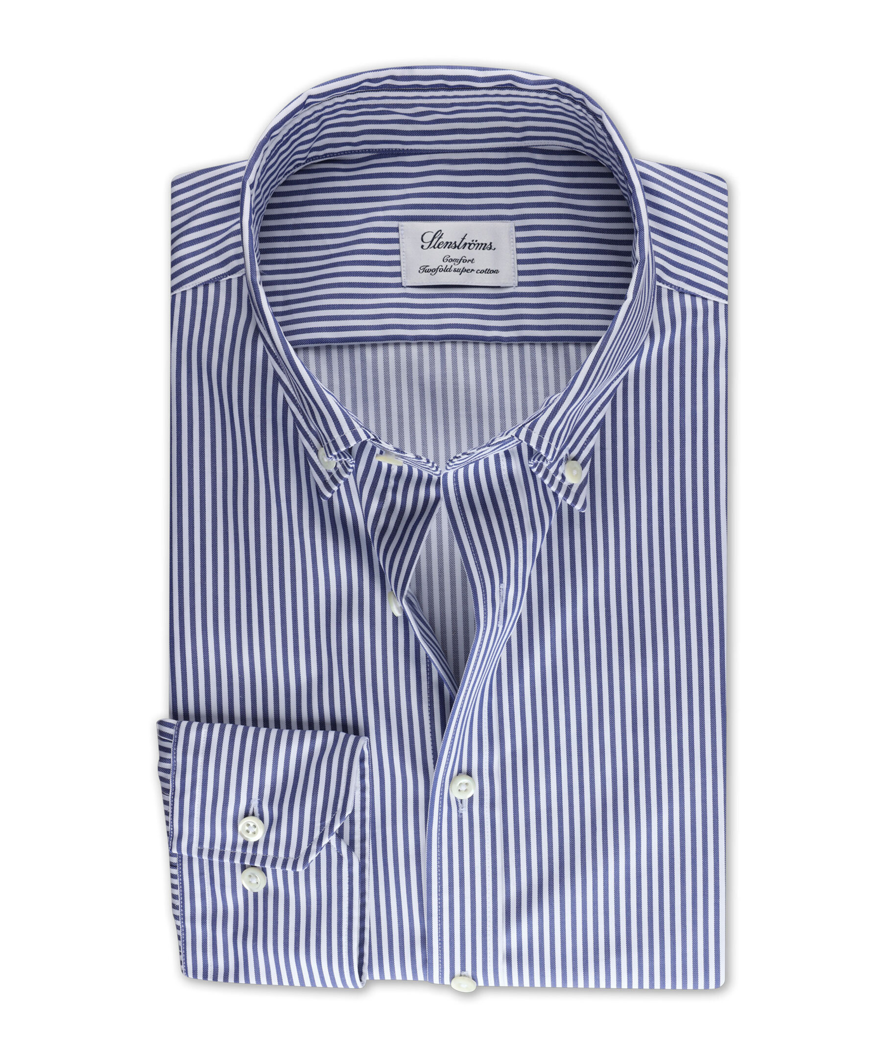 Denna randiga Comfort twillskjorta är tillverkad av twofold bomull. Skjortan har pärlemorknappar, enkla manschetter och en cut away krage.