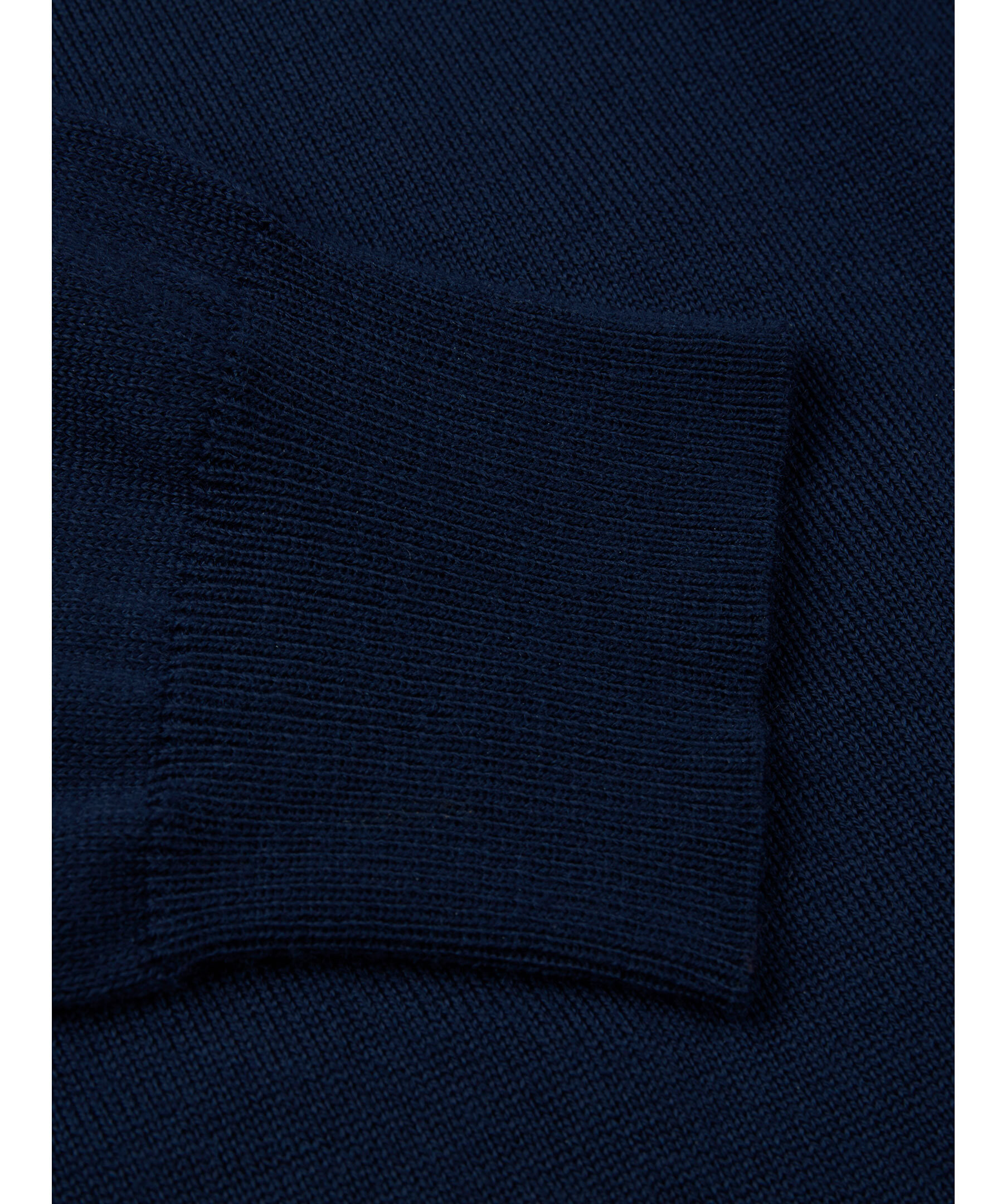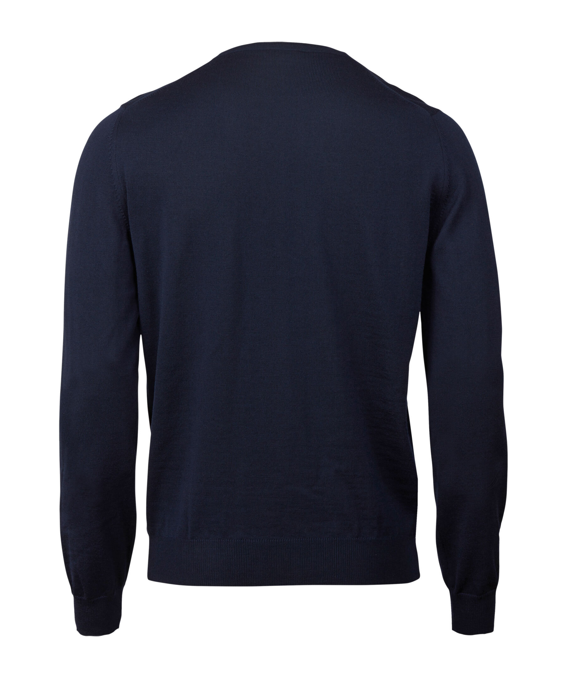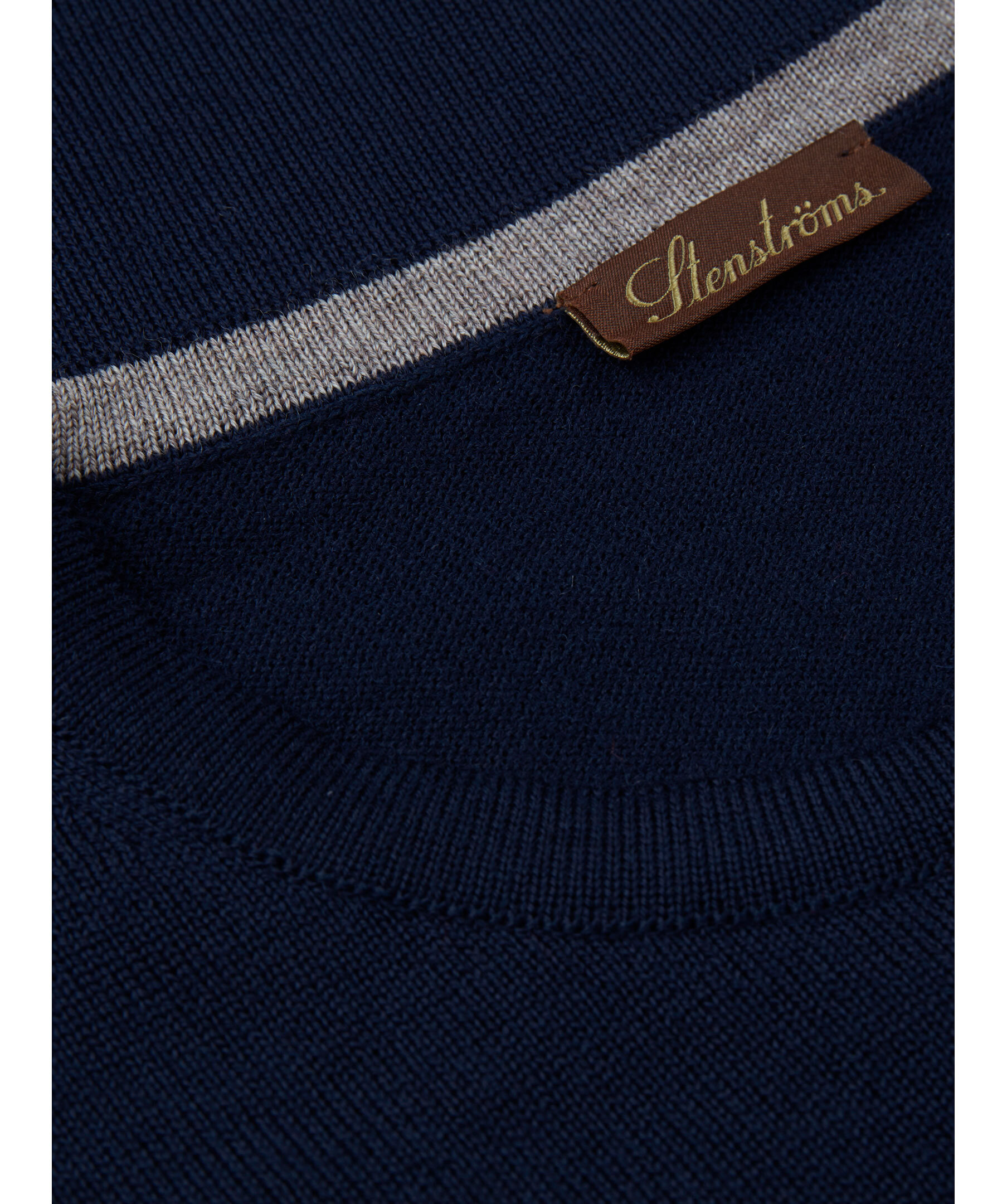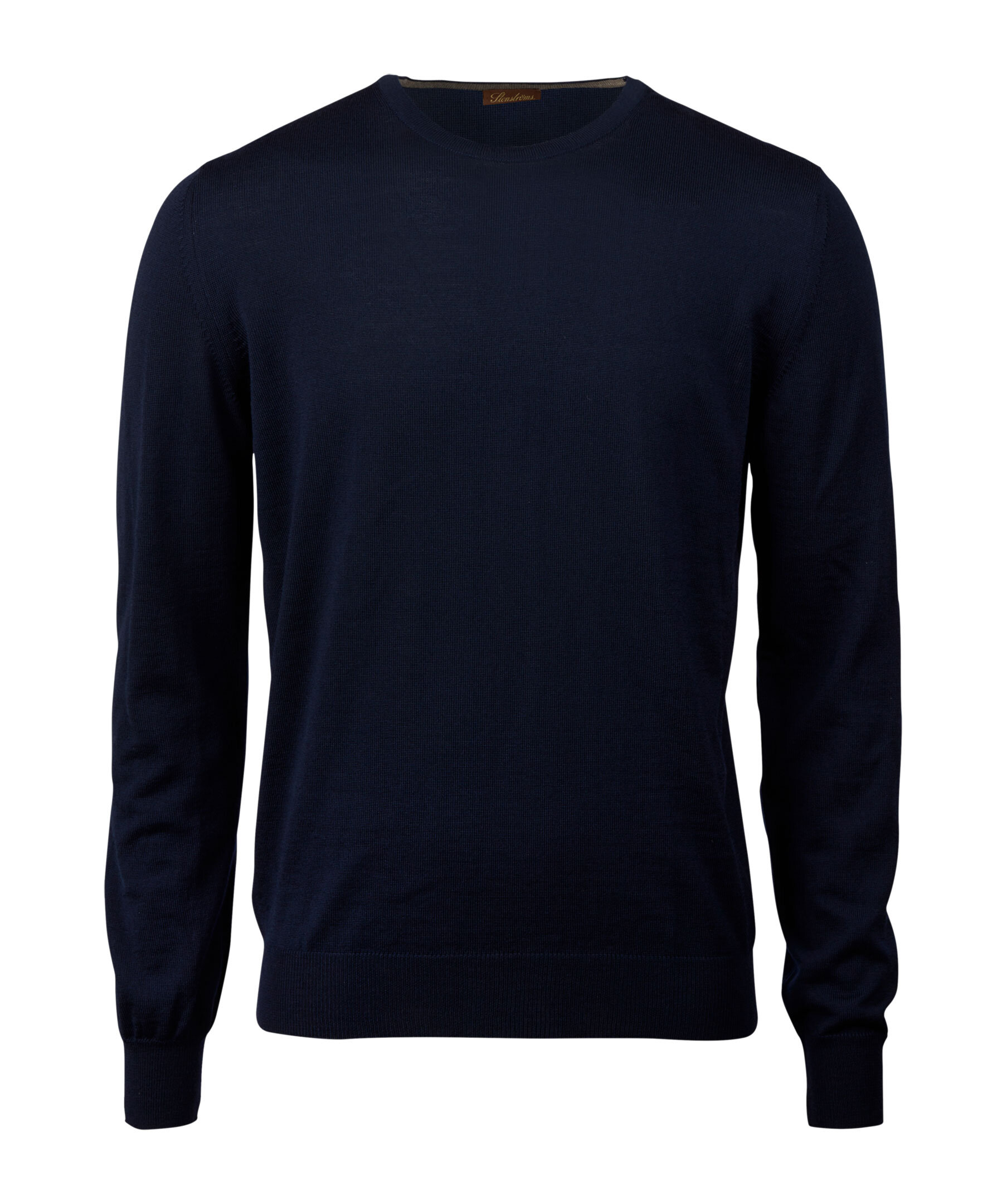 Denna rundhalsade tröja är tillverkad av merinoull och har ribbstickade detaljer vid krage, ärm- och plaggslut.