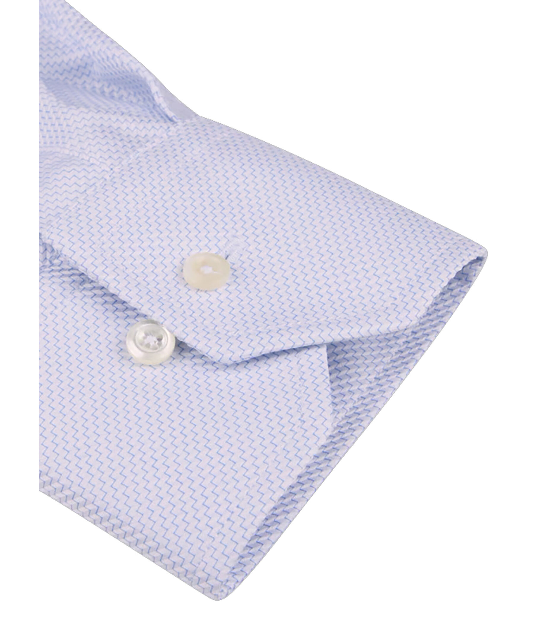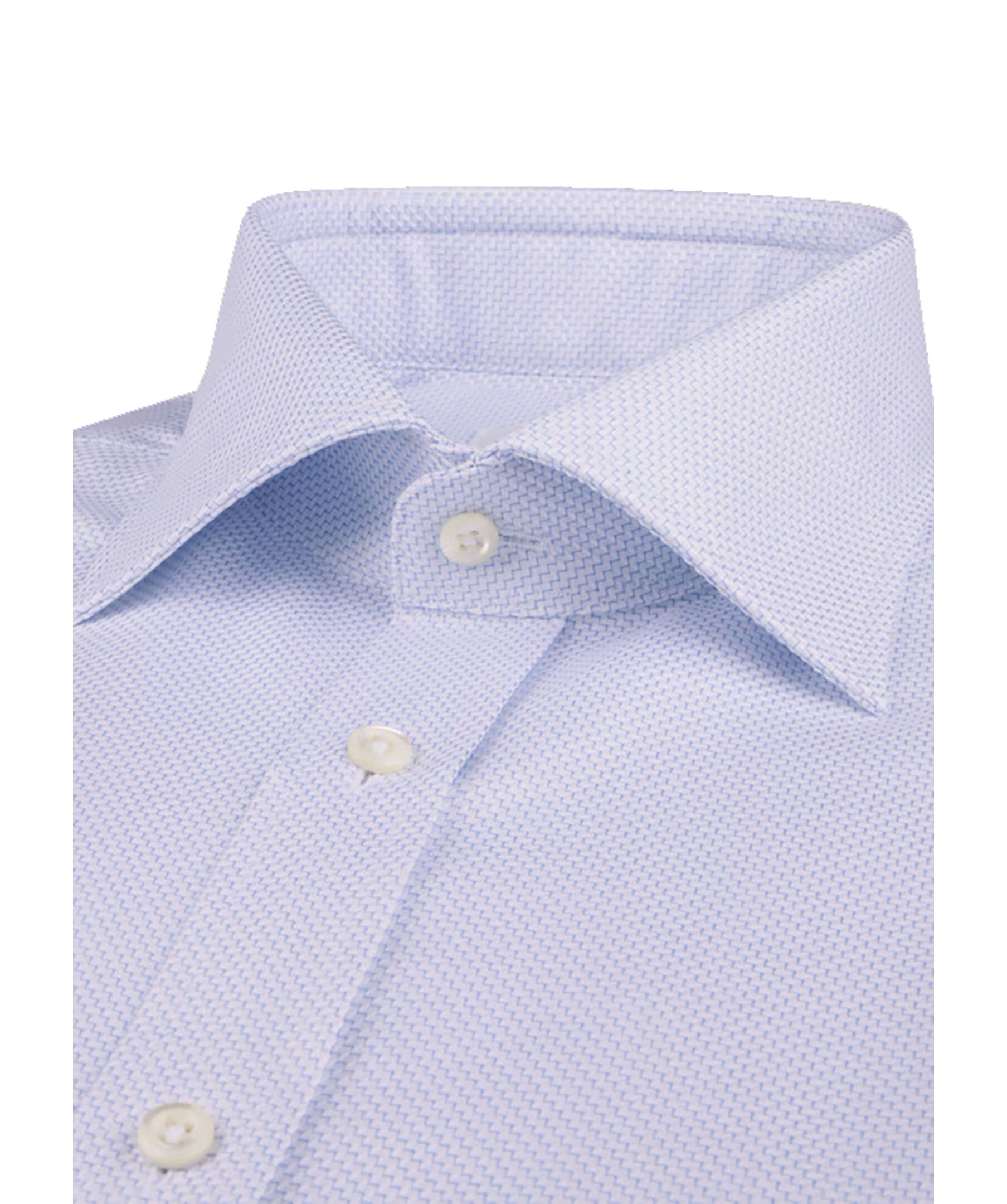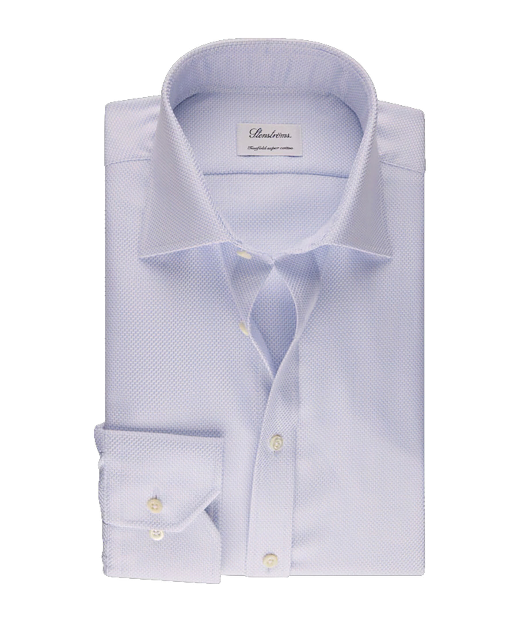 Ljusblå mönstrad twillskjorta från Stenströms. Skjortan cut-away krage, pärlemoknappar och enkla manschetter, är tillverkad av twofold bomull.